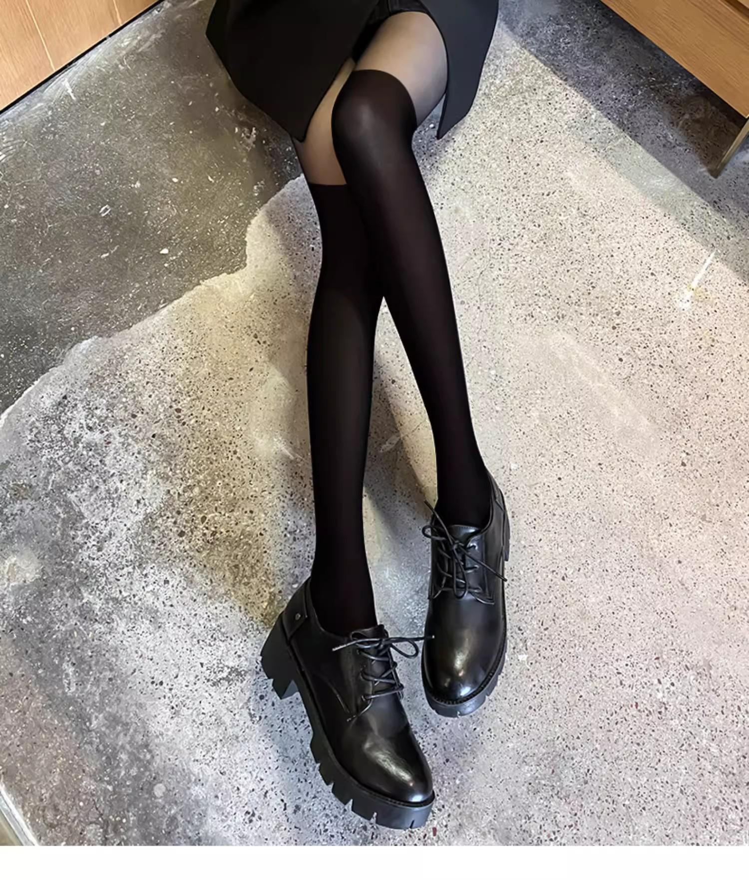 Medias negras dos en uno para mujer, calcetines finos para pantorrilla de primavera y otoño, medias de patchwork jk, calcetines de verano hasta la rodilla falsos, pantimedias