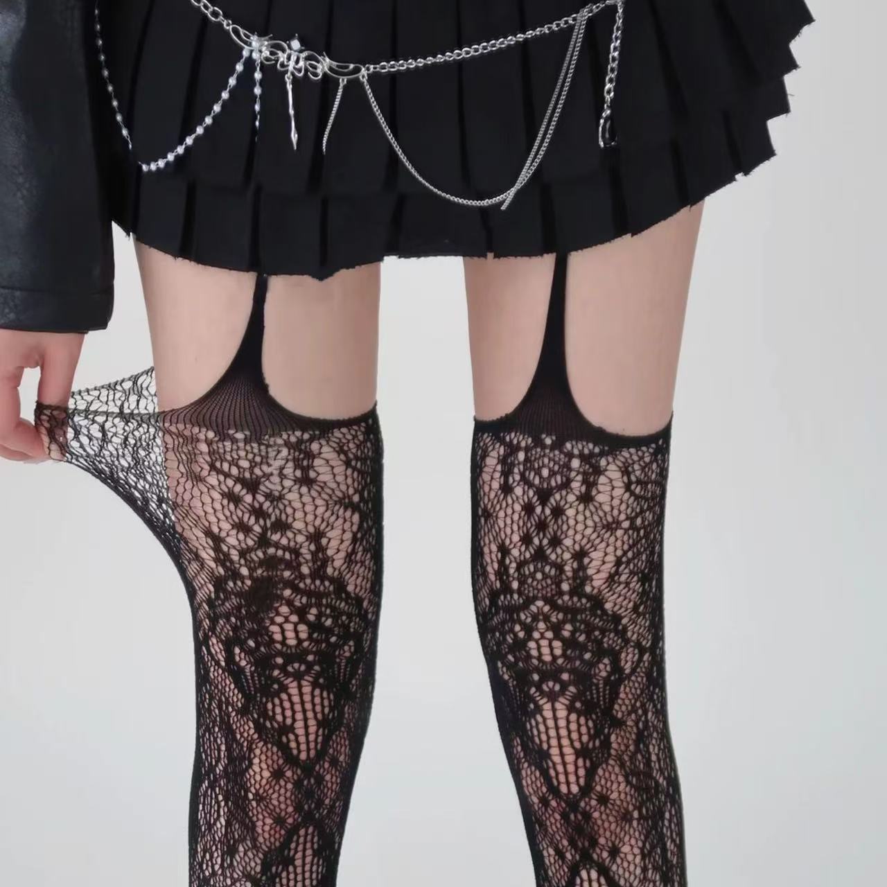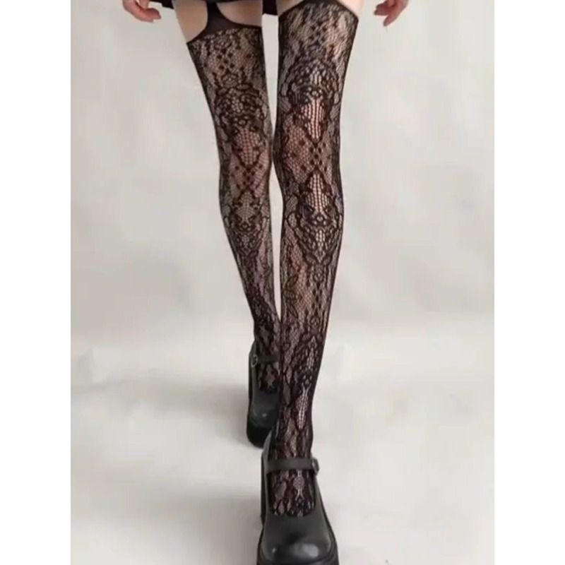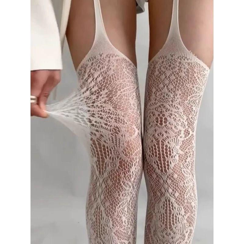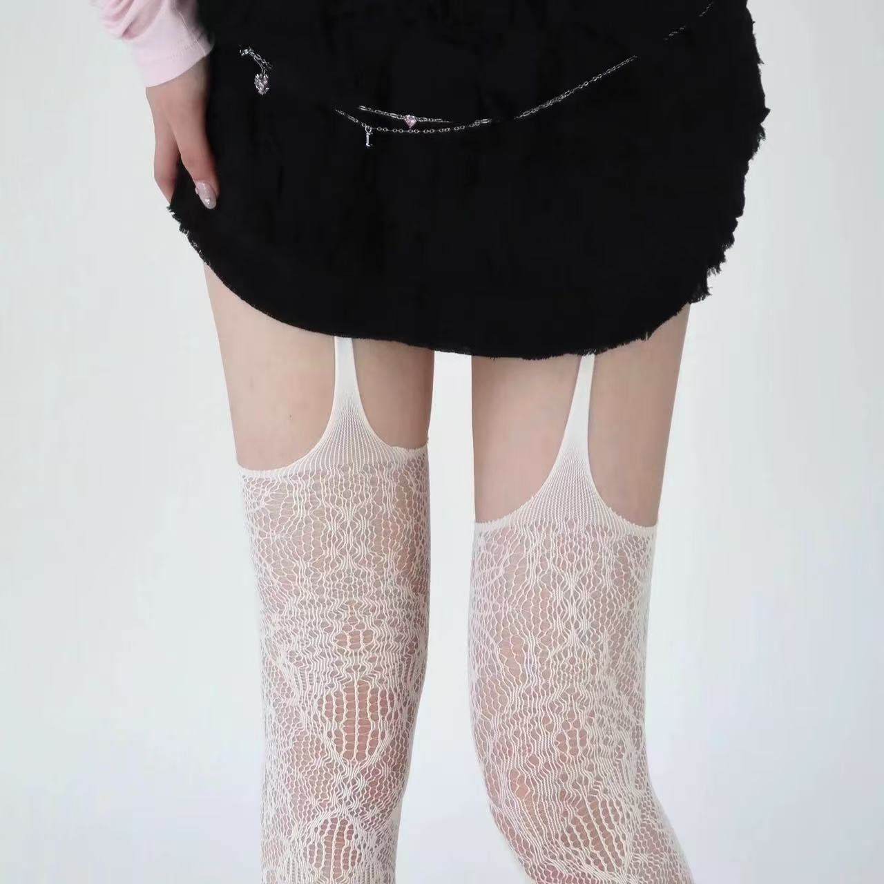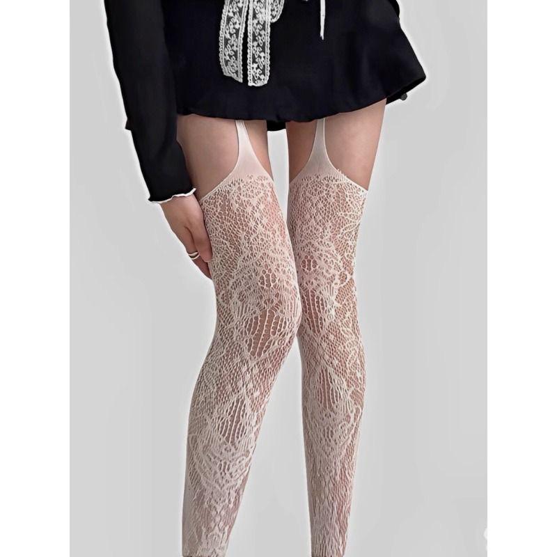 Medias Liguero Spicy Girl para Mujer y2k Subcultura Encaje Blanco Jacquard Medias de Red Milenial Fénix Sexy Pantimedias de Seda Negras
