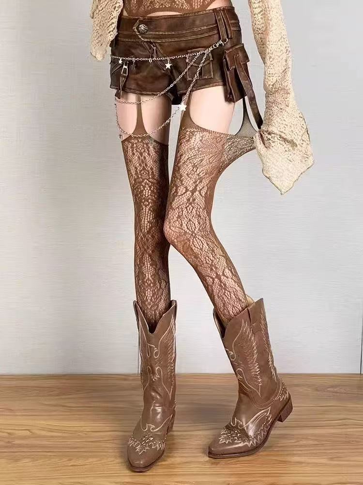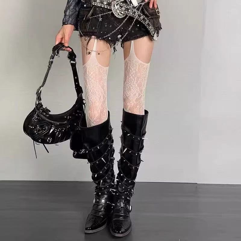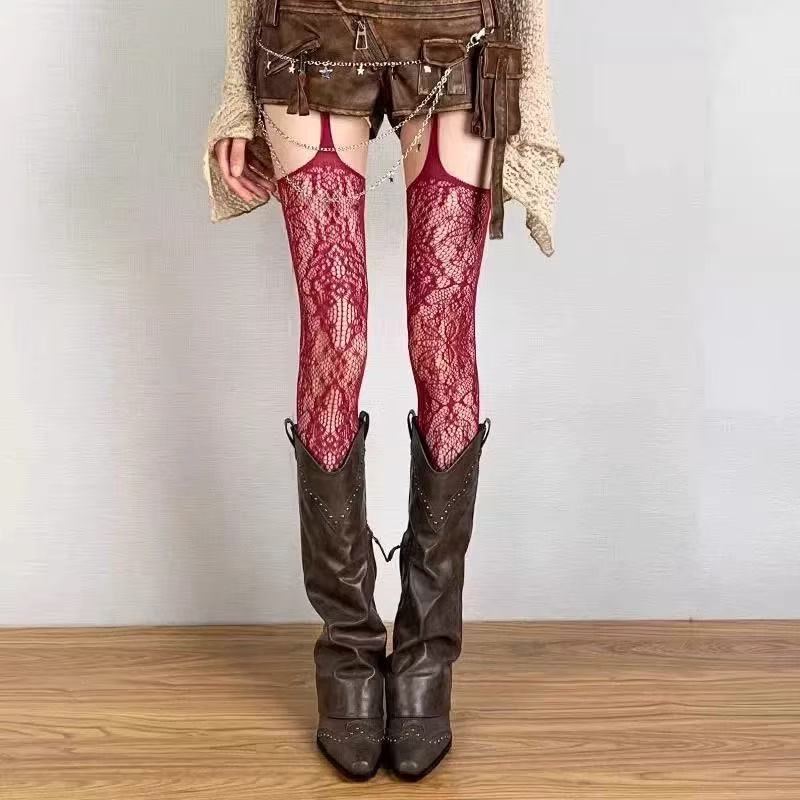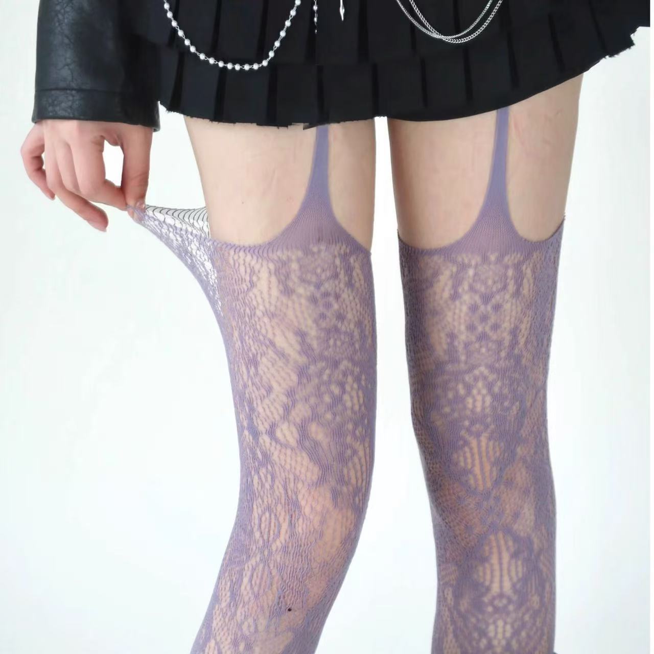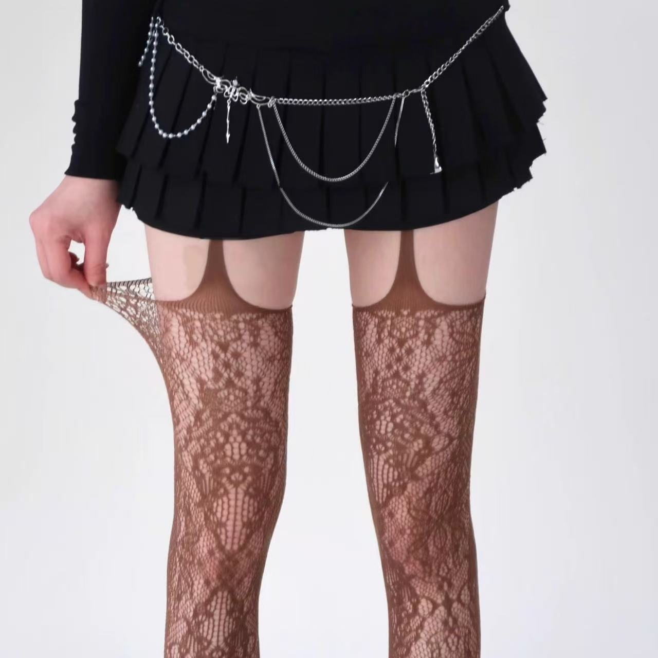 Medias Liguero Spicy Girl para Mujer y2k Subcultura Encaje Blanco Jacquard Medias de Red Milenial Fénix Sexy Pantimedias de Seda Negras