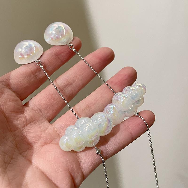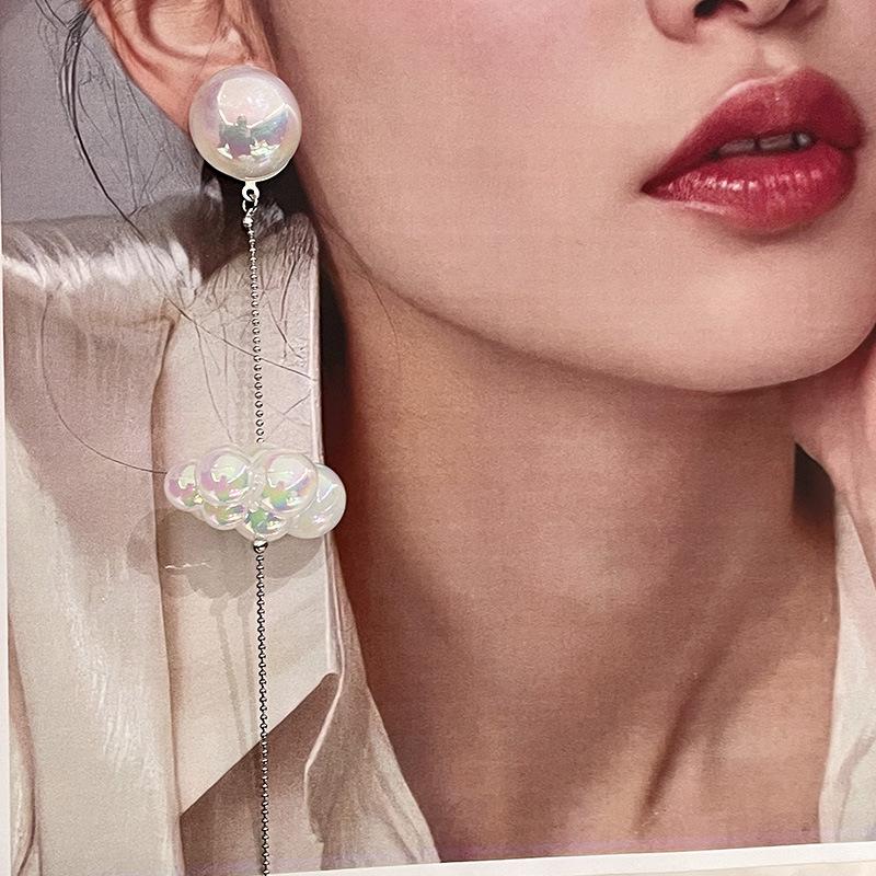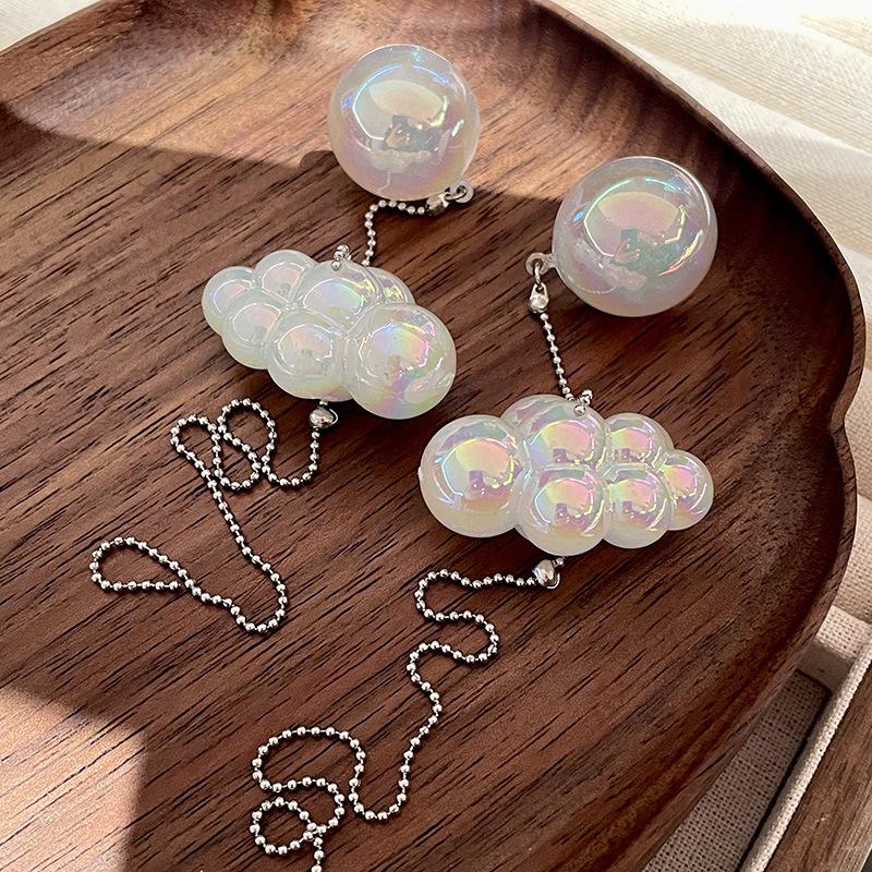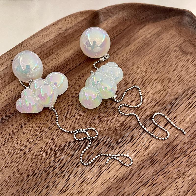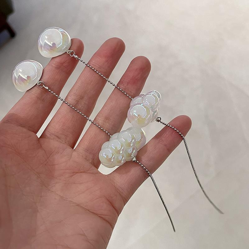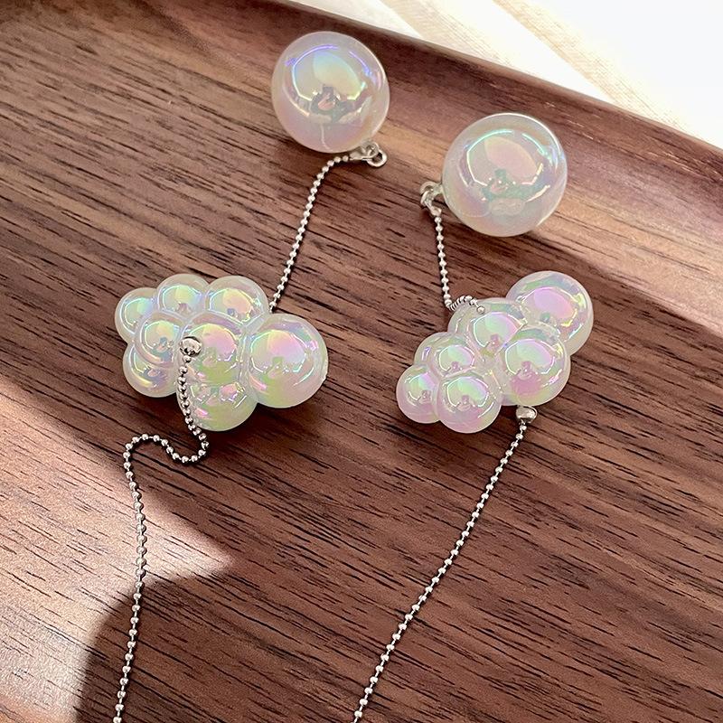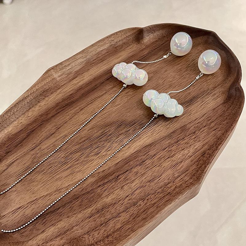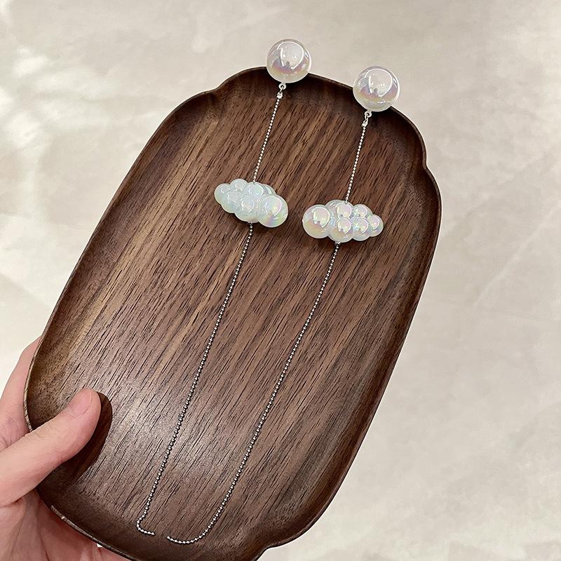 Diseño Nicho Retro Fantasía Blanco Pequeños Aretes de Nube Largos Alambre para Oreja de Aguja de Plata Aretes de Borla de Nube Aretes