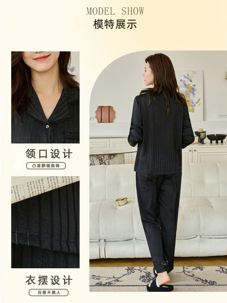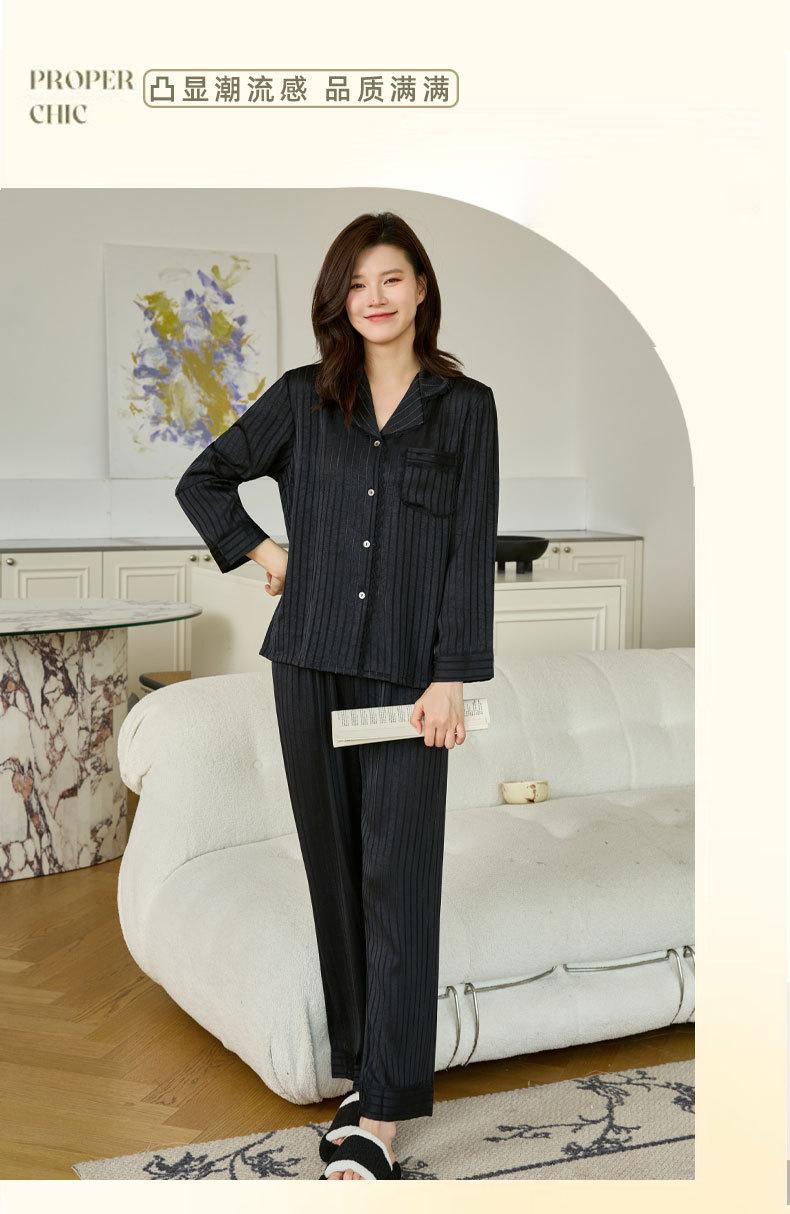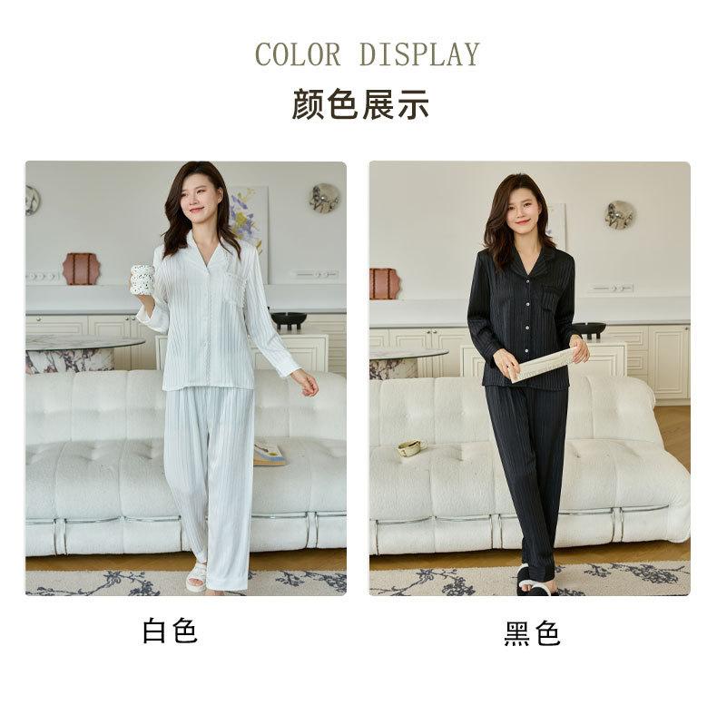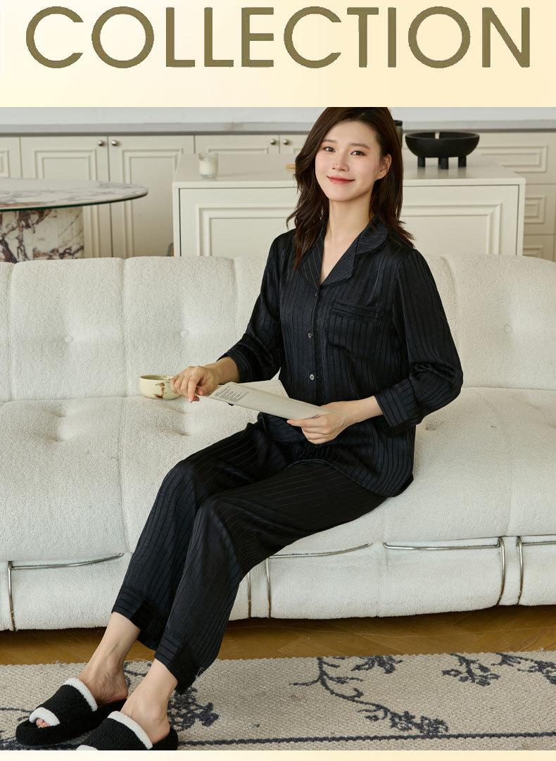 2025 Pijama Nuevo de Seda de Hielo para Mujer Cómodo Estampado de Rayas Manga Larga Pantalón Largo de Alta Gama Se Puede Usar Fuera Ropa para el Hogar
