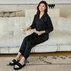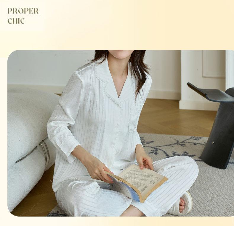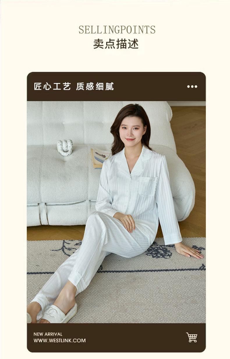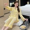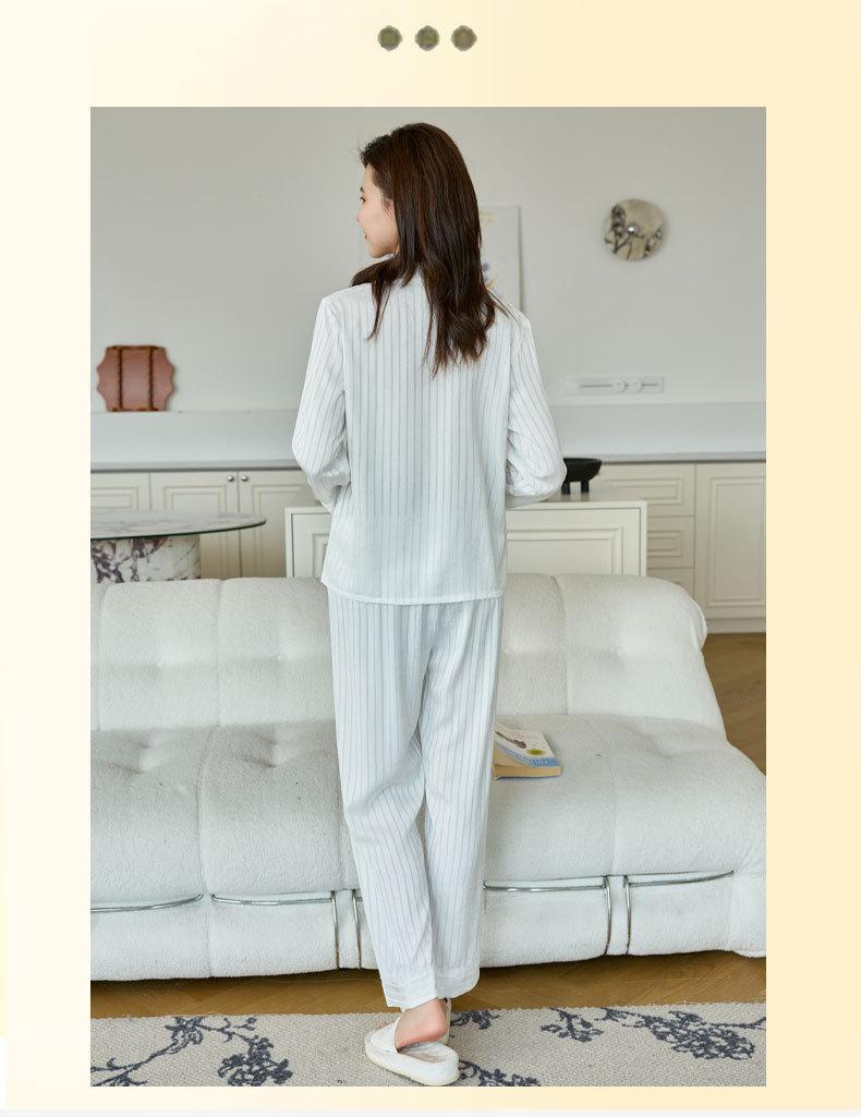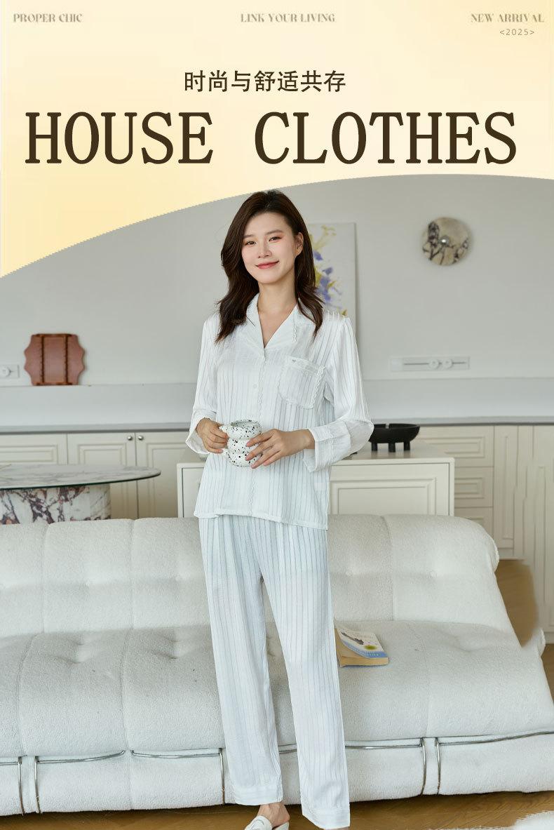 2025 Pijama Nuevo de Seda de Hielo para Mujer Cómodo Estampado de Rayas Manga Larga Pantalón Largo de Alta Gama Se Puede Usar Fuera Ropa para el Hogar