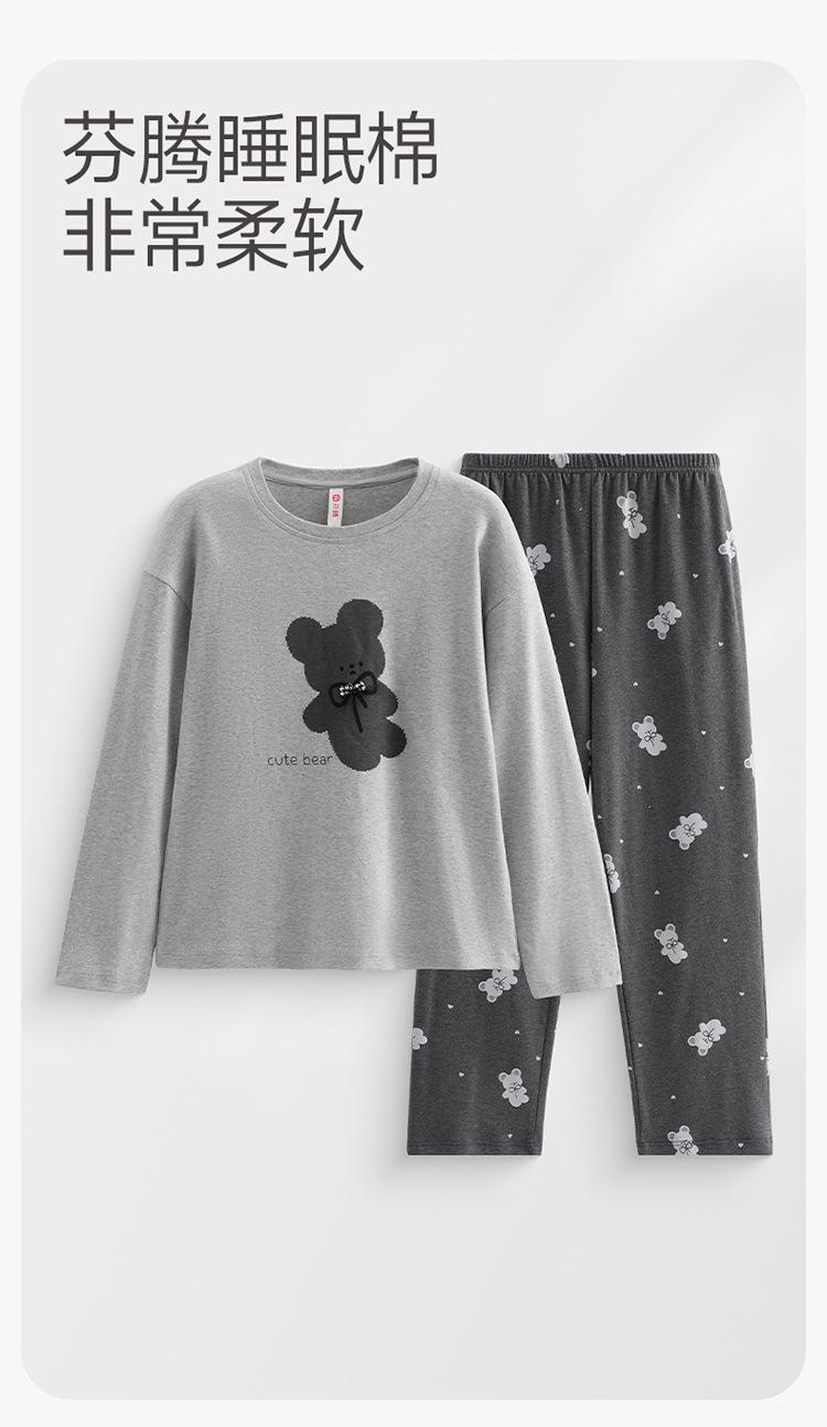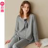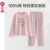 Fenteng [Algodón para Dormir Antiestático] Pijama de Algodón Puro para Mujer Otoño Primavera Conjunto de Manga Larga Se Puede Usar Afuera Ropa de Casa de Algodón