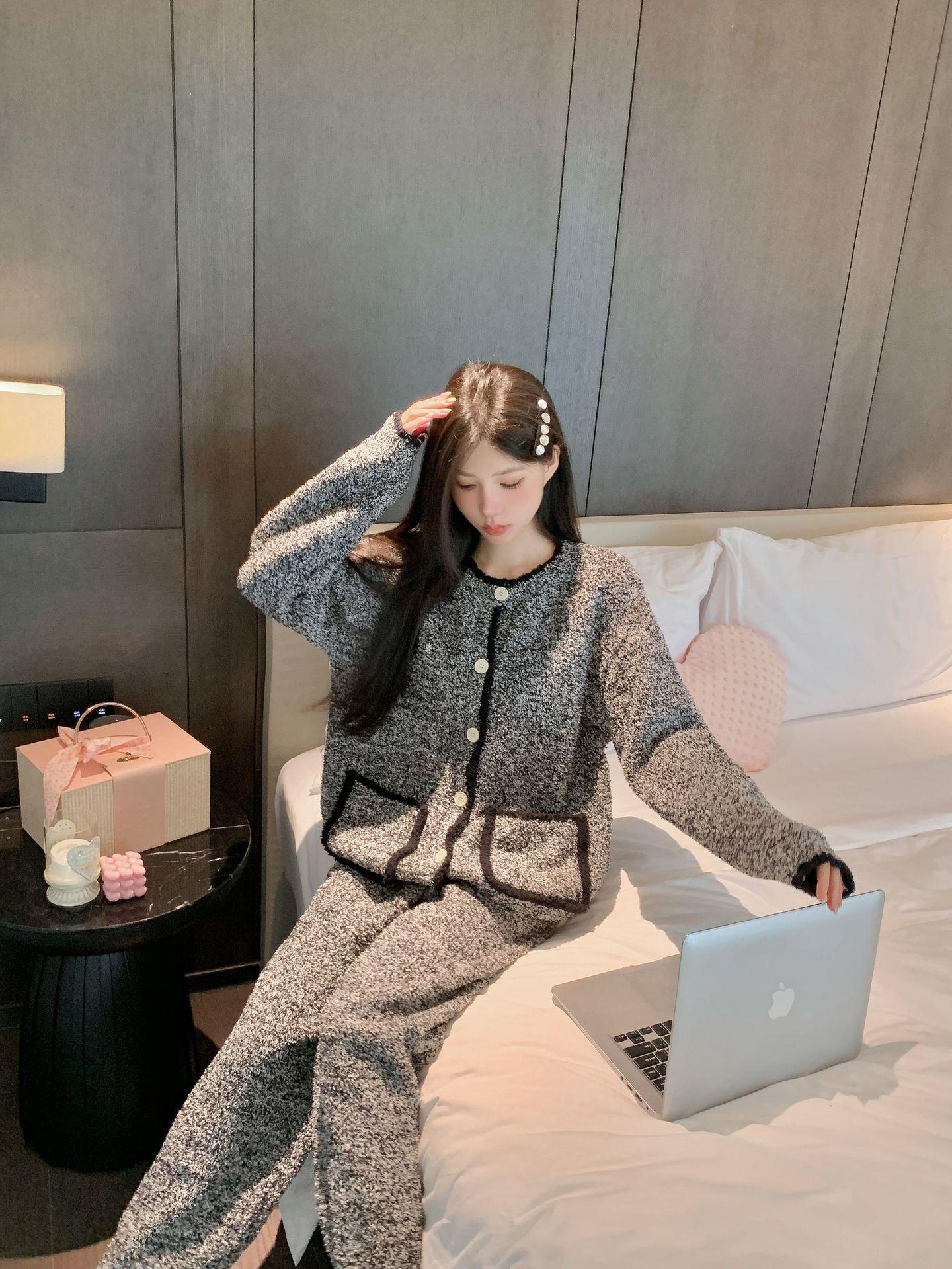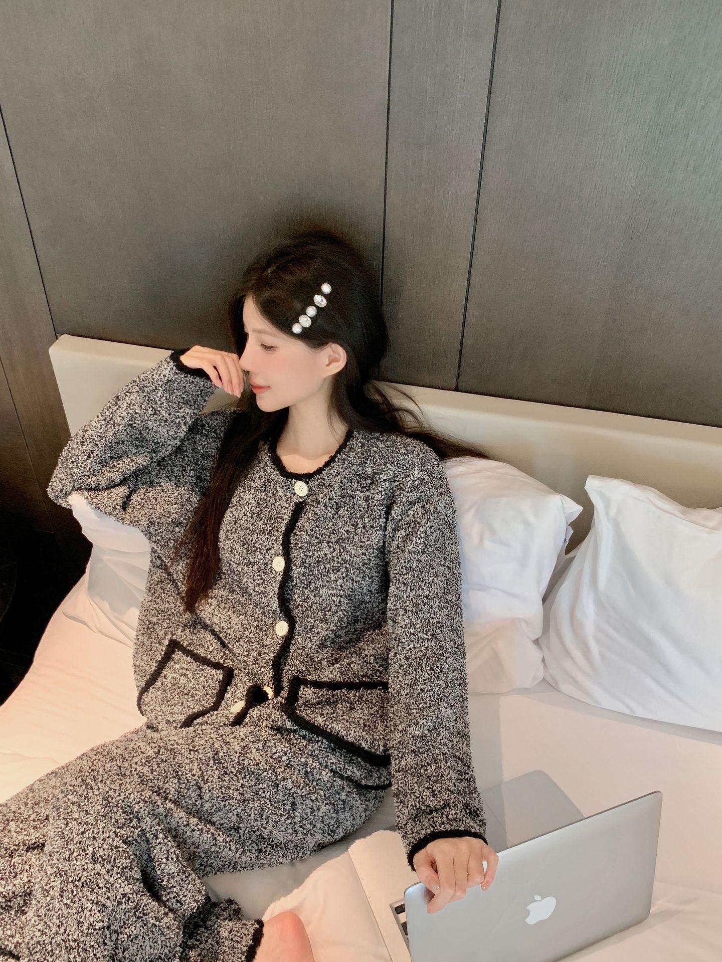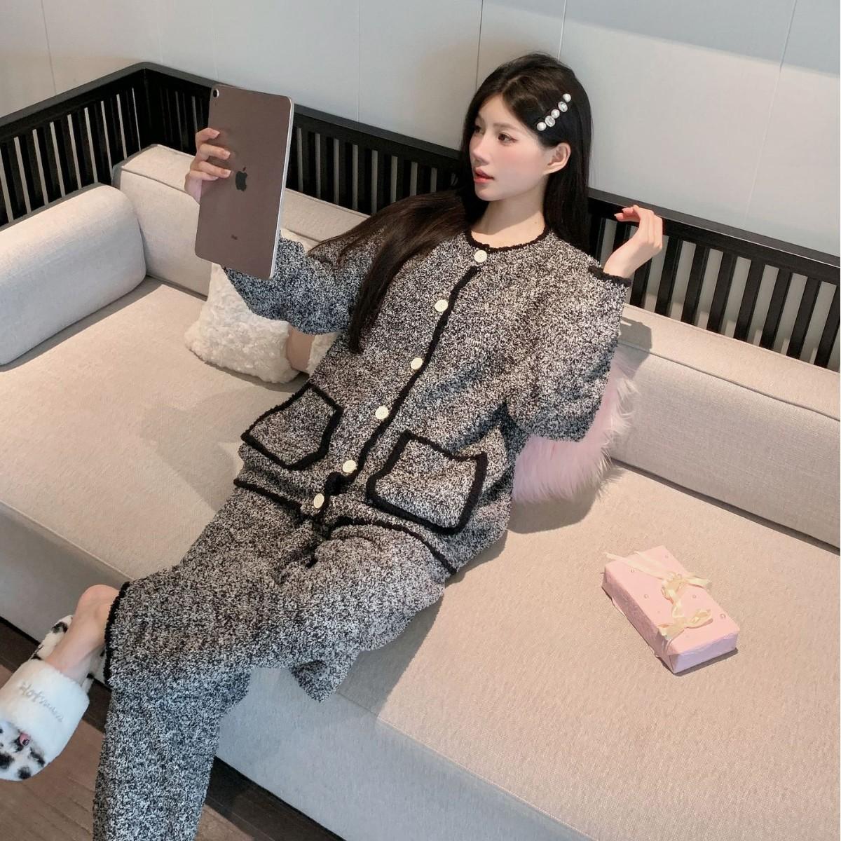 Pijamas de Invierno para Mujer Moda Cárdigan de Alta Gama Terciopelo de Media Cara Ropa para el Hogar Engrosada Cálida Sensación en Internet Pijamas Suaves