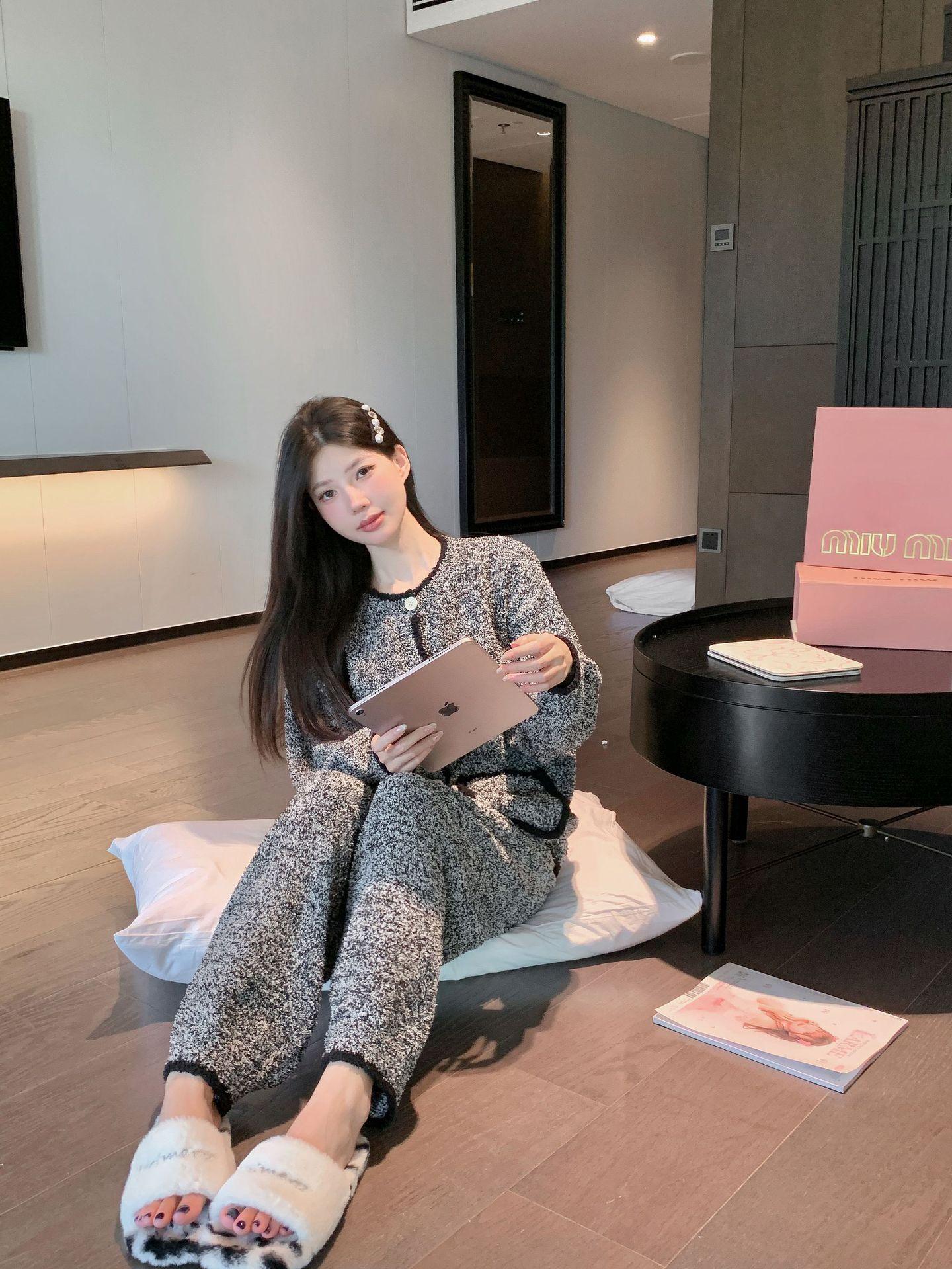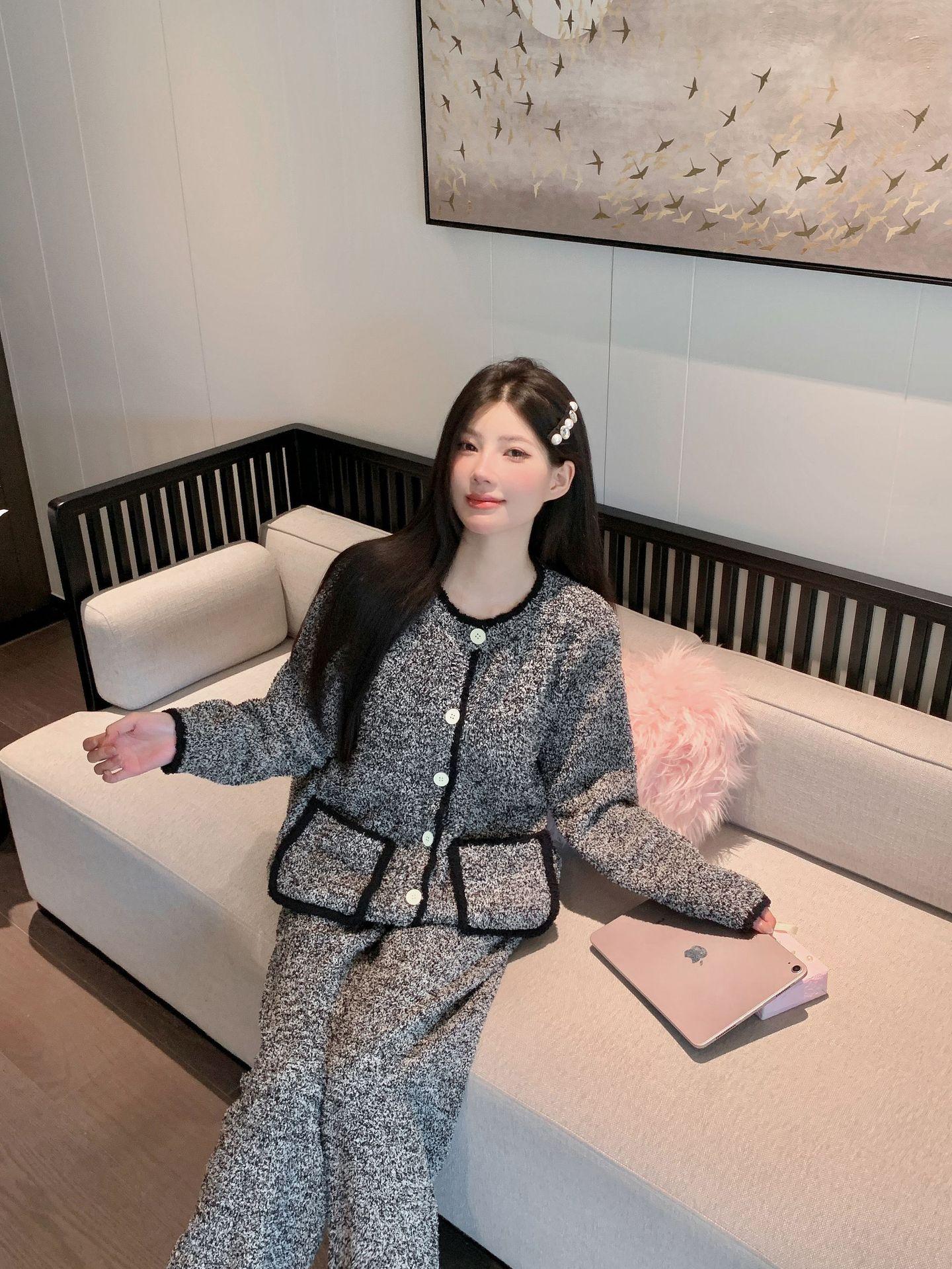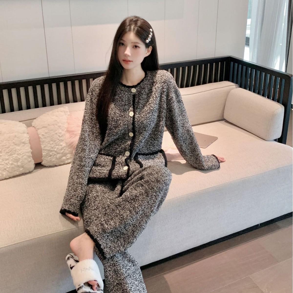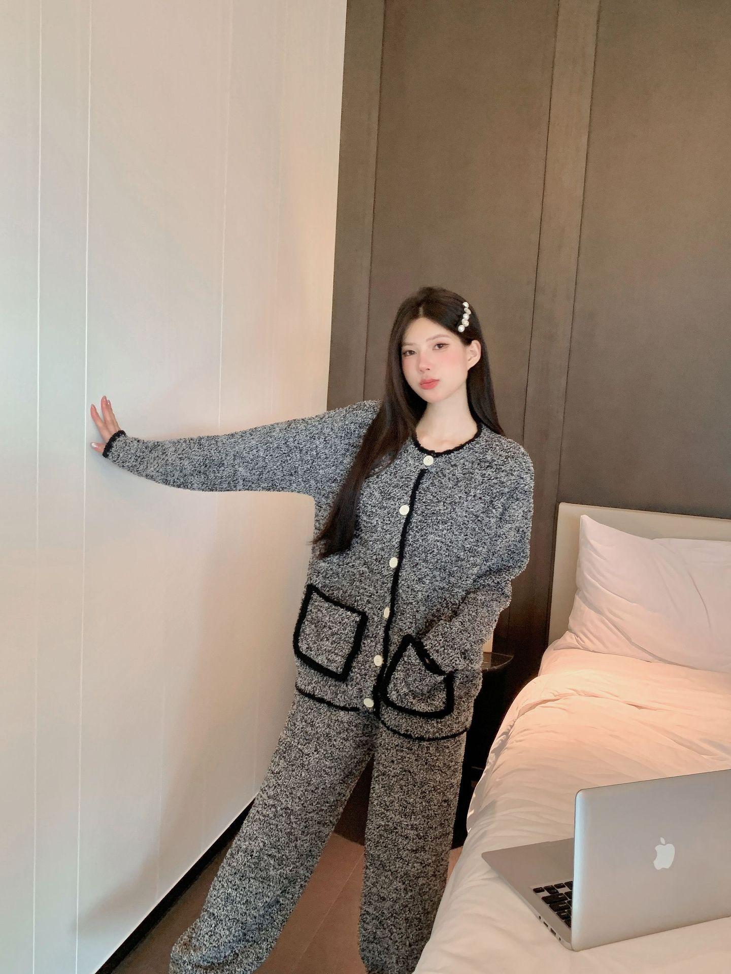 Pijamas de Invierno para Mujer Moda Cárdigan de Alta Gama Terciopelo de Media Cara Ropa para el Hogar Engrosada Cálida Sensación en Internet Pijamas Suaves