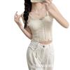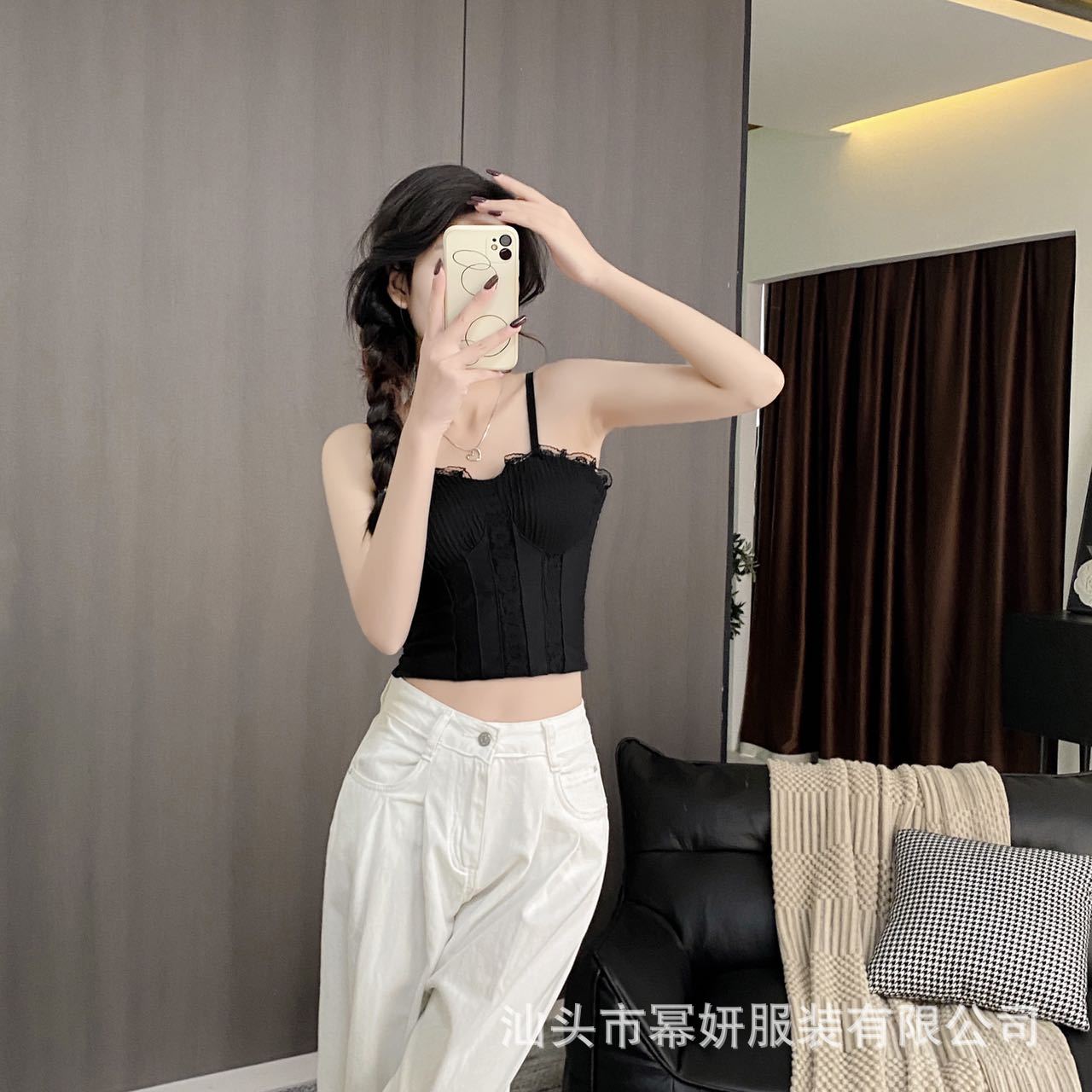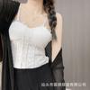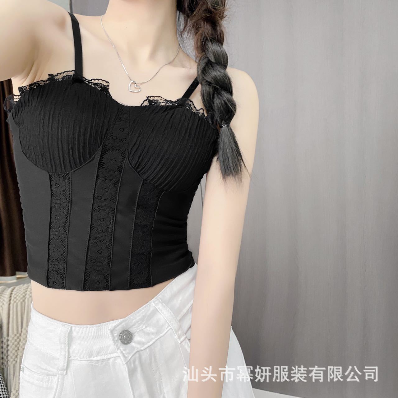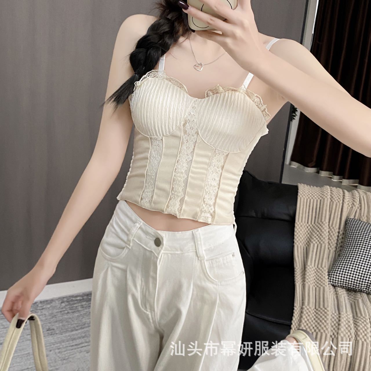 Camisola de Estilo Dulce Puro con Tirantes de Encaje de Color Contrastante para Mujer, Interior Sexy Delgado con Almohadilla en el Pecho