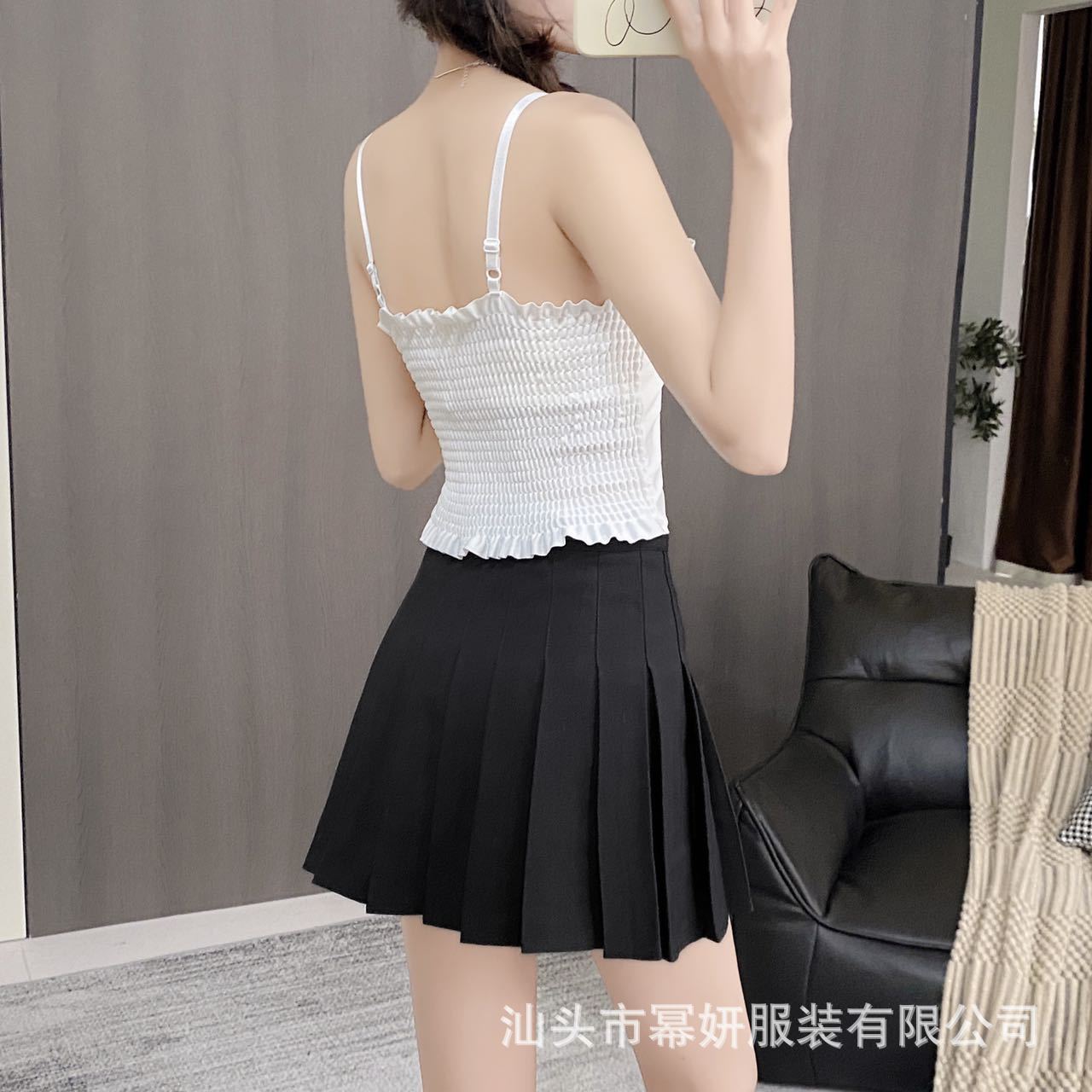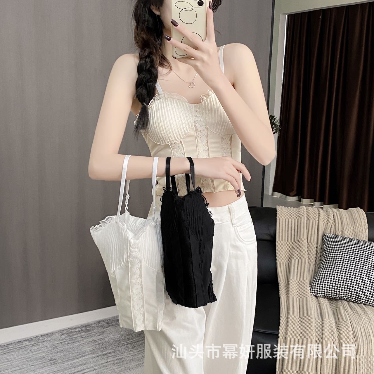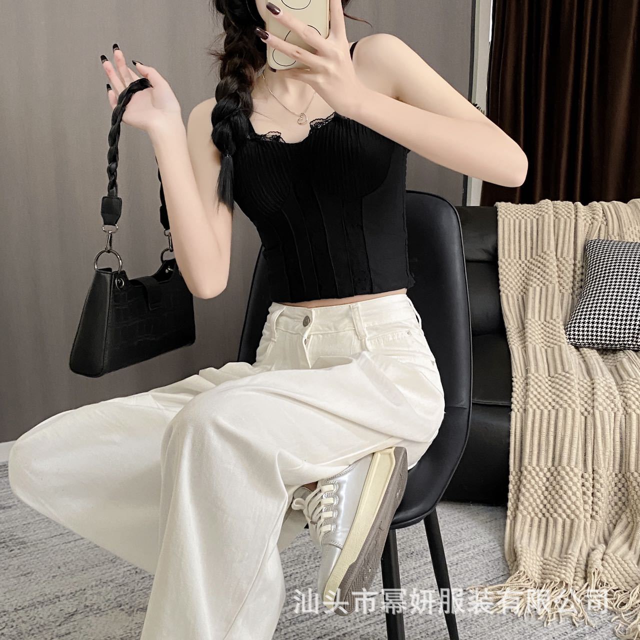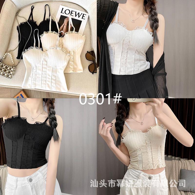 Camisola de Estilo Dulce Puro con Tirantes de Encaje de Color Contrastante para Mujer, Interior Sexy Delgado con Almohadilla en el Pecho