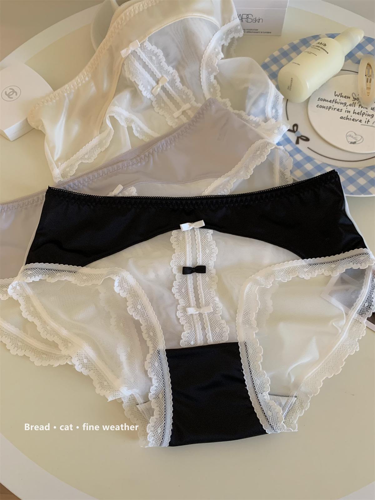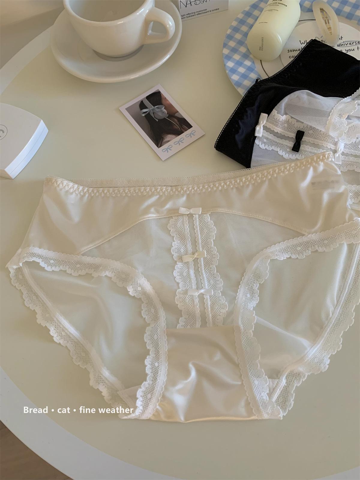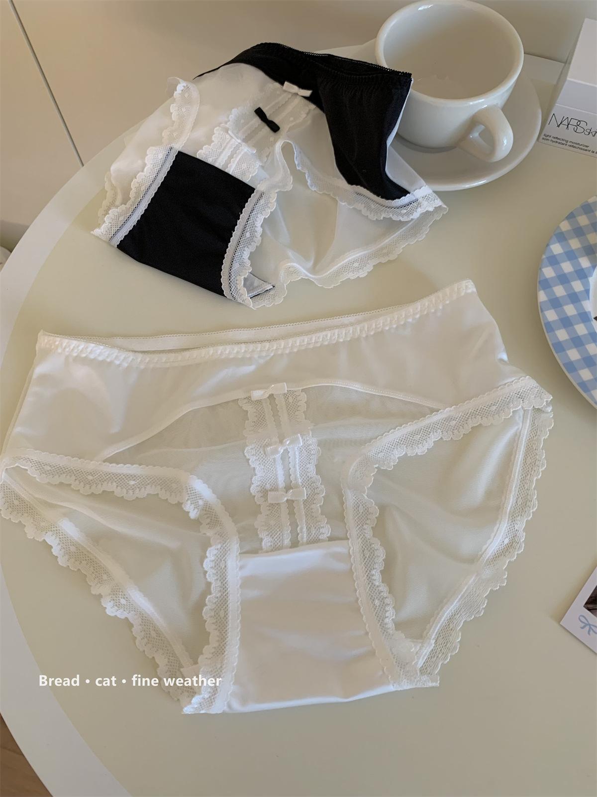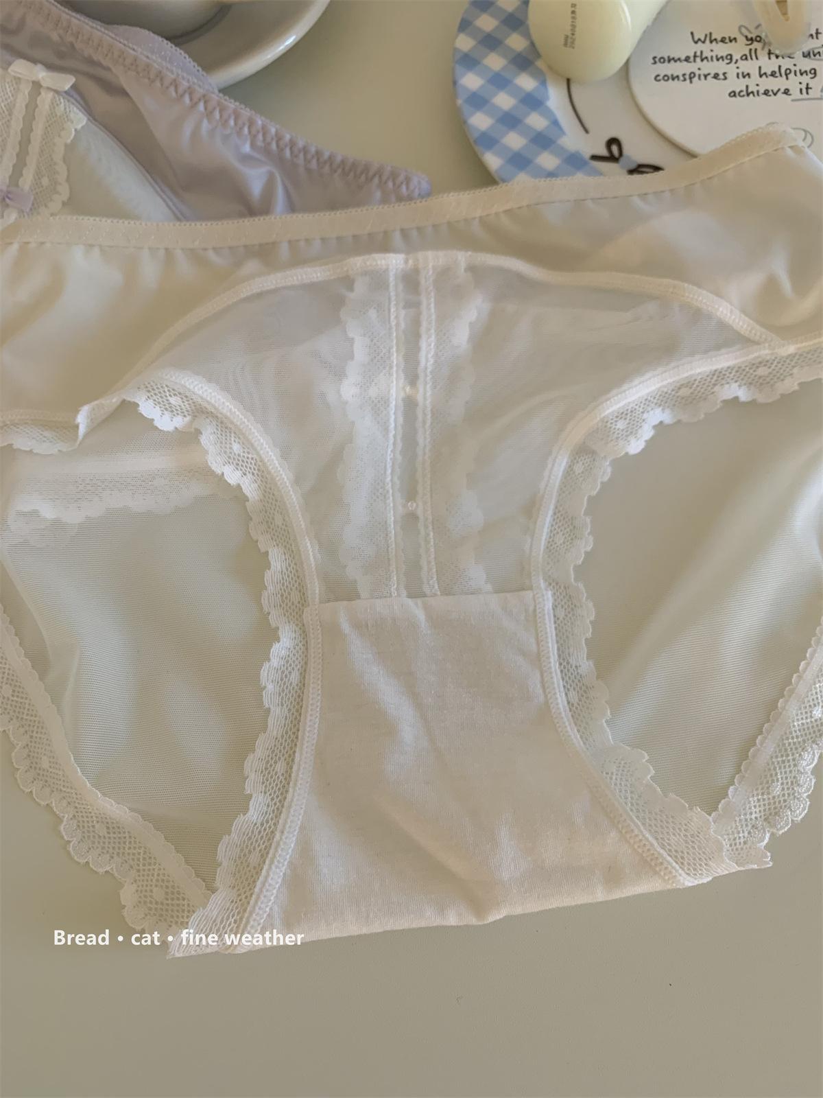 Bragas Triángulo Minimalistas de Verano para Mujer Estilo Japonés de Algodón Puro Entrepierna Sexy Encaje de Lazo Deseo Puro Transparentes de Cintura Baja