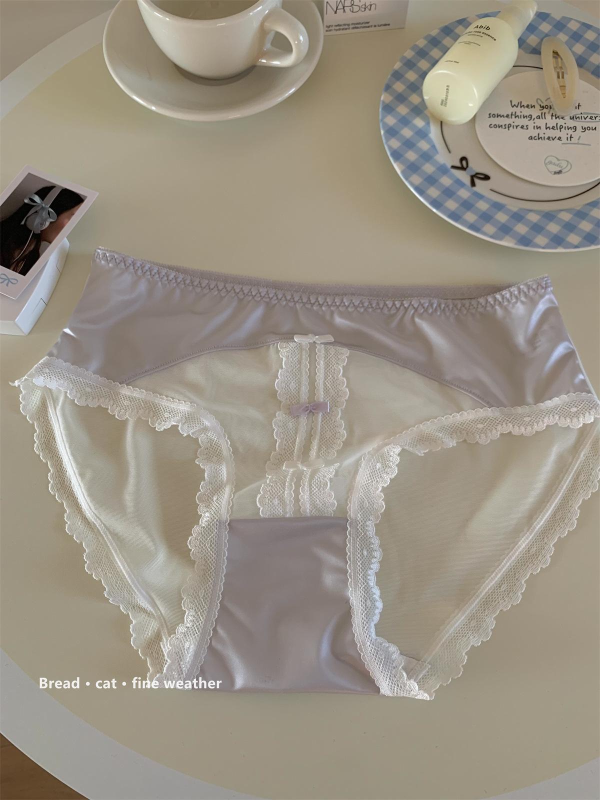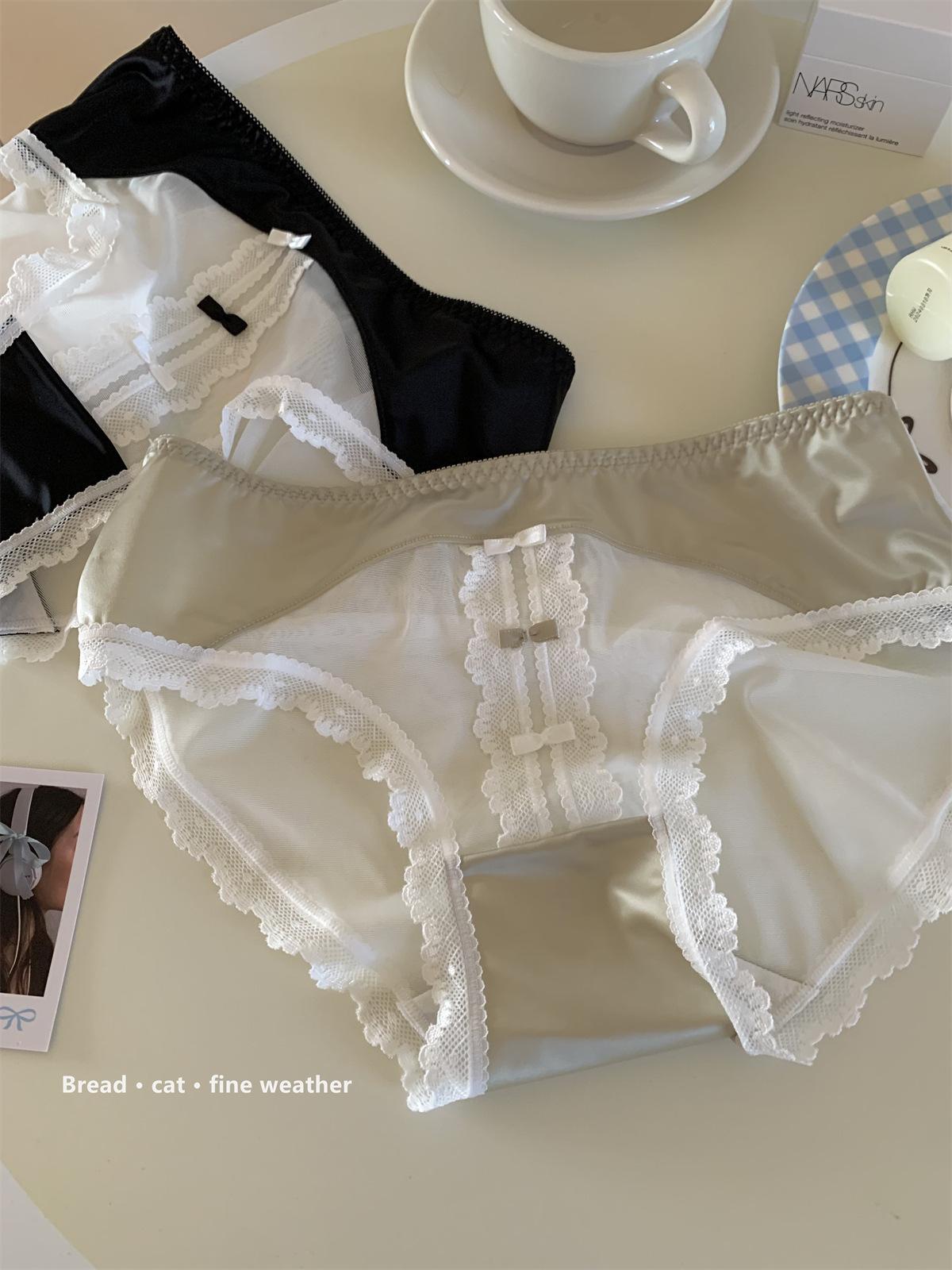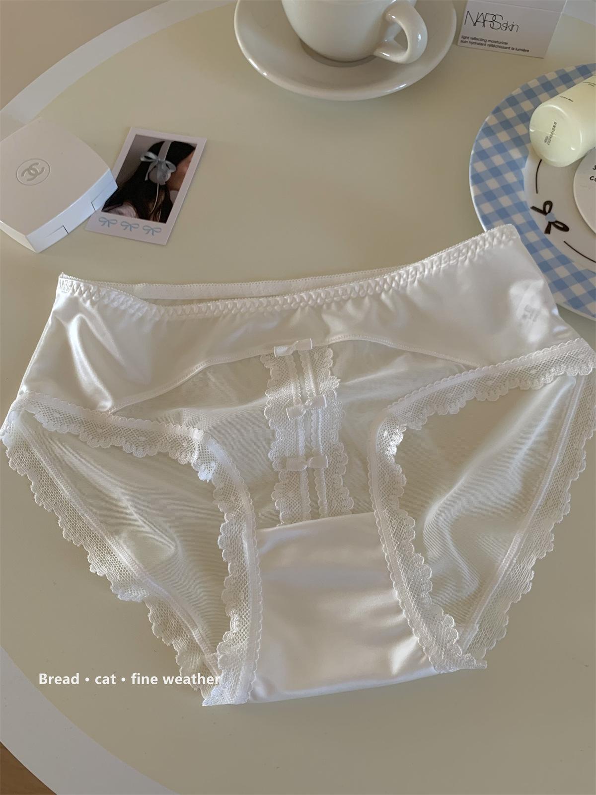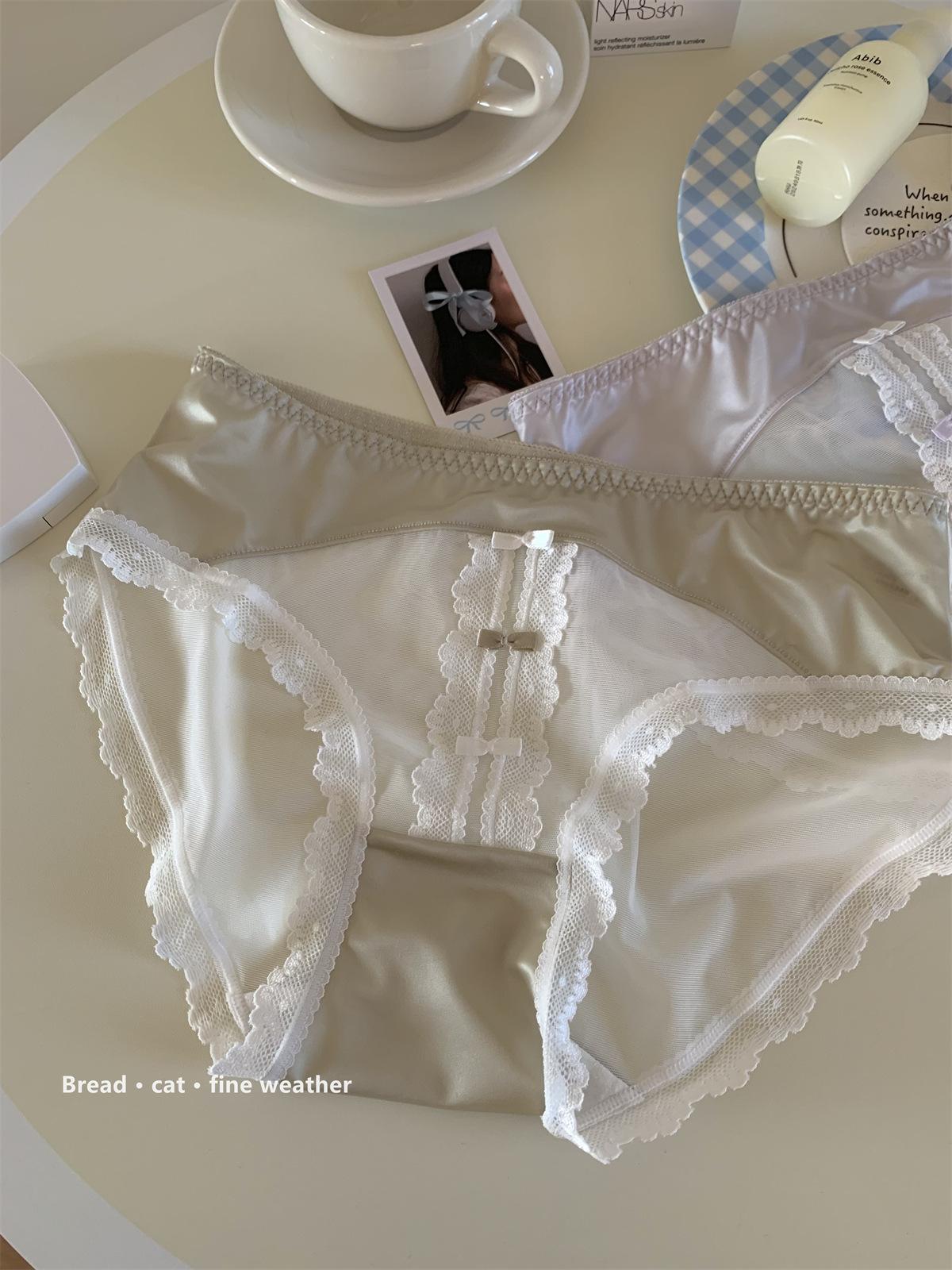 Bragas Triángulo Minimalistas de Verano para Mujer Estilo Japonés de Algodón Puro Entrepierna Sexy Encaje de Lazo Deseo Puro Transparentes de Cintura Baja