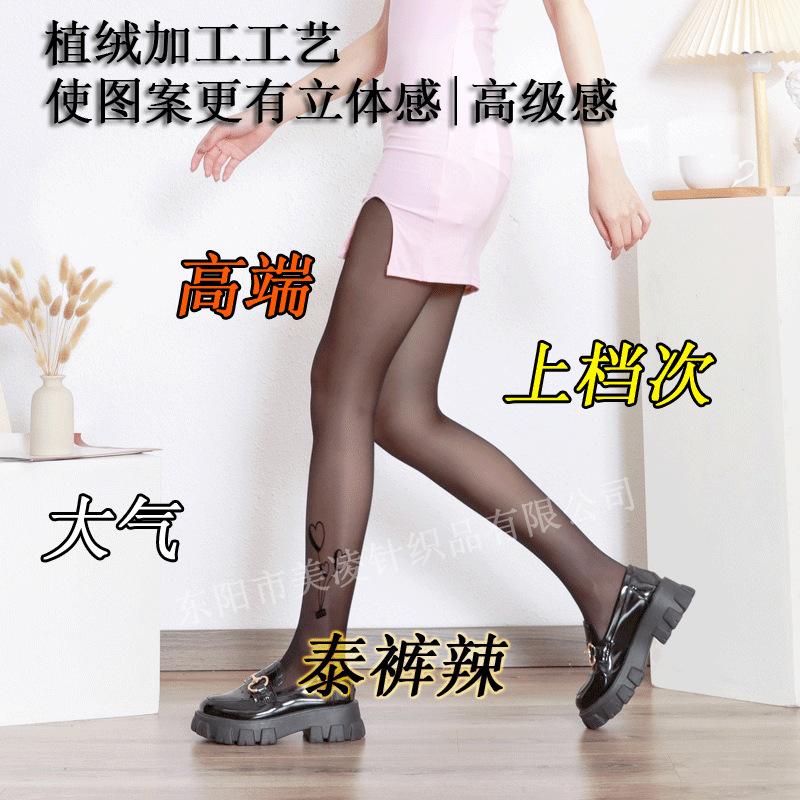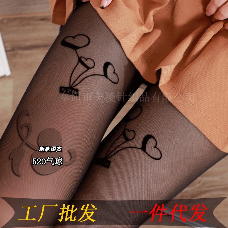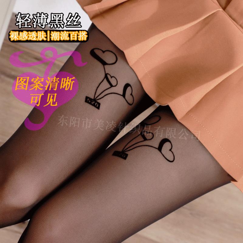 Nuevo Estilo Caliente Red Popular Medias Flock de Seda Negra Finas Antidesgarro Protección Solar de Verano Seda Hilada Núcleo Pantimedias Estampadas Calcetines de Mujer