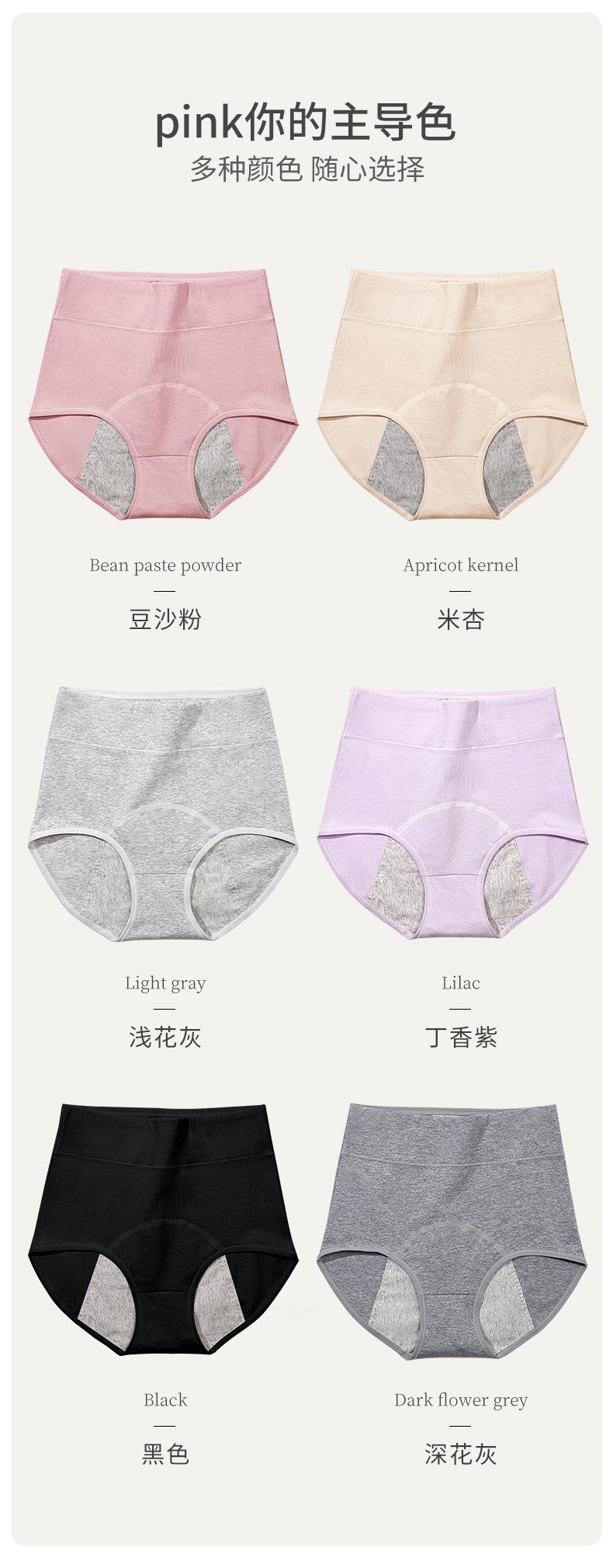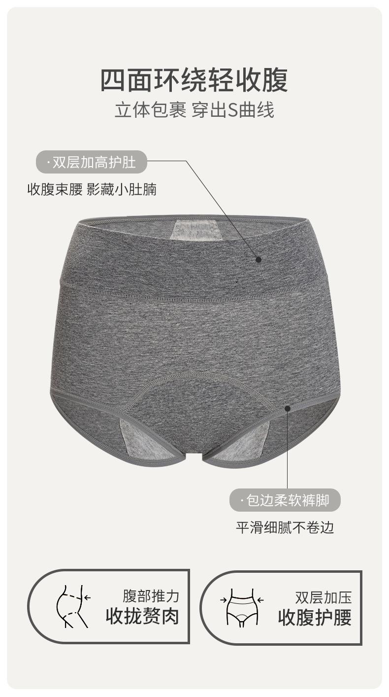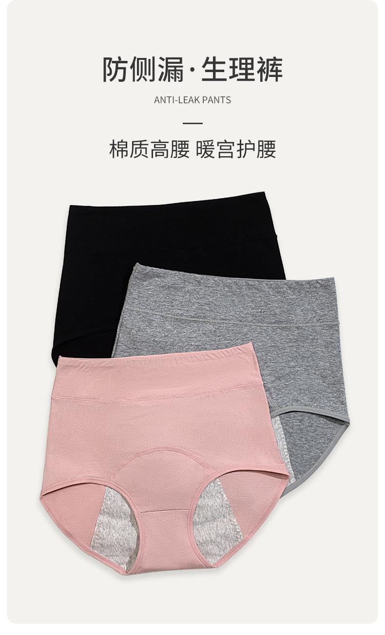 Ropa interior menstrual para mujer con entrepierna de algodón anti-fugas laterales, antibacteriana, segura y saludable, transpirable, de cintura alta para el abdomen