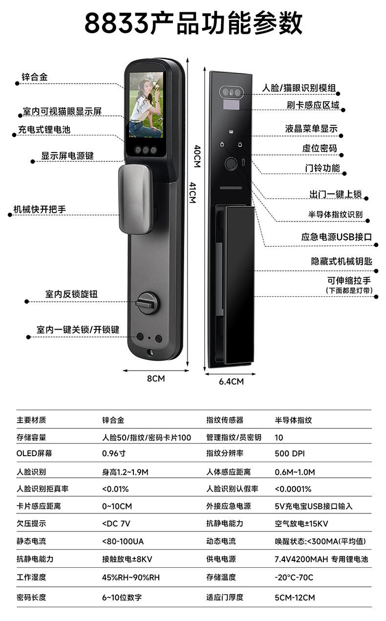 Fingerprint, Waterproof, Password, With key, Palmprint, visible cat's eye, face recognition, Remote Unlock