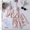 Pijama Sexy Nuevo Mujer Verano Camisón de Seda de Hielo Conjunto de Dos Piezas Encaje Sexy Seda Fina Verano Primavera Conjunto para Estar en Casa