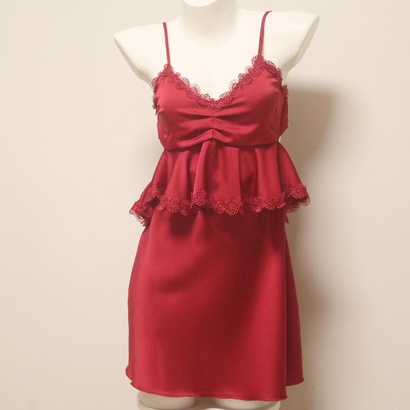 Estilo Deseo Puro Francés Seda de Hielo de Alta Gama Camisón Sexy con Almohadillas para el Busto Vestido de Casa para Mujer Borde con Volantes Lencería Erótica Camisola Pijama