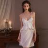 Estilo Deseo Puro Francés Seda de Hielo de Alta Gama Sexy Camisón con Almohadillas para el Busto Vestido de Casa para Mujer Borde con Volantes Lencería Erótica Camisola Pijama