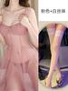 Pink Set + White Crotchless Stockings