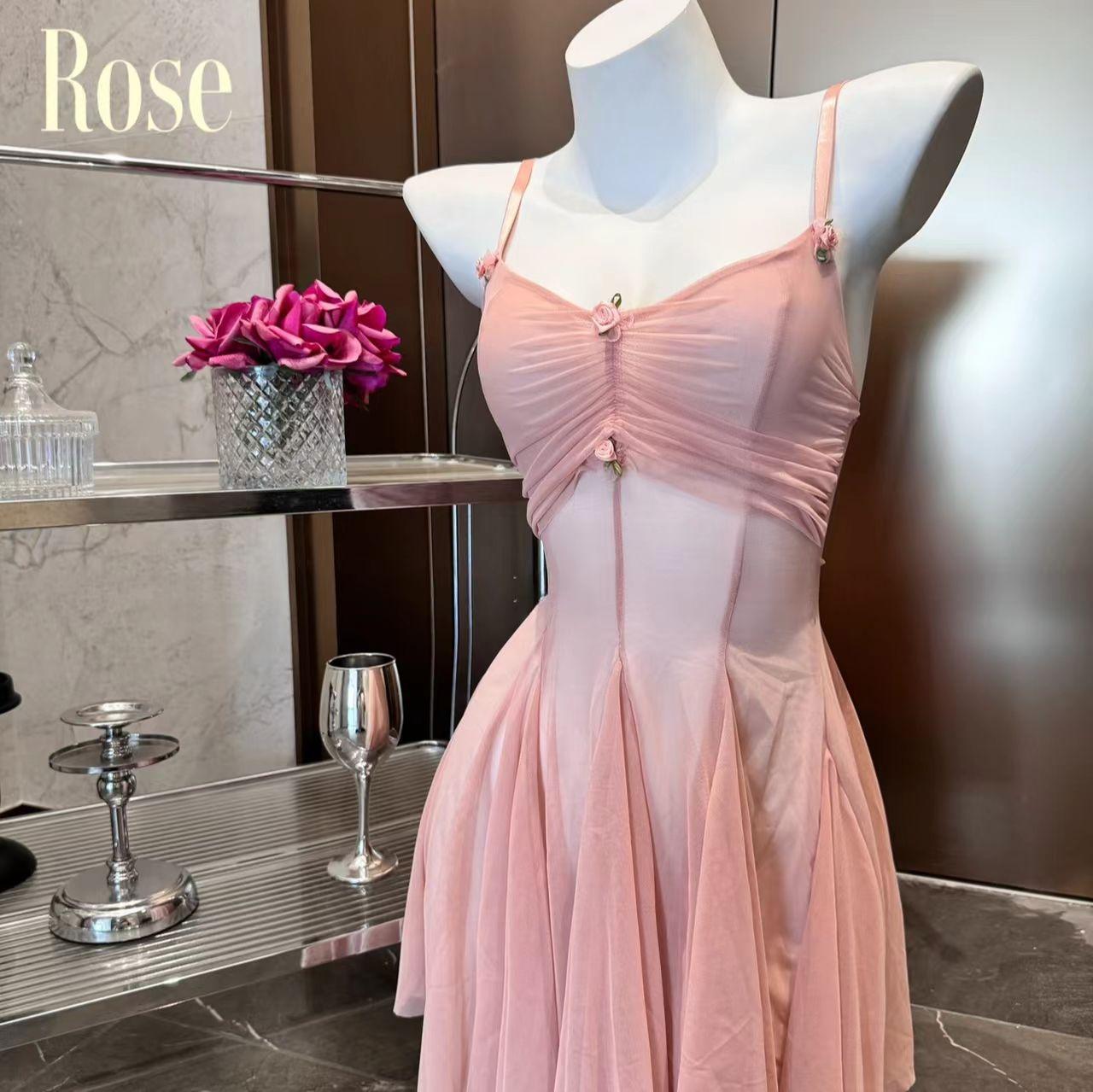 Pink (nightdress + T pants), Black (nightdress + T pants), Pink suit + white fishnet stockings, Pink suit + wh...