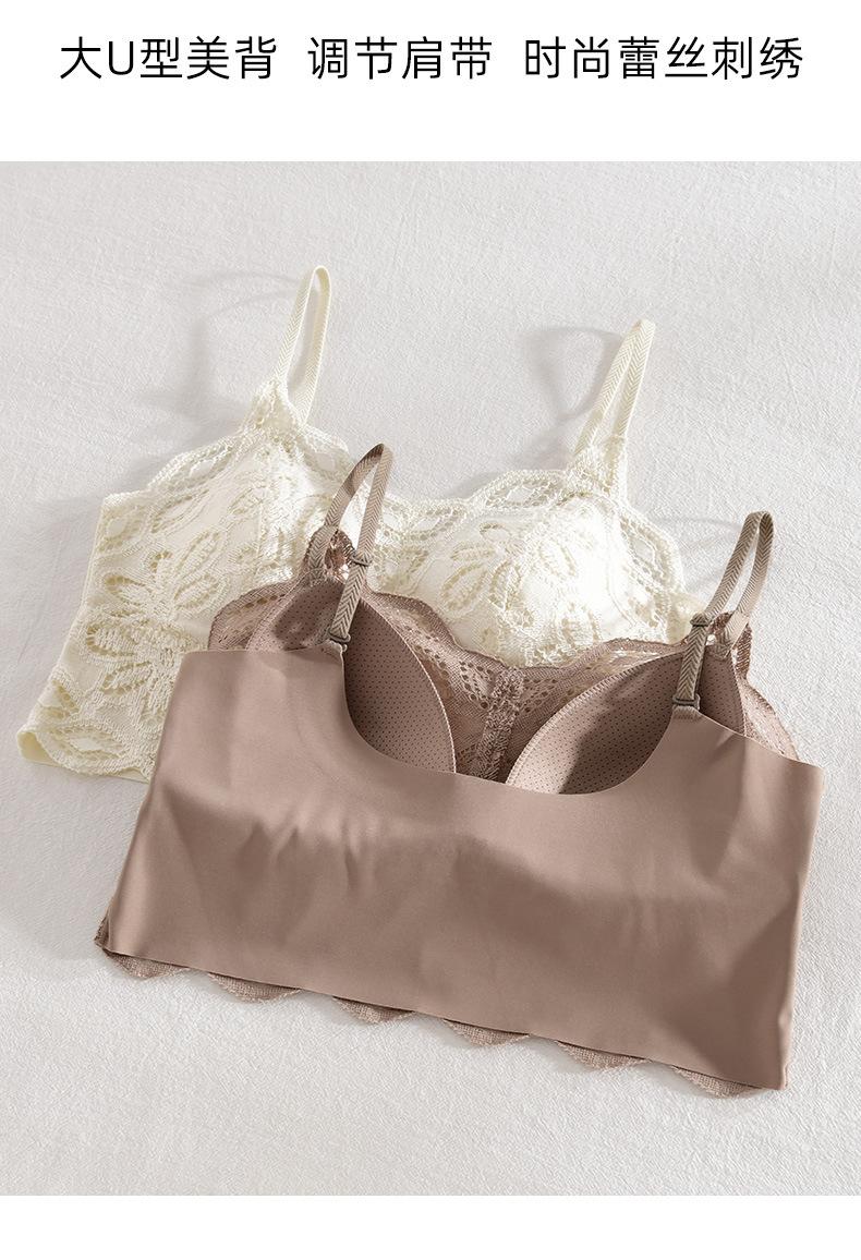 Otoño Nuevo Encaje Lencería Francesa Sujetador para Mujer Pecho Pequeño Push-up Ropa Interior Inalámbrica Sexy Espalda en U Envolvente Pecho