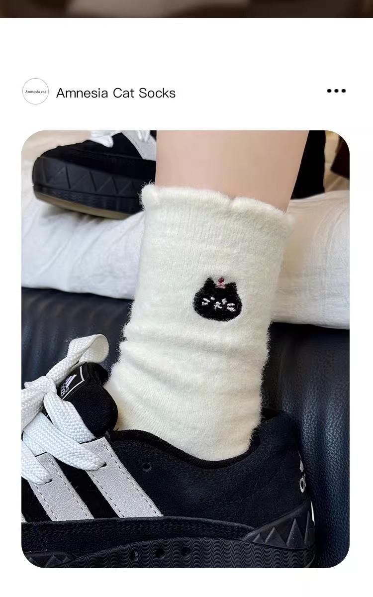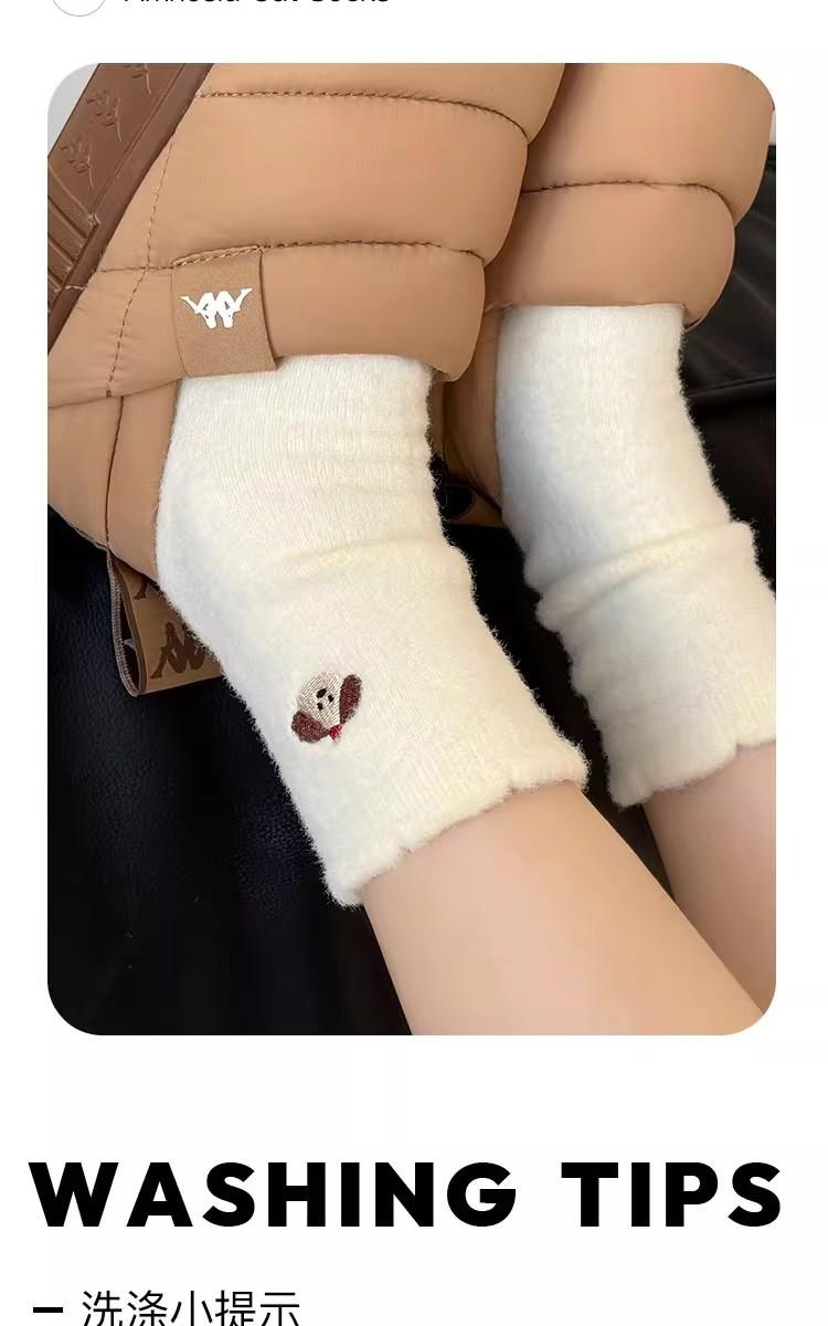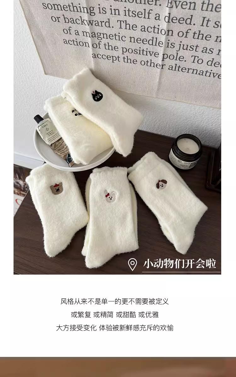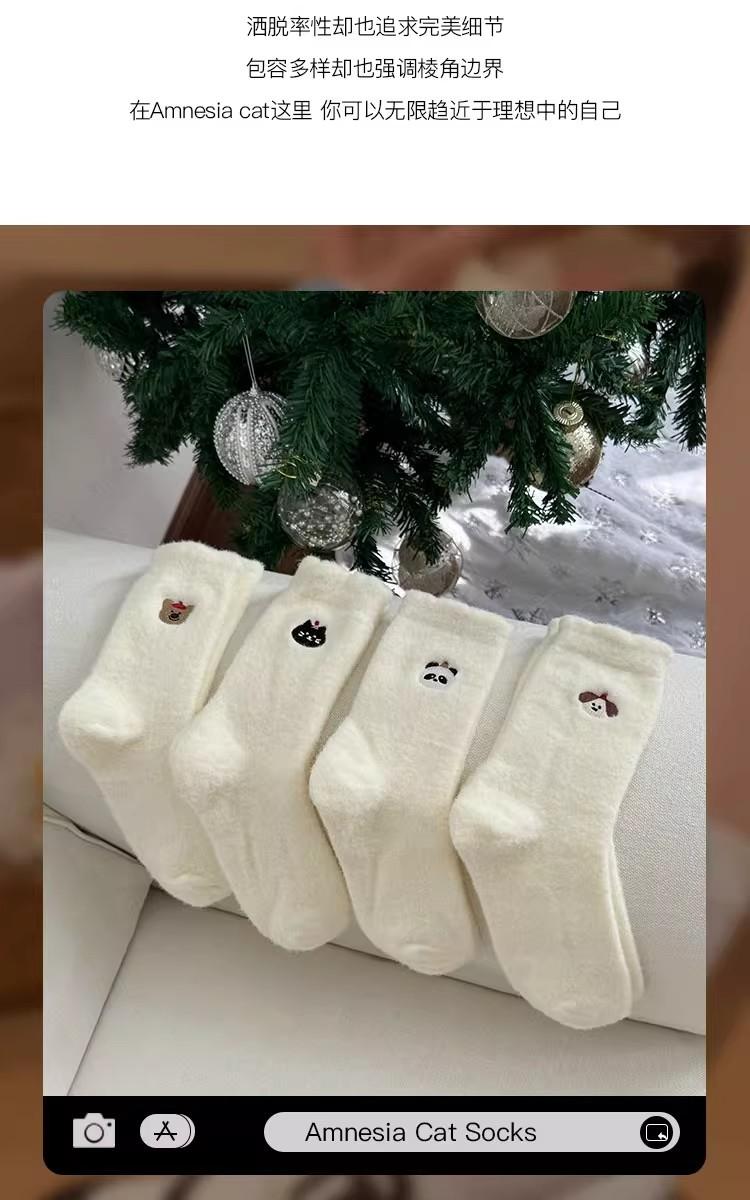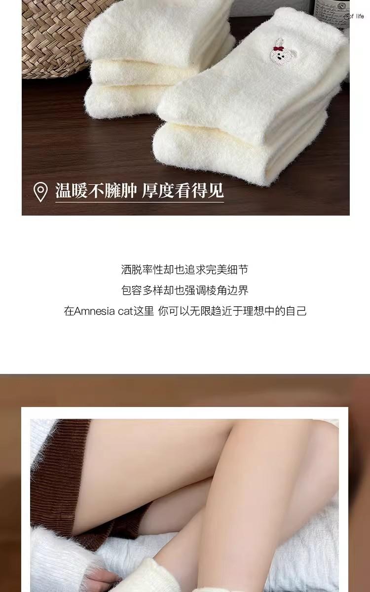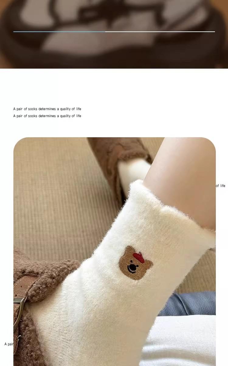 Otoño e invierno más terciopelo engrosado cálido calcetines a media pantorrilla encaje caricatura lindo calcetines de rizo calcetines gruesos de felpa calcetines para dormir invierno