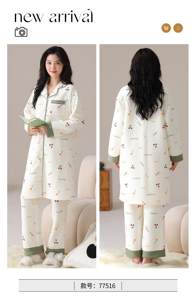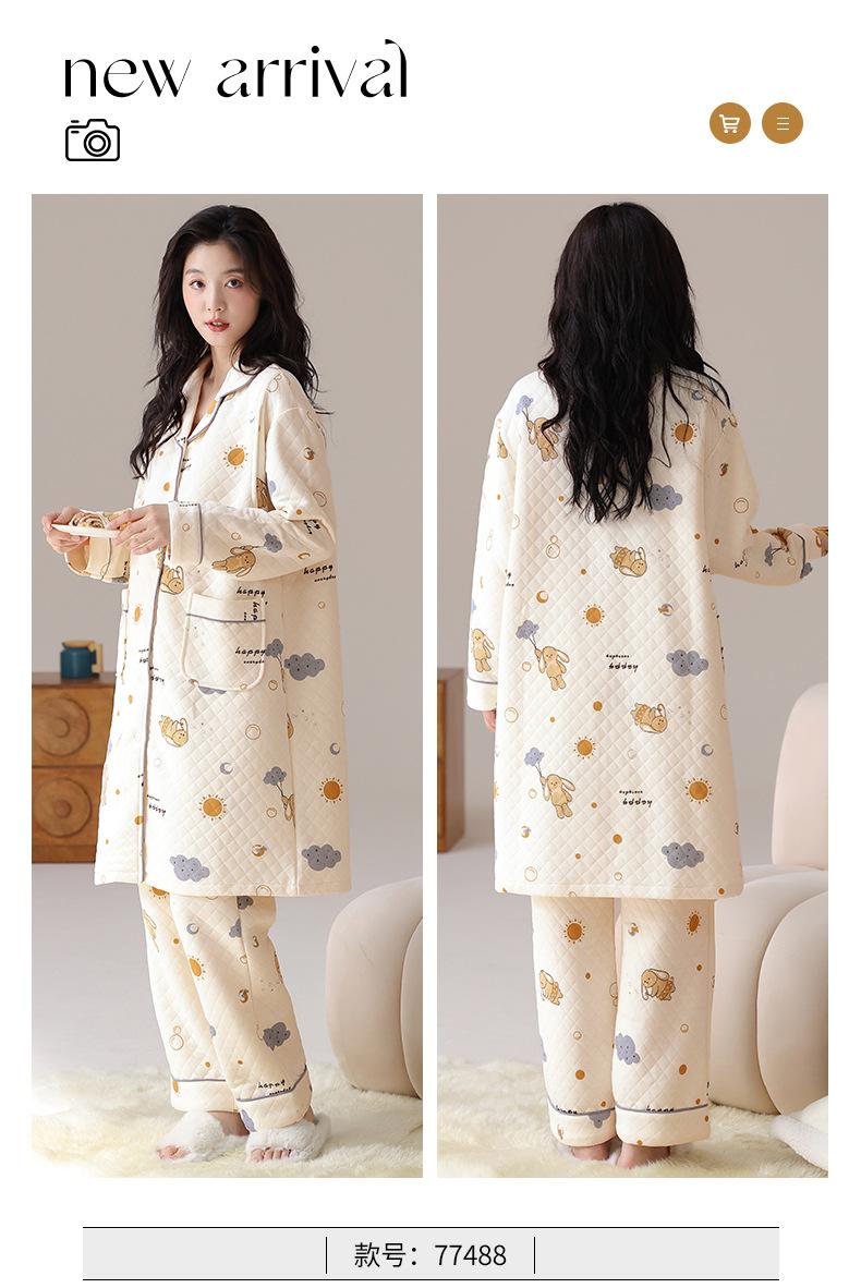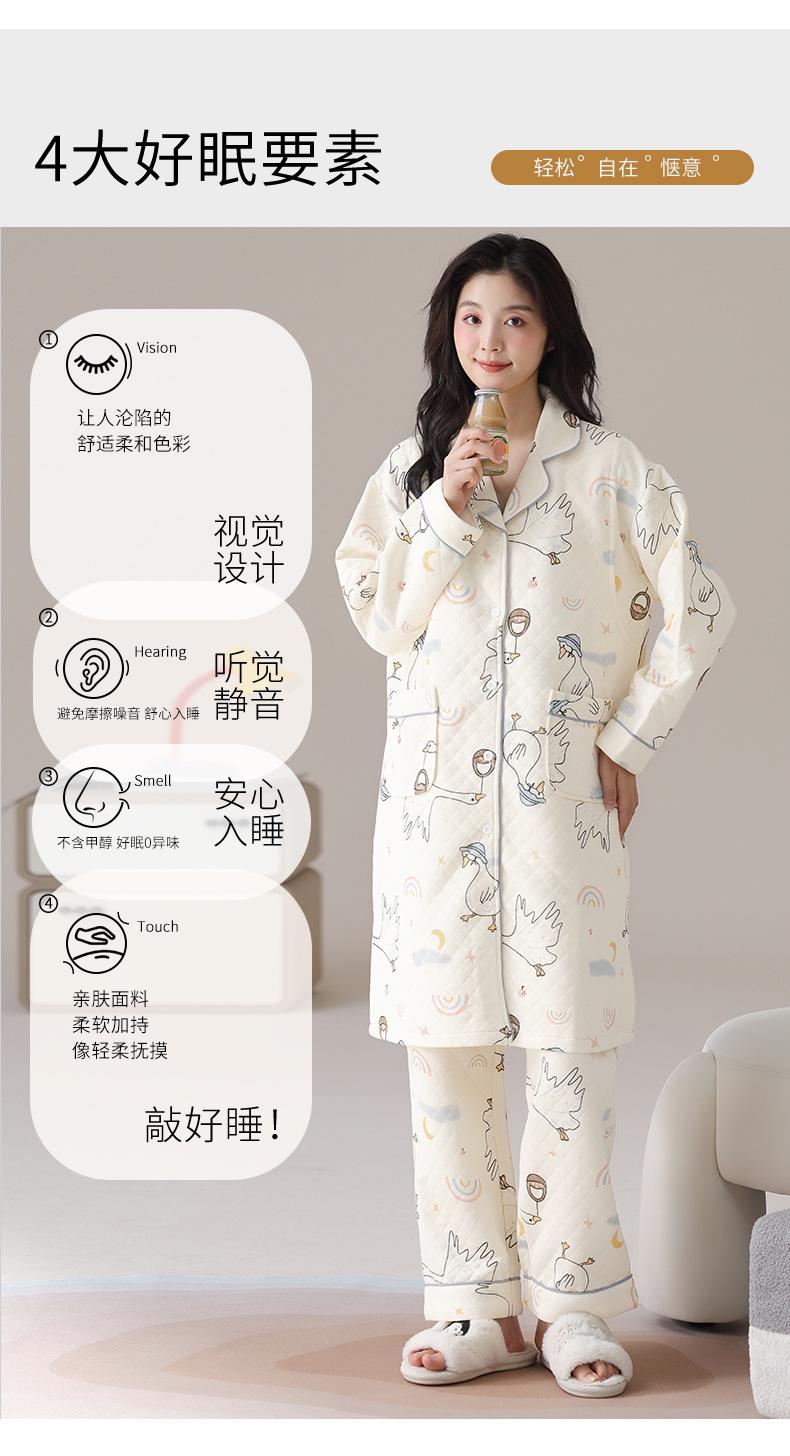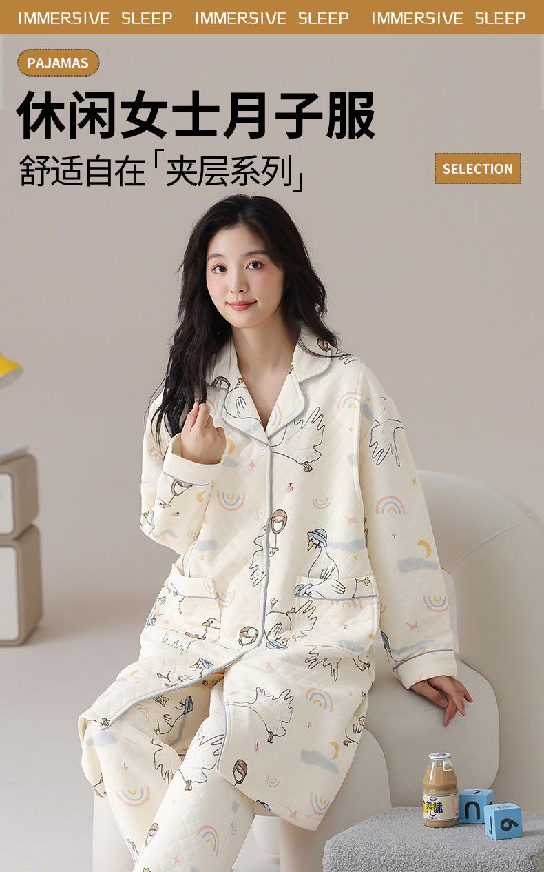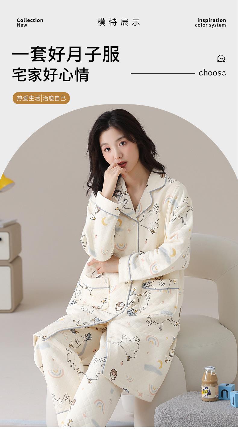 Conjunto de Bata de Algodón Puro de Doble Capa Xi Yue Nuevo Ropa de Maternidad para Mujer Otoño e Invierno Mujeres Embarazadas Postparto Lactancia Cálido Ropa para Estar en Casa