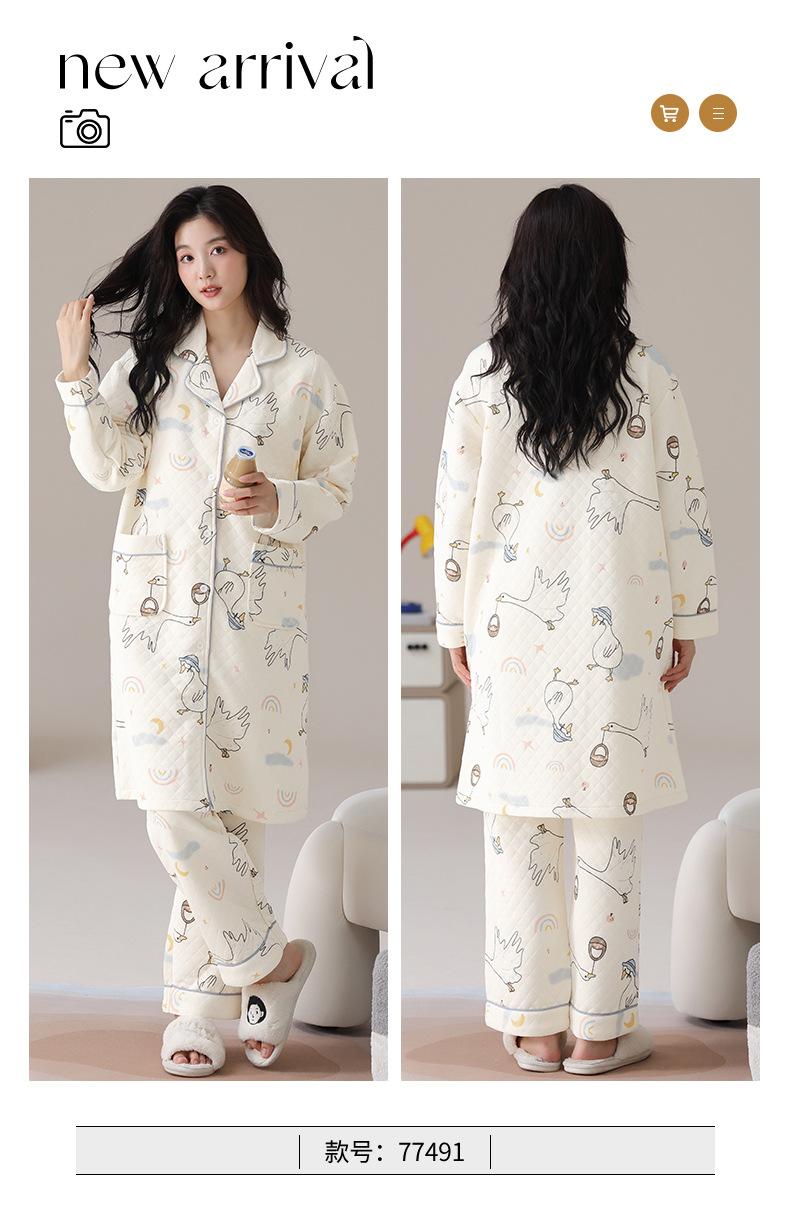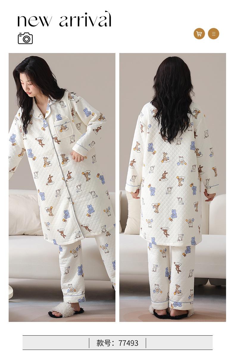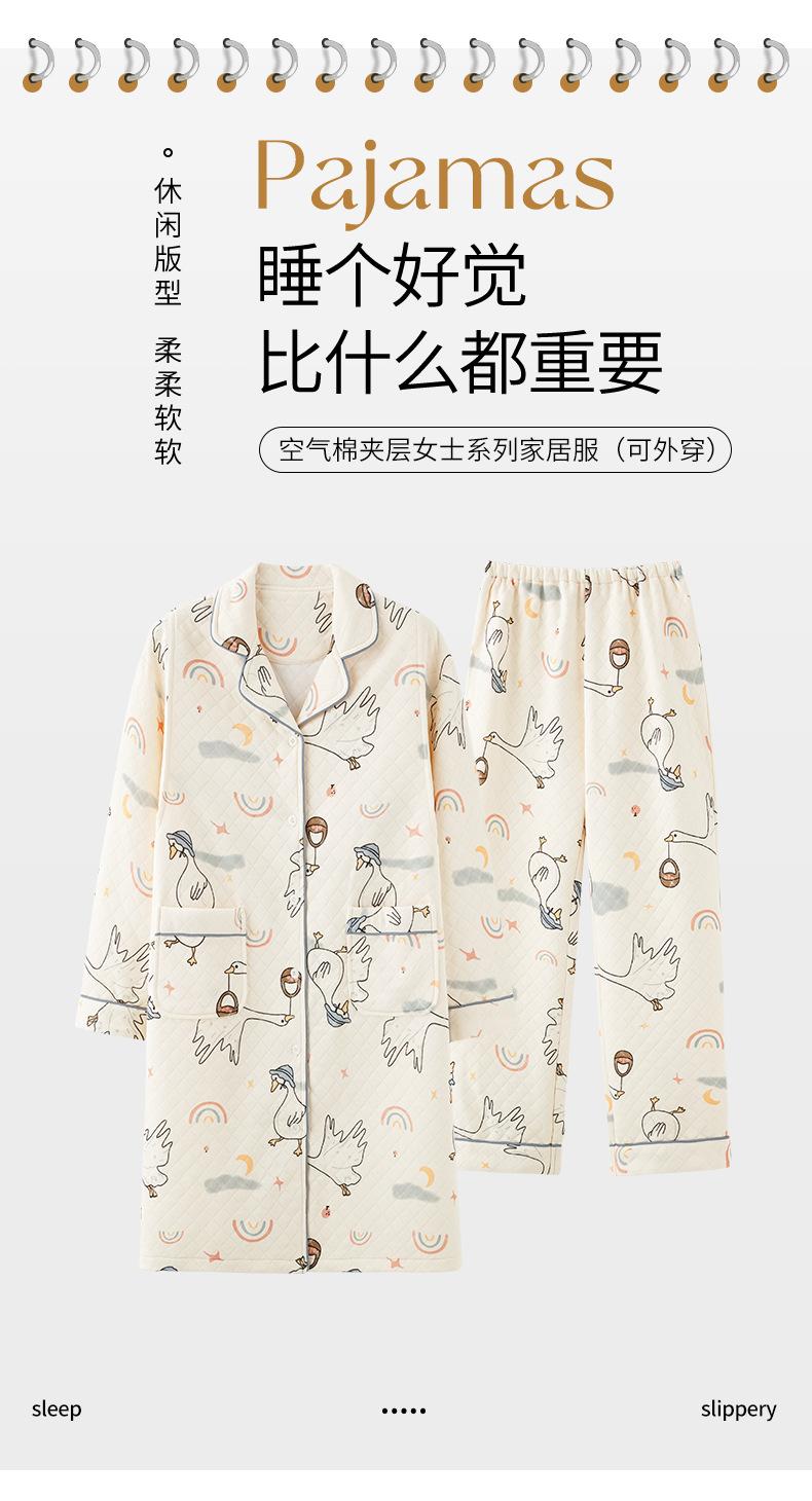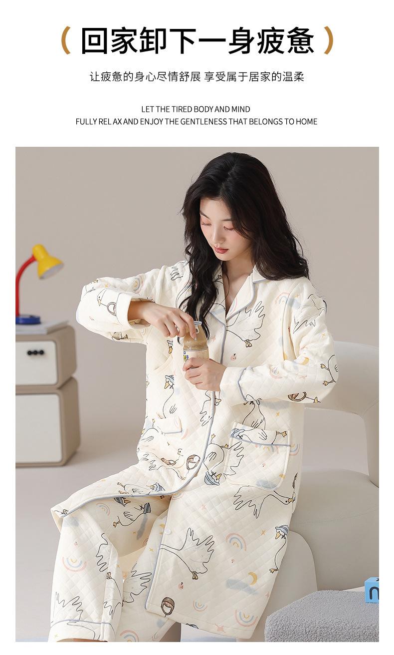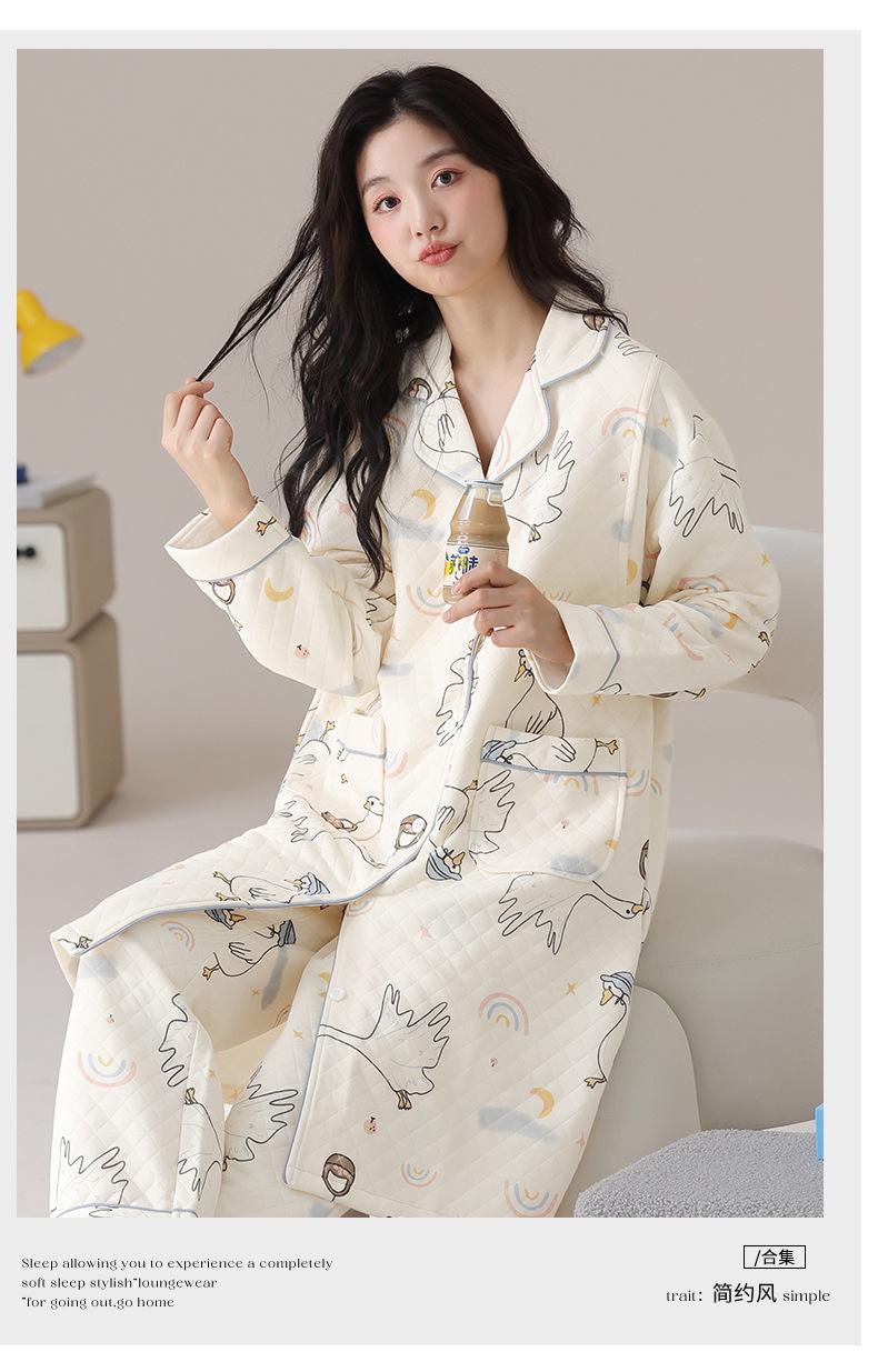 Conjunto de Bata de Algodón Puro de Doble Capa Xi Yue Nuevo Ropa de Maternidad para Mujer Otoño e Invierno Mujeres Embarazadas Postparto Lactancia Cálido Ropa para Estar en Casa
