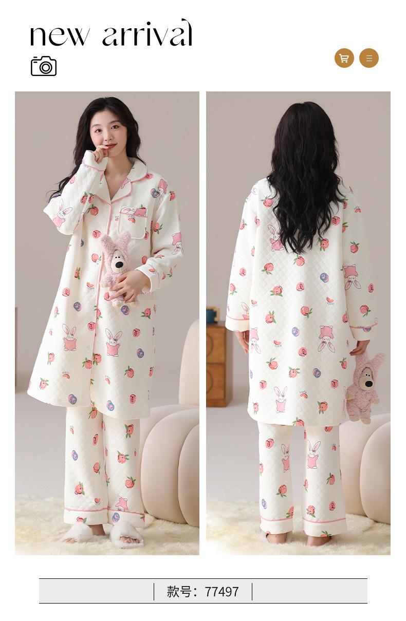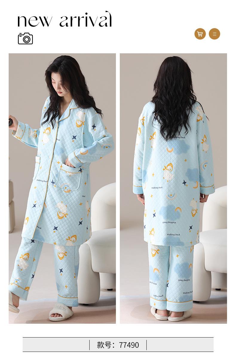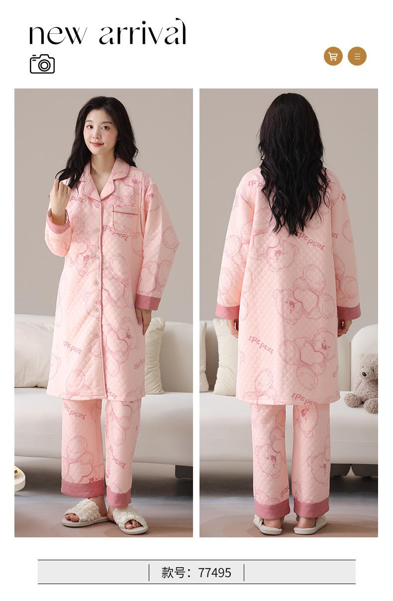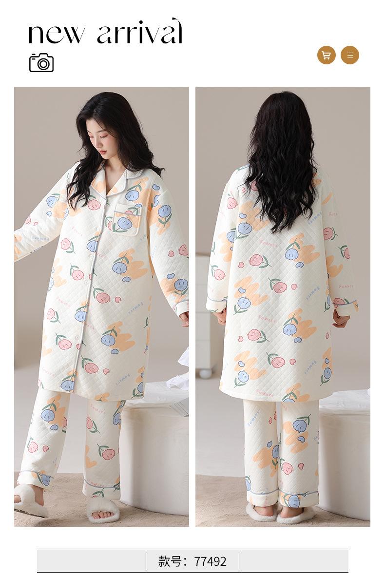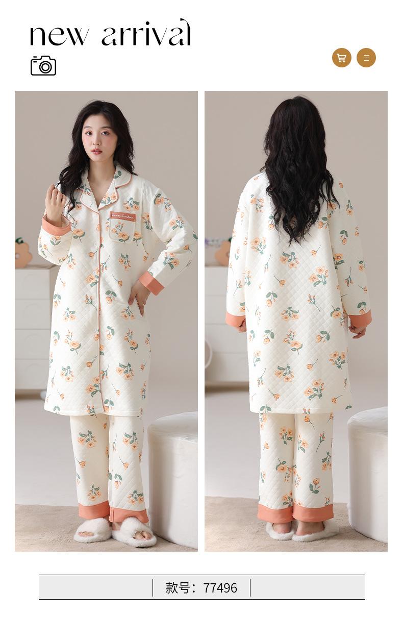 Conjunto de Bata de Algodón Puro de Doble Capa Xi Yue Nuevo Ropa de Maternidad para Mujer Otoño e Invierno Mujeres Embarazadas Postparto Lactancia Cálido Ropa para Estar en Casa