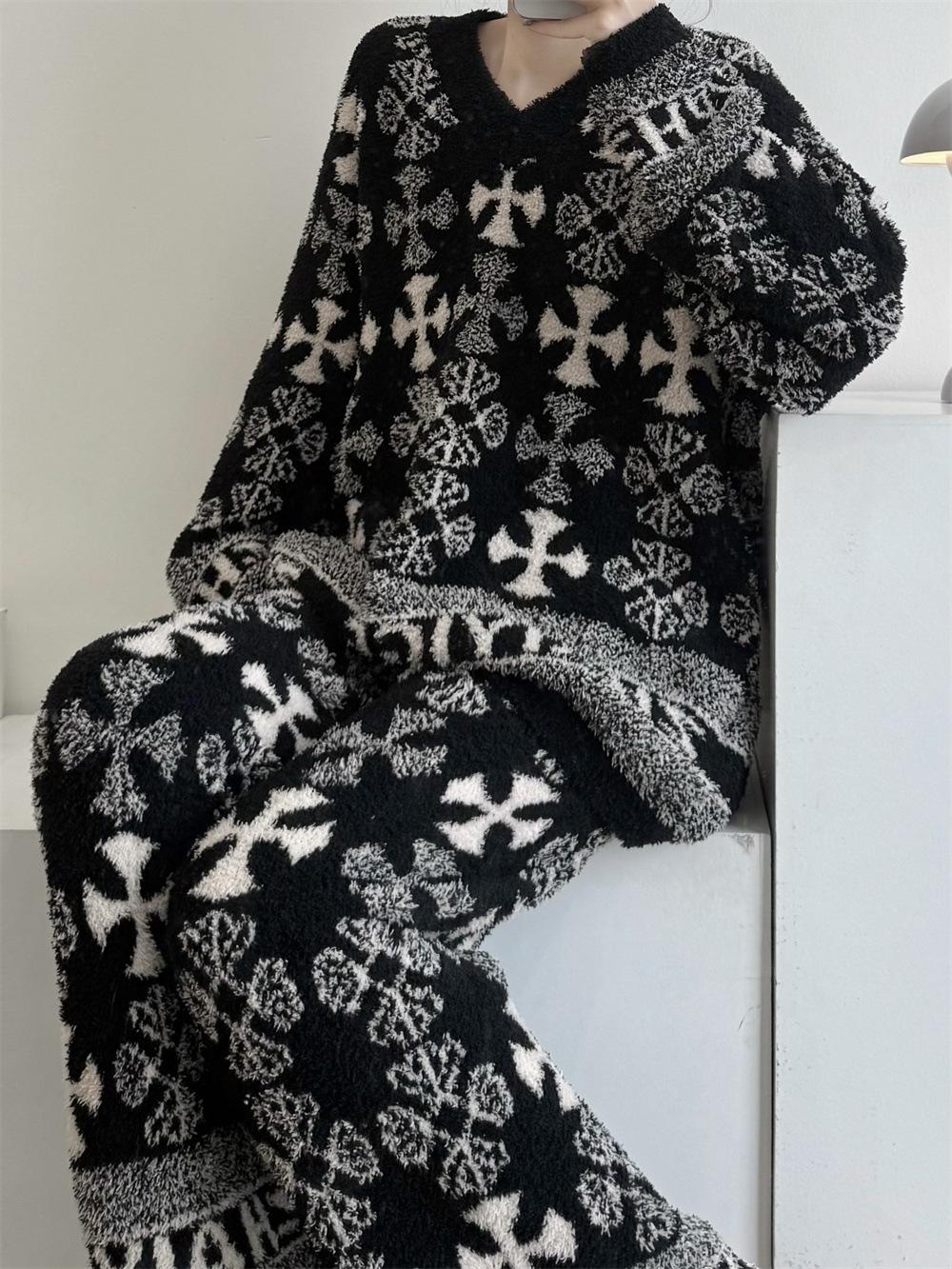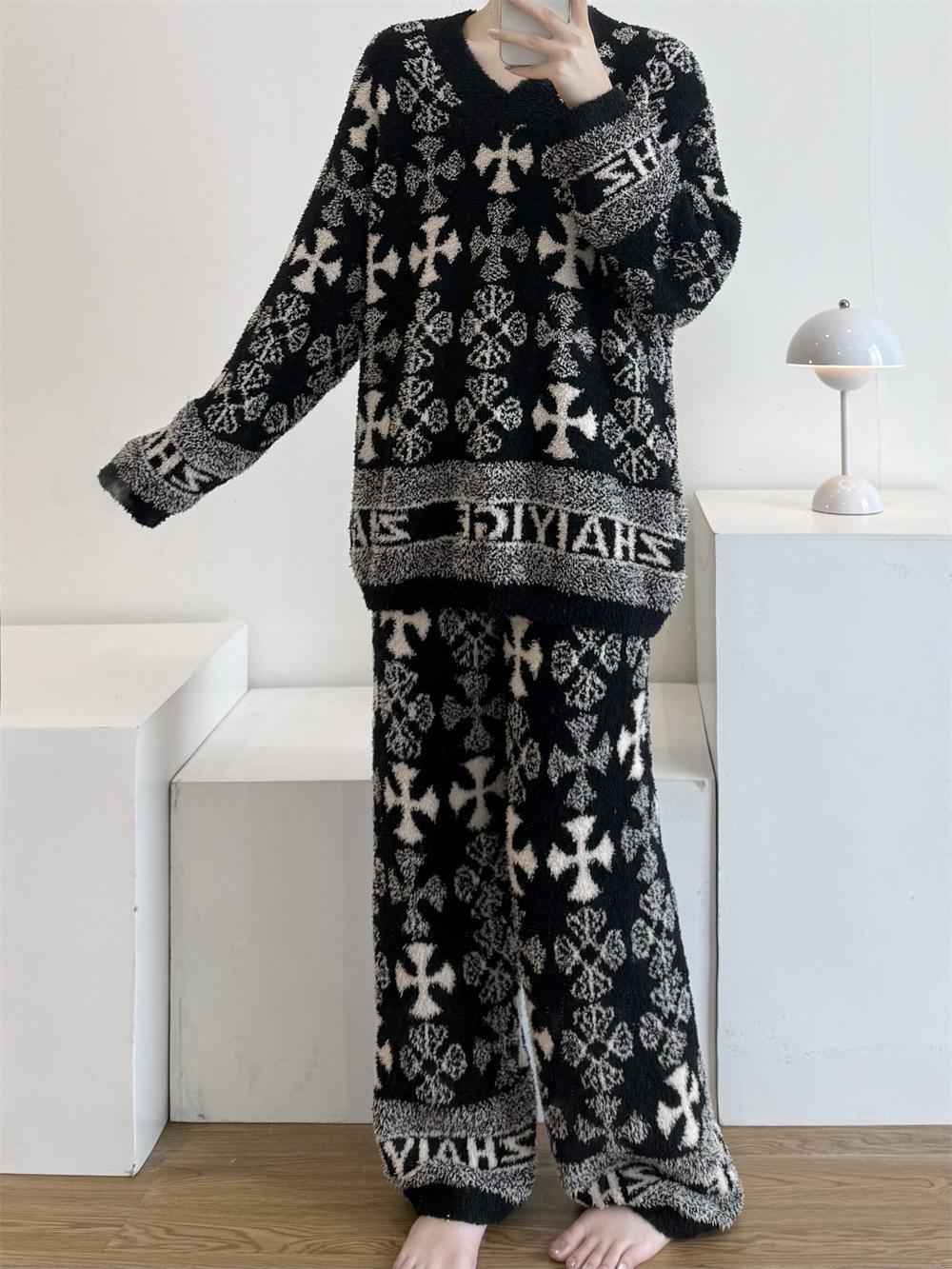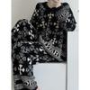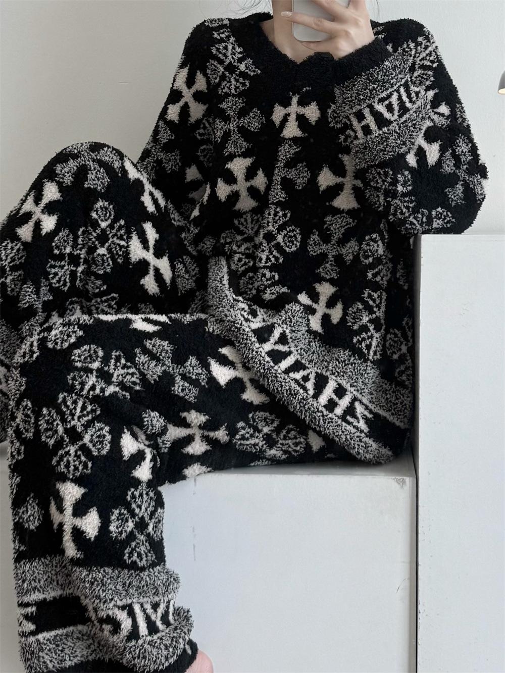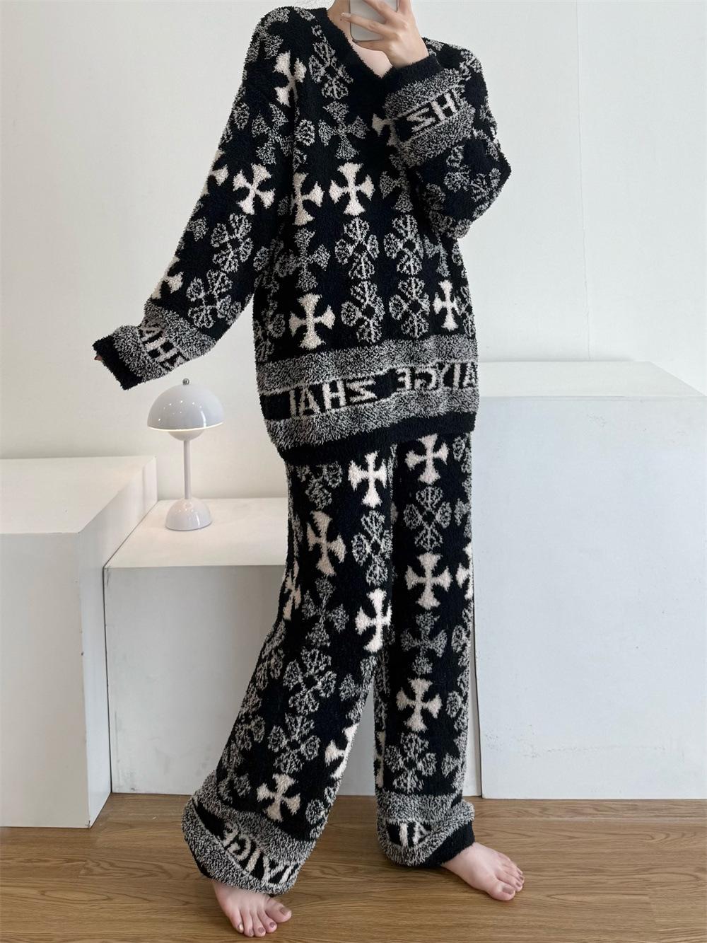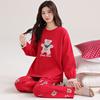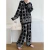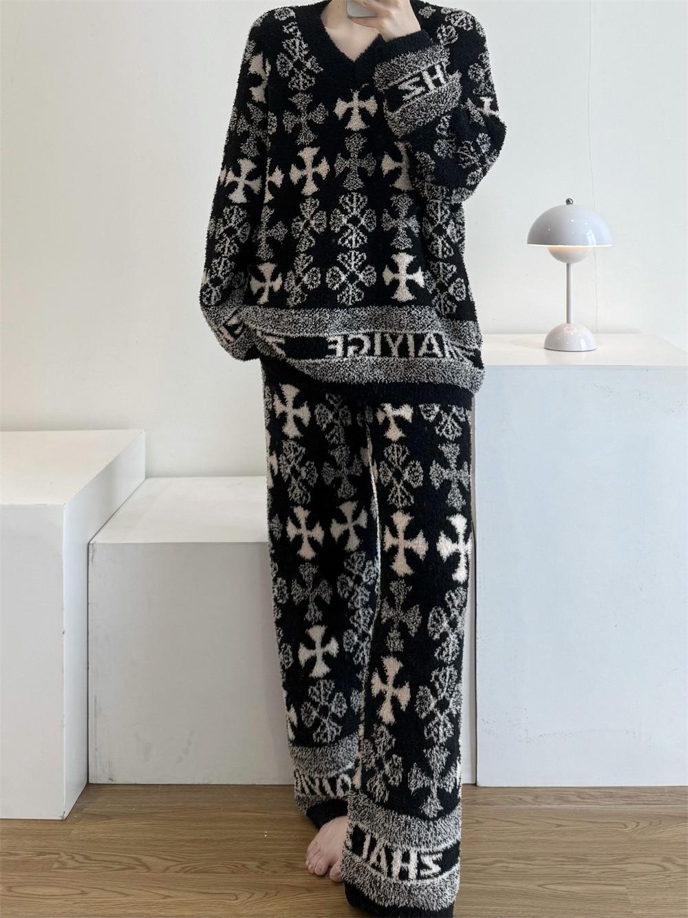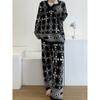 Pijama de terciopelo medio de alta gama con estampado holgazán estilo coreano para mujer, invierno, nuevo, tejido de punto, manga larga, pantalón largo, conjunto de ropa para el hogar