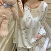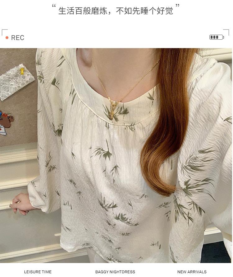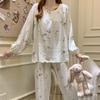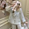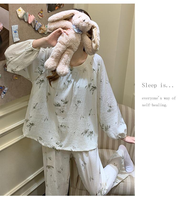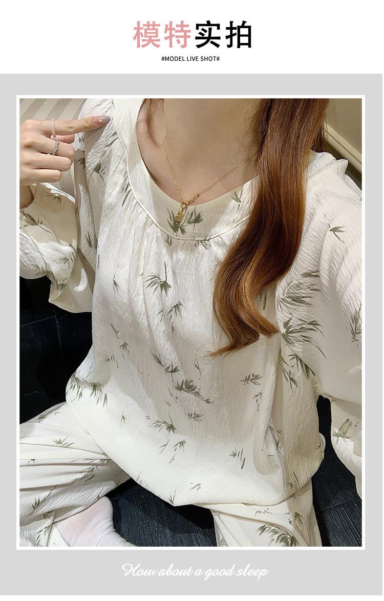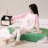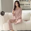 Pijamas de Mujer Nuevos de Primavera y Otoño con Almohadilla en el Pecho para Mujer Manga Larga Pantalón Largo Delgada Fibra de Bambú Fresca Se Puede Usar Afuera Ropa de Casa