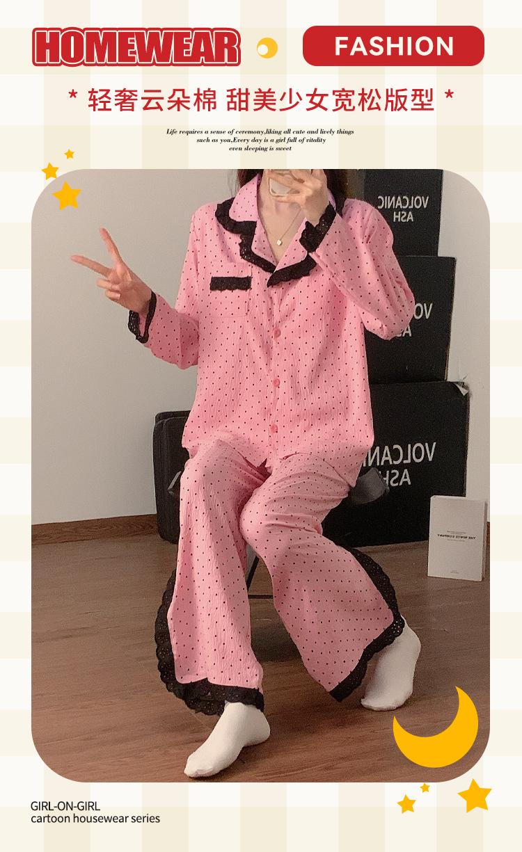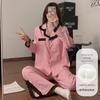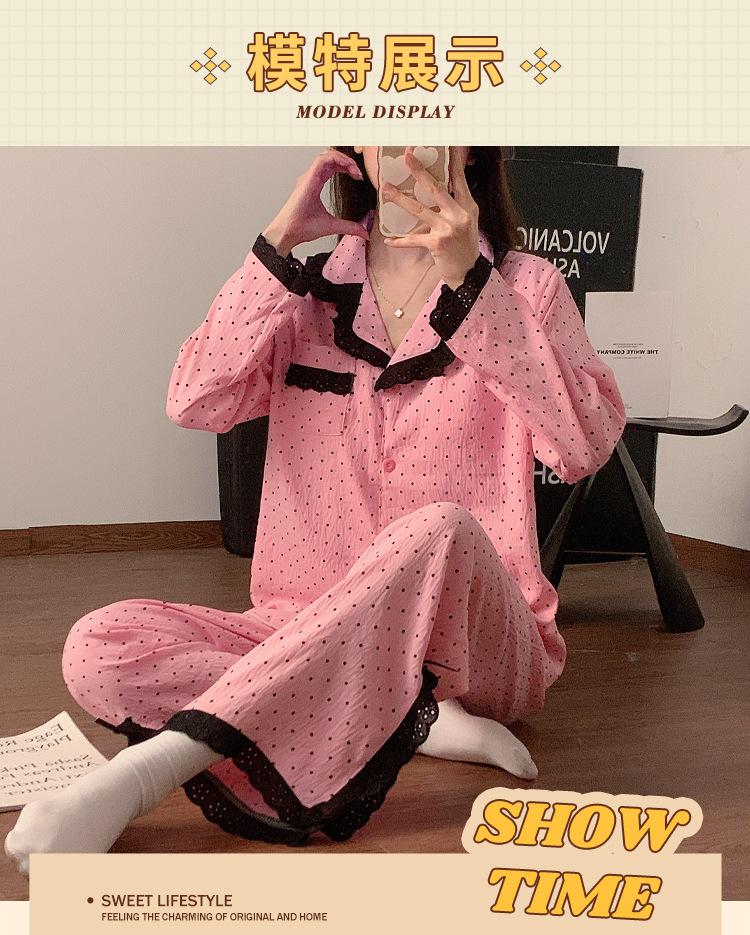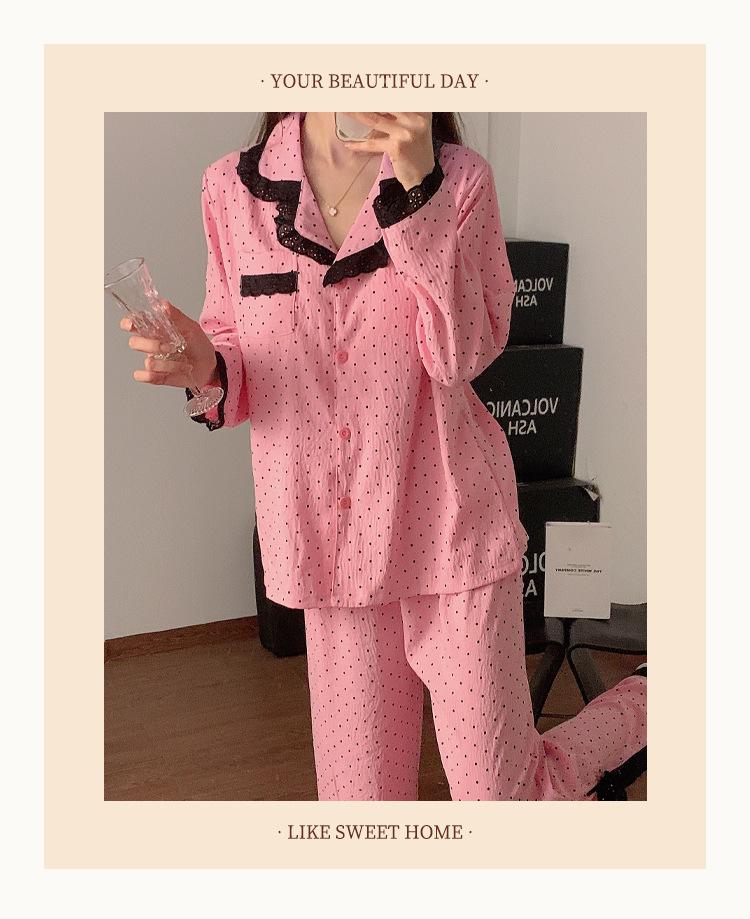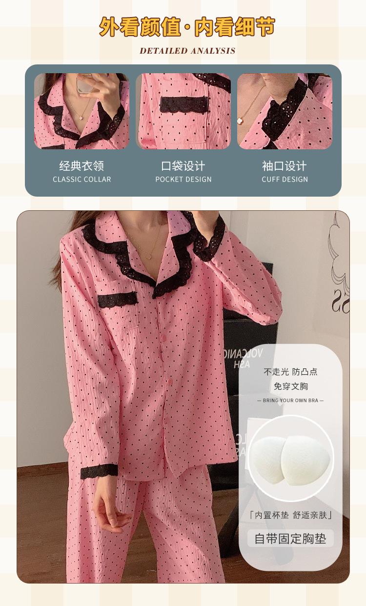 Conjunto de Pijama para Mujer de Encaje Nuevo con Abertura, Algodón Nube, Manga Larga, Pantalón Largo y Almohadilla en el Pecho