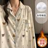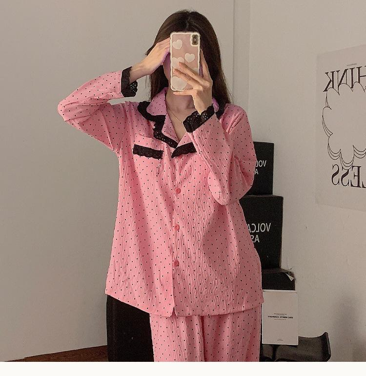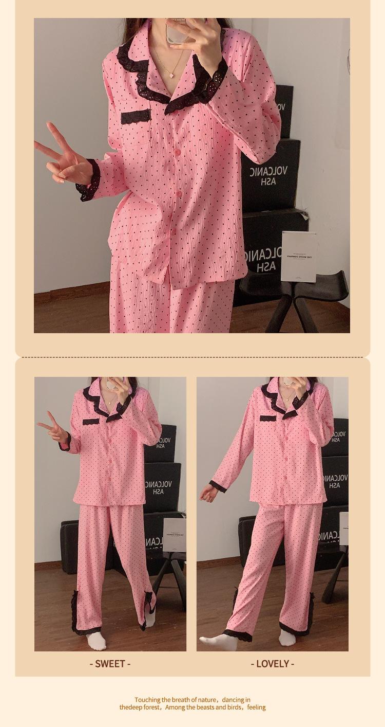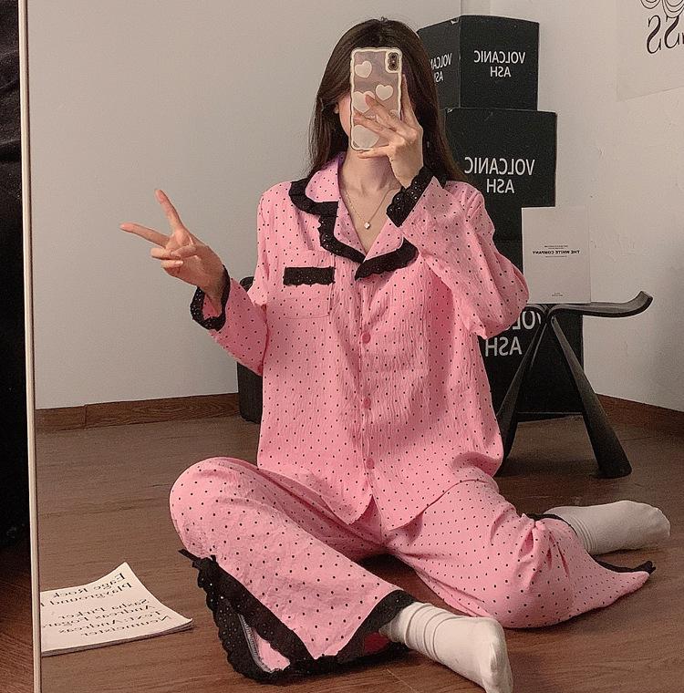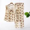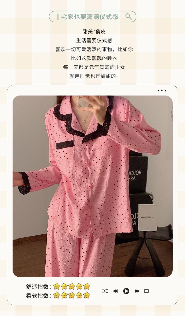 Conjunto de Pijama para Mujer de Encaje Nuevo con Abertura, Algodón Nube, Manga Larga, Pantalón Largo y Almohadilla en el Pecho