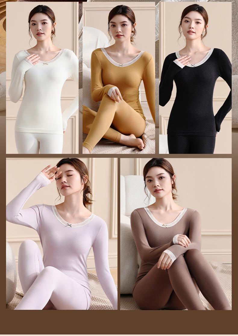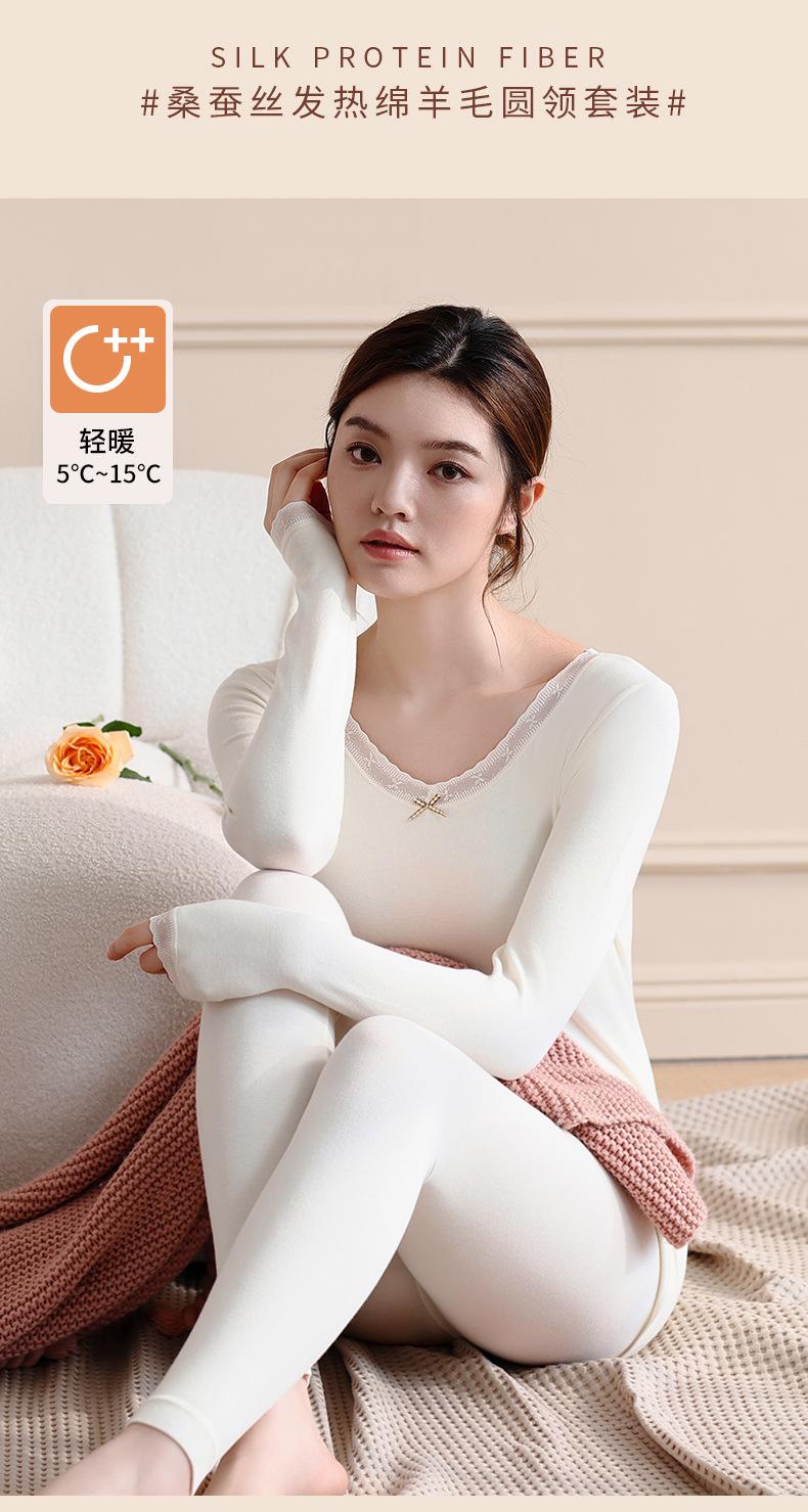 Conjunto de Ropa Interior Térmica de Seda para Mujer Otoño e Invierno Adelgazante Moldeador de Cuerpo Ropa Interior Capa Base Sin Costuras