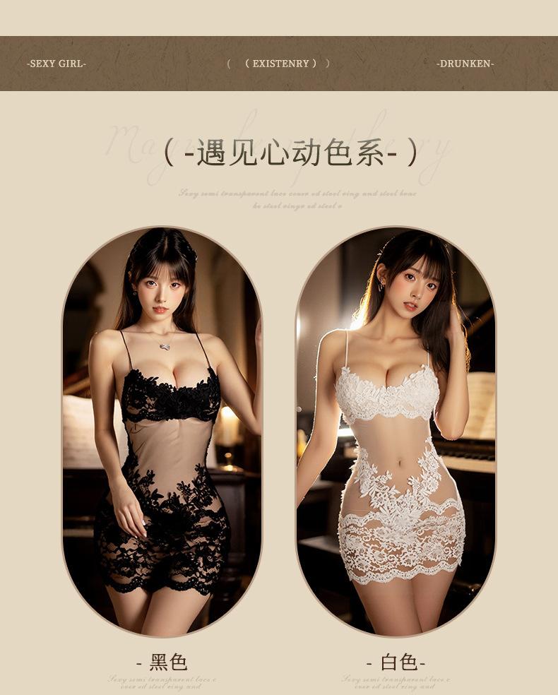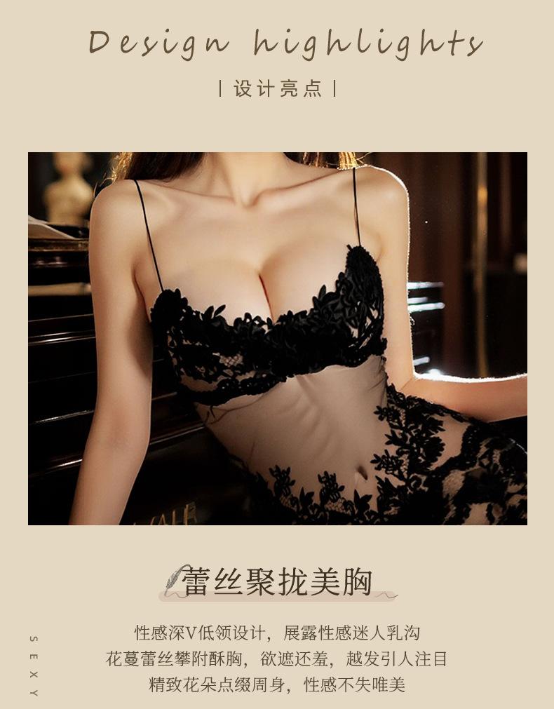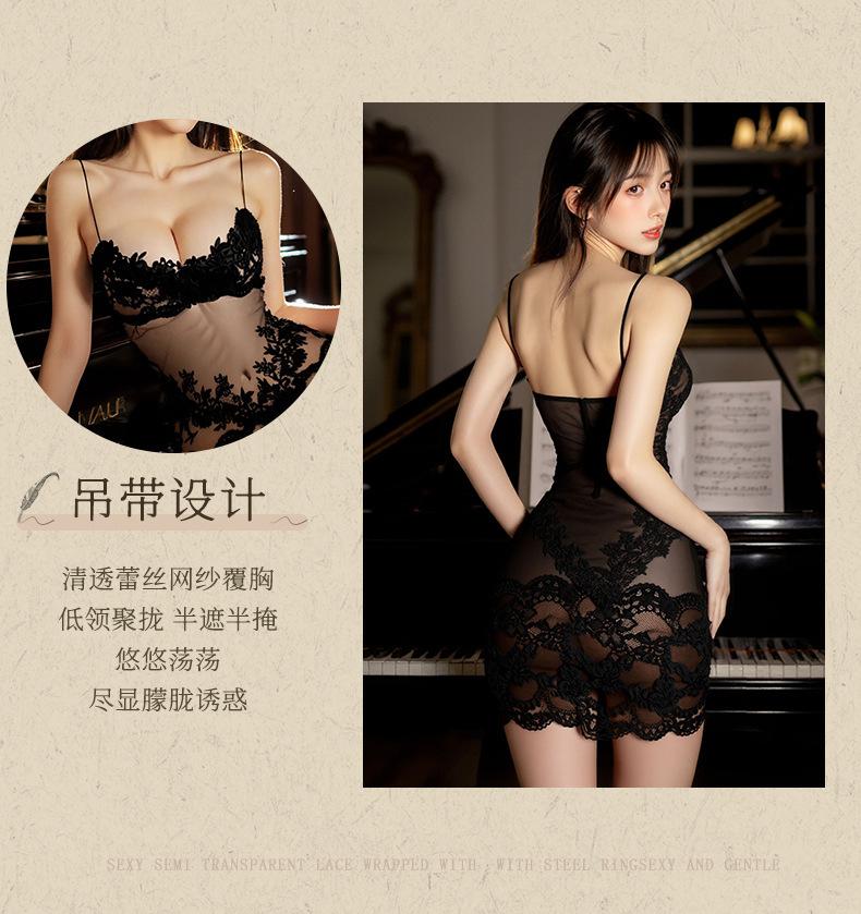 Conjunto de Lencería Sexy de Malla de Encaje Transparente Francés Deseo Puro de Industria Pesada Vacaciones Camisola Sexy Camisón Venta al por Mayor
