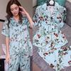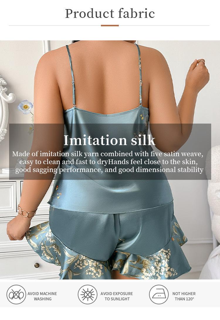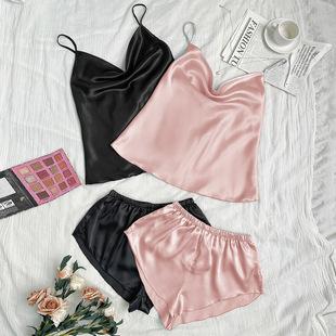 Pijama de Seda de Hielo Estilo Europeo y Americano Set de Camisola y Shorts para Mujer Verano Delgado Sexy Moda Ropa de Casa Pijama de Seda Imitación