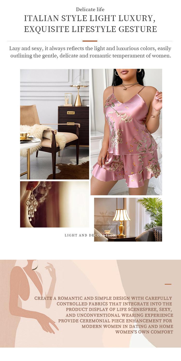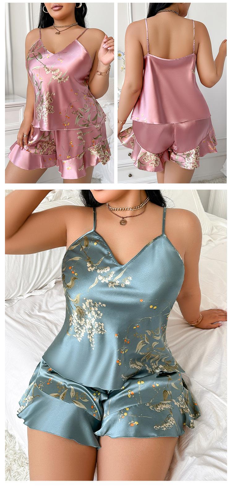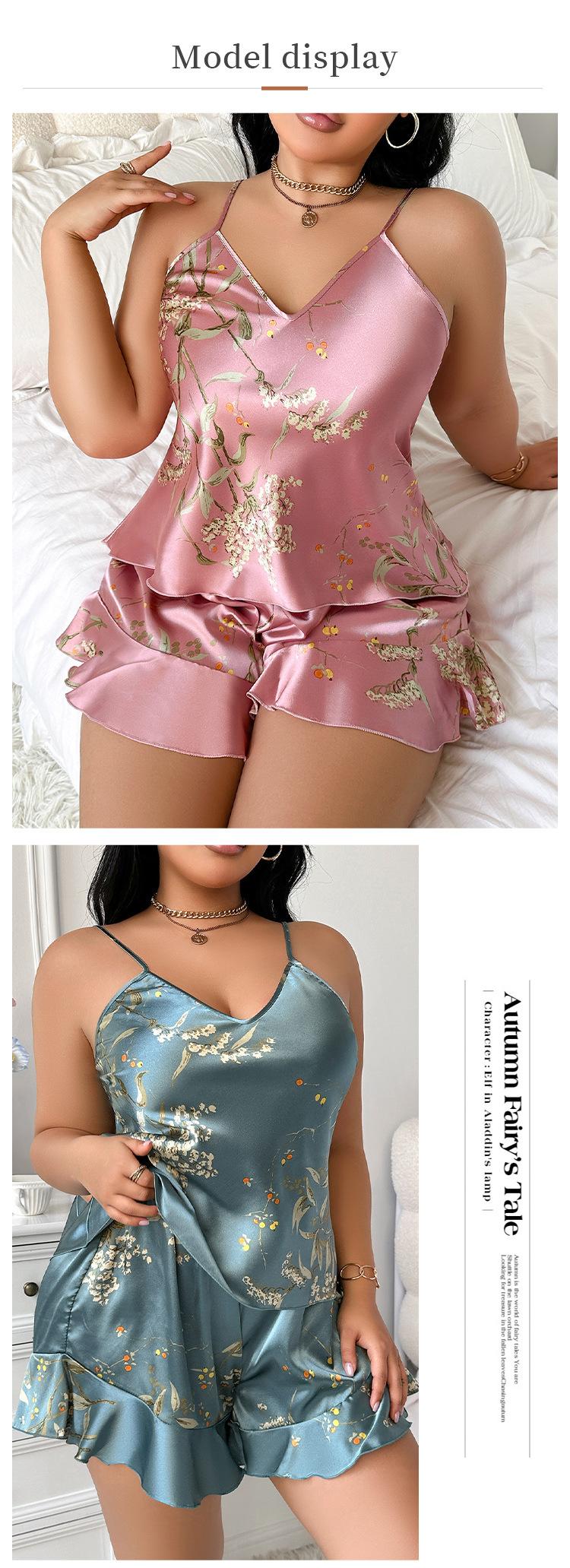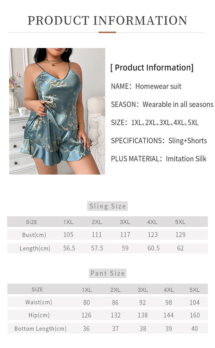 Pijamas estampados de talla grande estilo europeo y americano, pijamas casuales de moda de seda helada, ropa para el hogar, ropa para el hogar de seda con tirantes para mujer