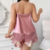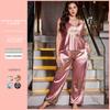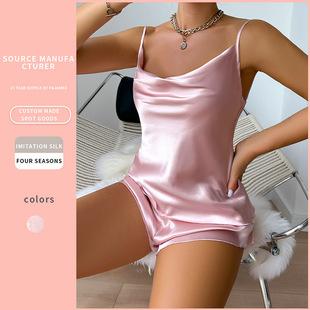 Estilo europeo y americano transfronterizo nuevo ropa interior de seda sexy ropa de casa pijama de seda de hielo conjunto de peto con tirantes para mujer