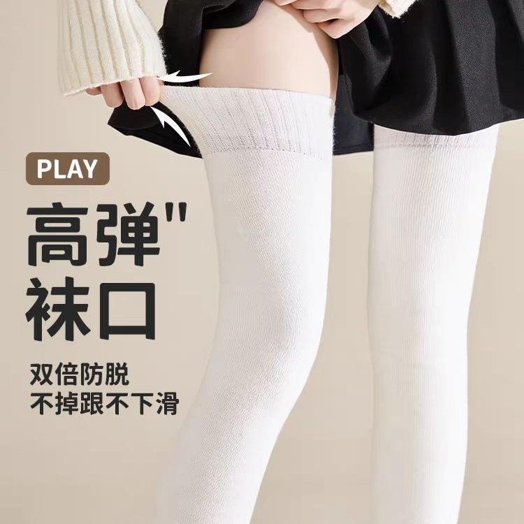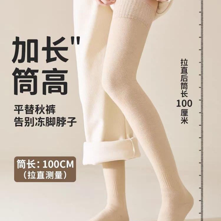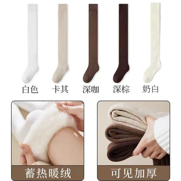 Medias por encima de la rodilla de otoño para mujer, estilo otoño e invierno, gruesas, cálidas, de felpa de lana sintética, de tubo alto por encima de la rodilla, hasta el muslo, calcetines para botas altas hasta el muslo