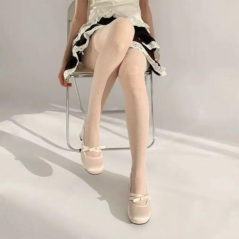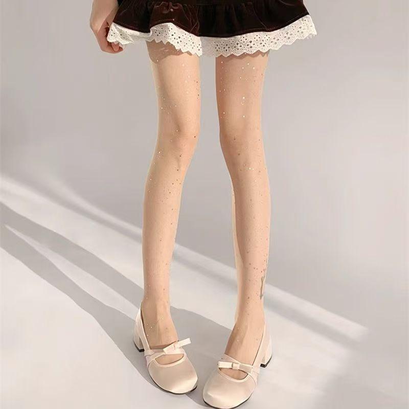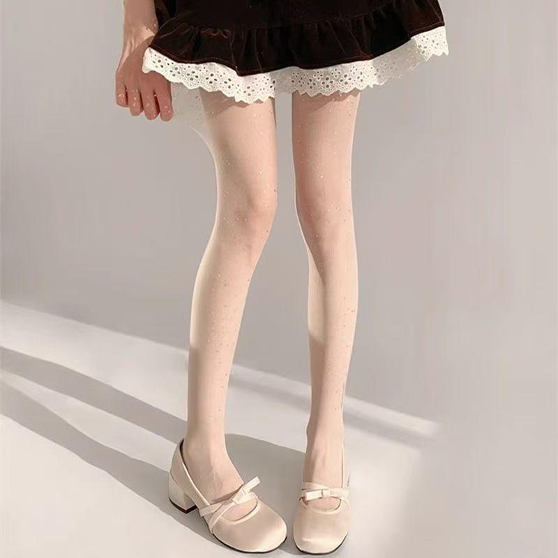 Club Nocturno Medias Brillantes Mujeres Pantimedias Capa Base Seda Blanca Brillante Ultradelgadas JK Chica Caliente Color Nude Lentejuelas Bling