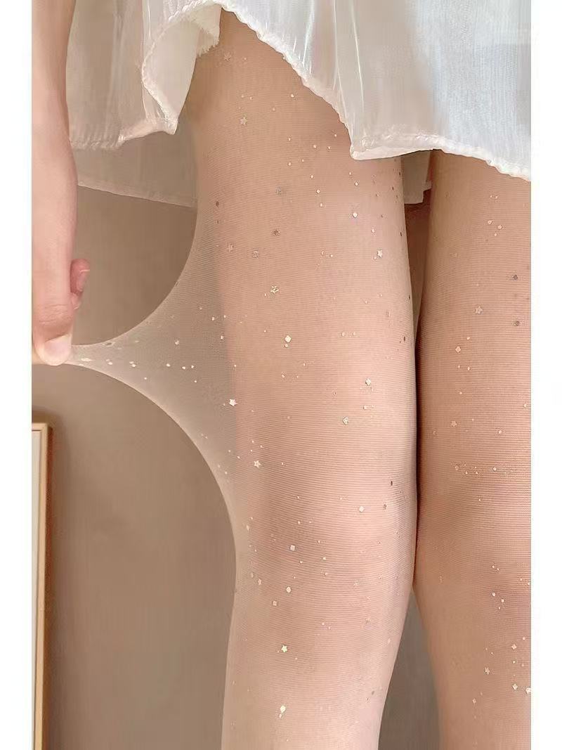 Cosmic Starry White, Cosmic Starry Skin Tone, Cosmic Starry Black, Gold Leaf Print Starry Sky, English black stockings