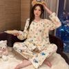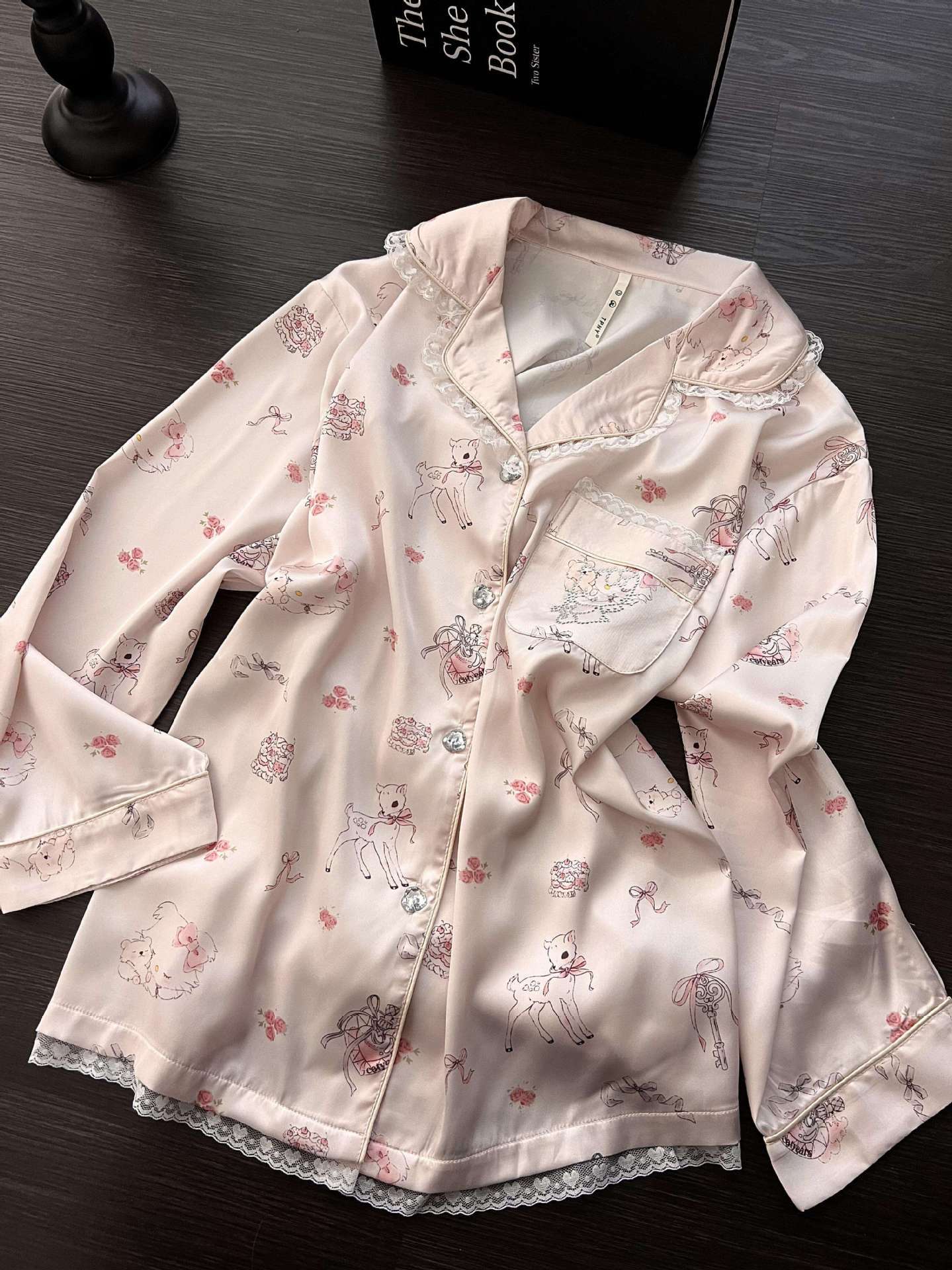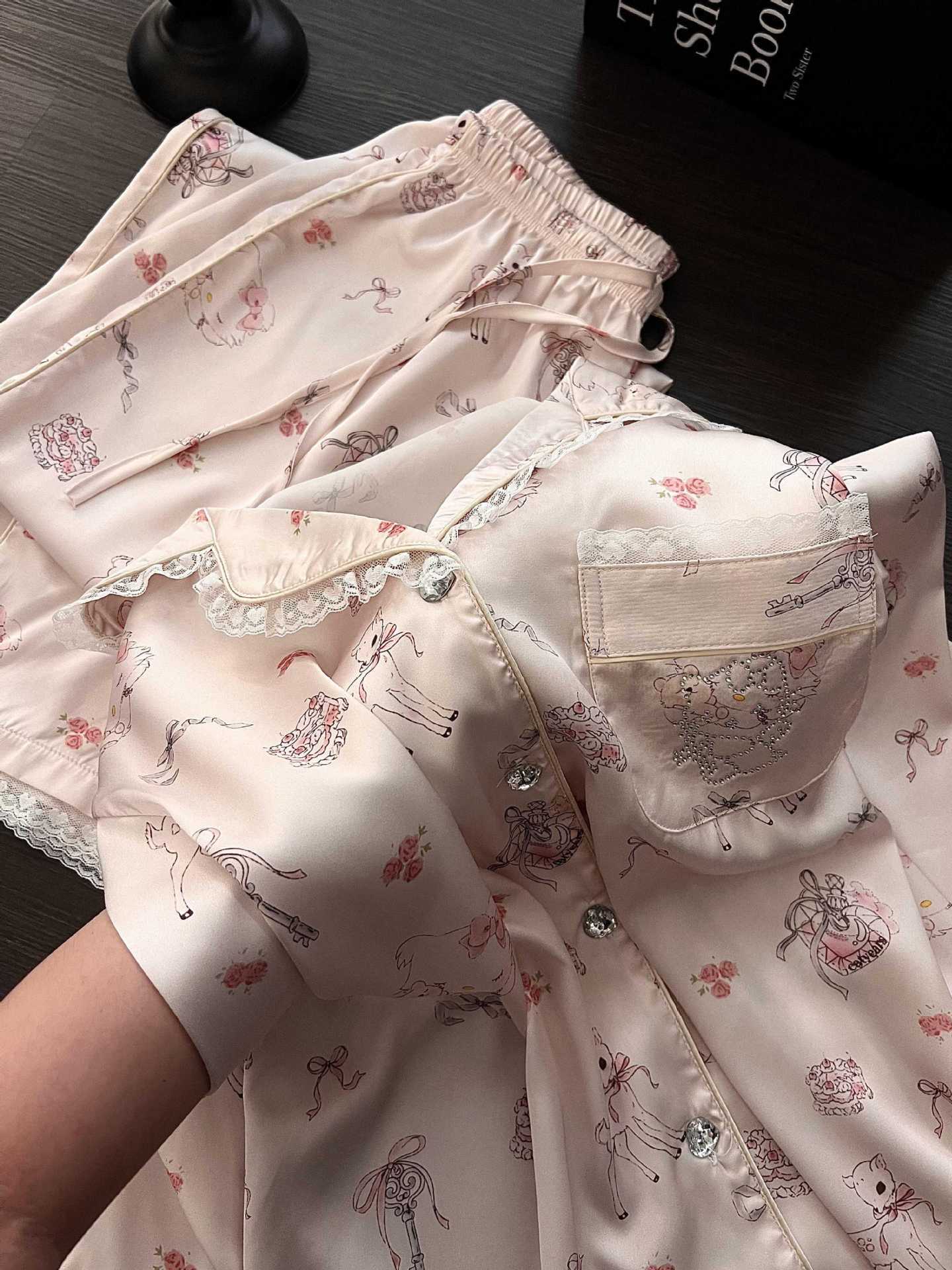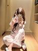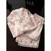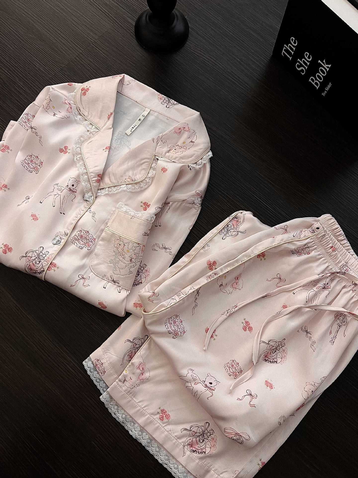 Pijama Rosa Femenino Lindo Estampado de Dibujos Animados para Mujer Verano Nuevo Estilo Talla Grande Seda de Hielo Manga Larga Pantalón Largo Conjunto de Ropa de Dormir