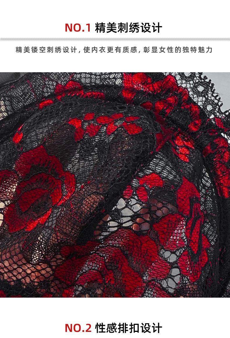 ¡Bebés, miren rápido! Este conjunto de lencería superventas transfronterizo europeo y americano, simplemente entiende el "código sexy"~ El diseño de malla transparente negra viene con un aire nebuloso puro y seductor, el bordado de encaje de rosas rojas es exquisitamente escandaloso, lleno de una sensación de lujo; la versión de escote profundo en V también puede realzar y levantar la forma del busto absolutamente hermosa, el material es ligero y transpirable, y es refrescante y no sofocante para usar en verano. Ya sea que quieras optar por un estilo dulce y seductor juvenil, o una sensación ardiente y seductora, puede sostenerlo firmemente, y la alta calidad también se adapta a figuras de talla grande, es definitivamente un artículo de moda en Amazon y en el comercio exterior transfronterizo, super asombroso para esconder pequeñas sorpresas en la vida diaria o crear ambiente para momentos especiales~
