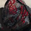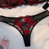Este conjunto de lencería, con su tul negro y encaje de rosas rojas, es súper atmosférico. El tul negro es brumoso y translúcido, haciendo que la piel aparezca débilmente visible; el bordado de encaje de rosas rojas es delicado y tridimensional, mezclando romance y seducción, no monótono.