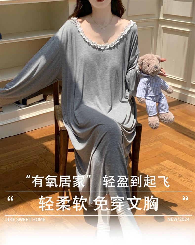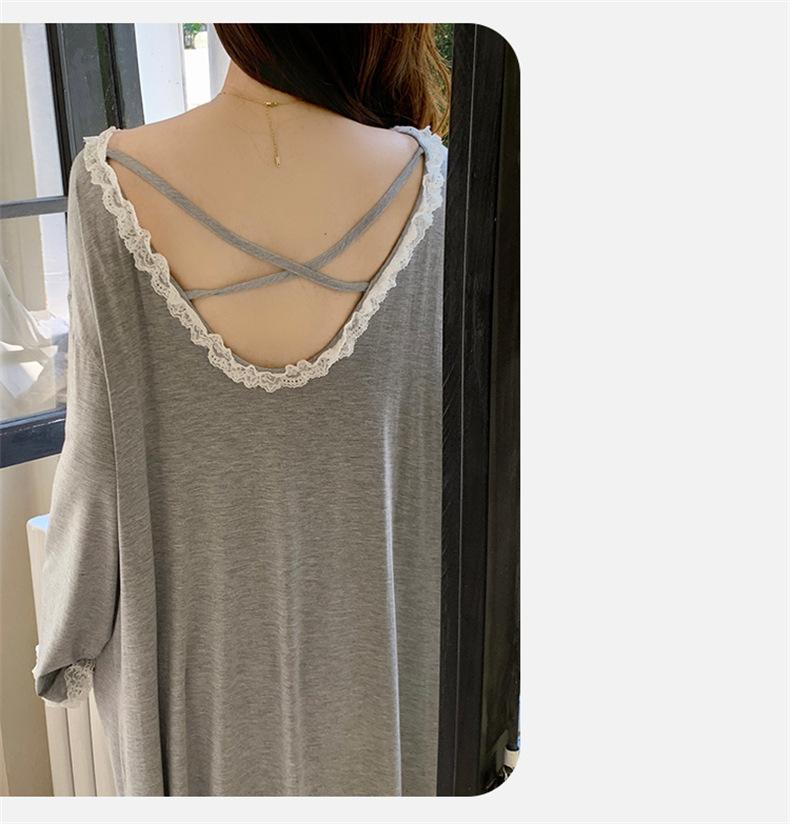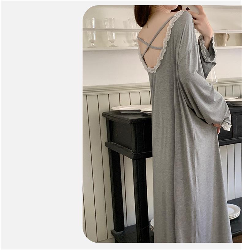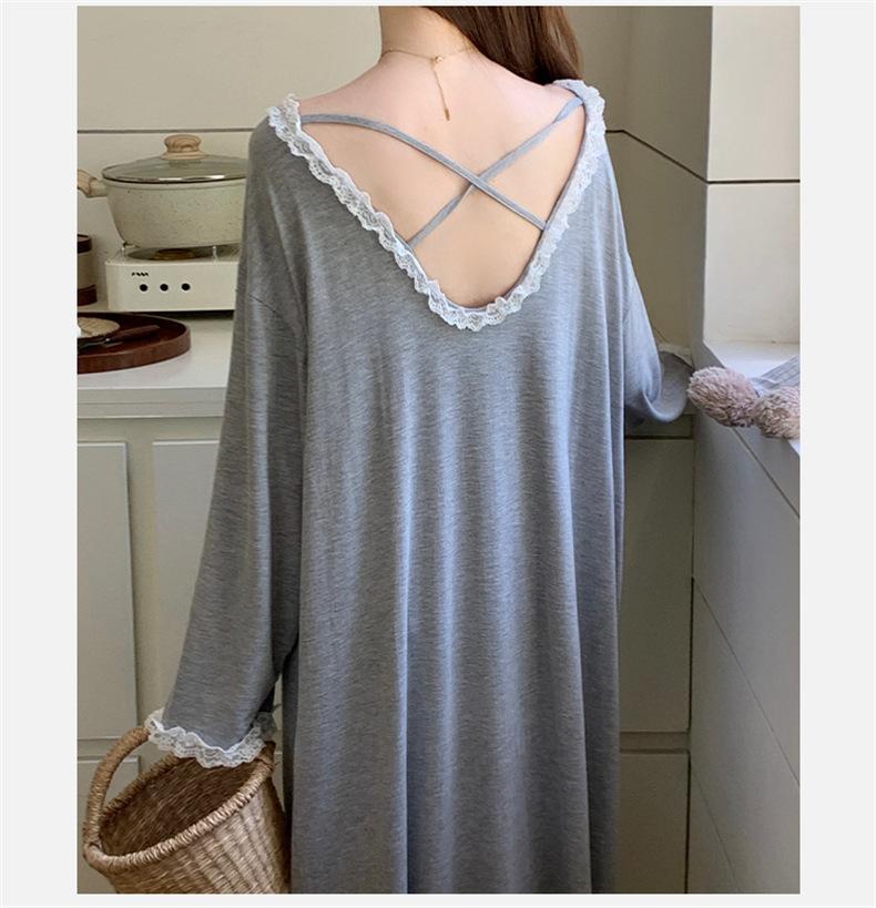 Nuevo Camisón Modal para Mujer con Almohadilla en el Pecho Sexy Sin Espalda Se Puede Usar Afuera Pijama Vestido Midi Talla Grande Ropa para el Hogar