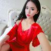 Pijama de Seda para Mujer Verano Manga Corta Seda de Hielo Conjunto de Dos Piezas Camisón con Tirantes Camisón Camisón Pijama Sexy Ropa para el Hogar Traje para Mujer