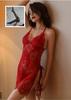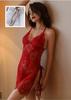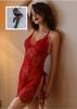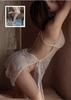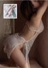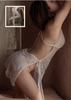 Pijama Sexy de Malla para Mujer Verano Gasa Fina Transparente Lencería Erótica Camisola Camisón Transparente Encaje Abertura Set Tentación