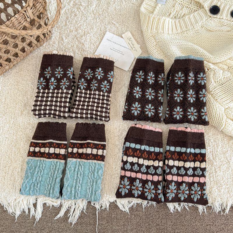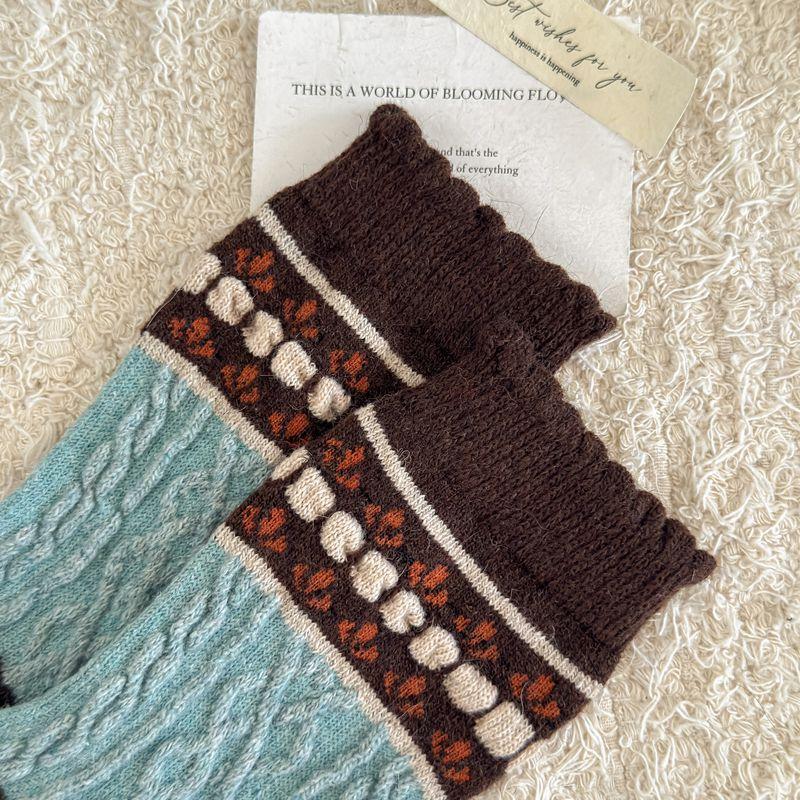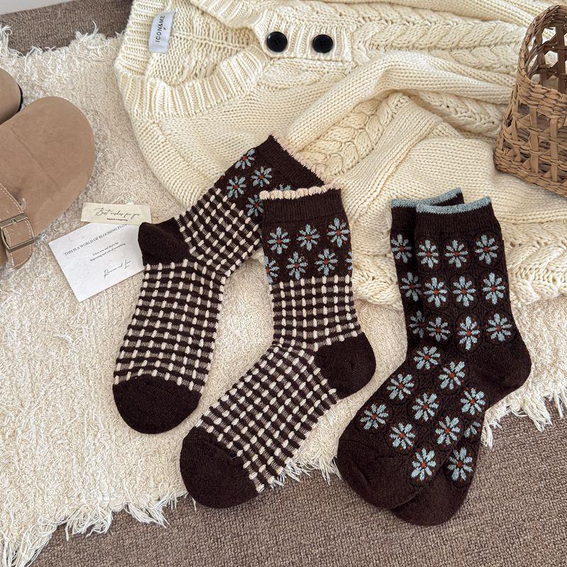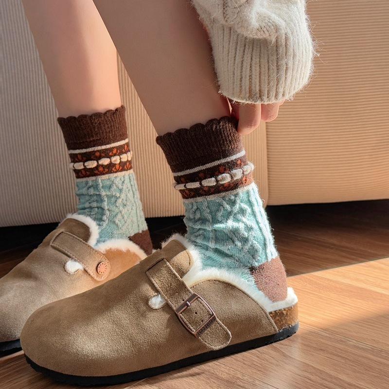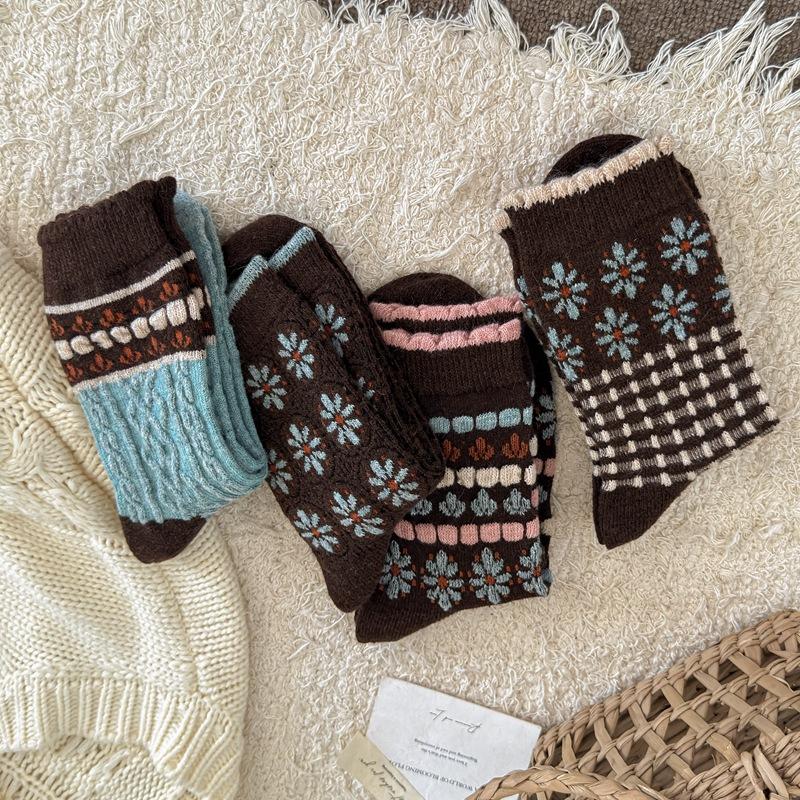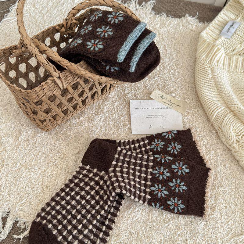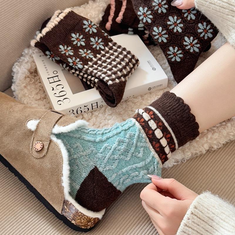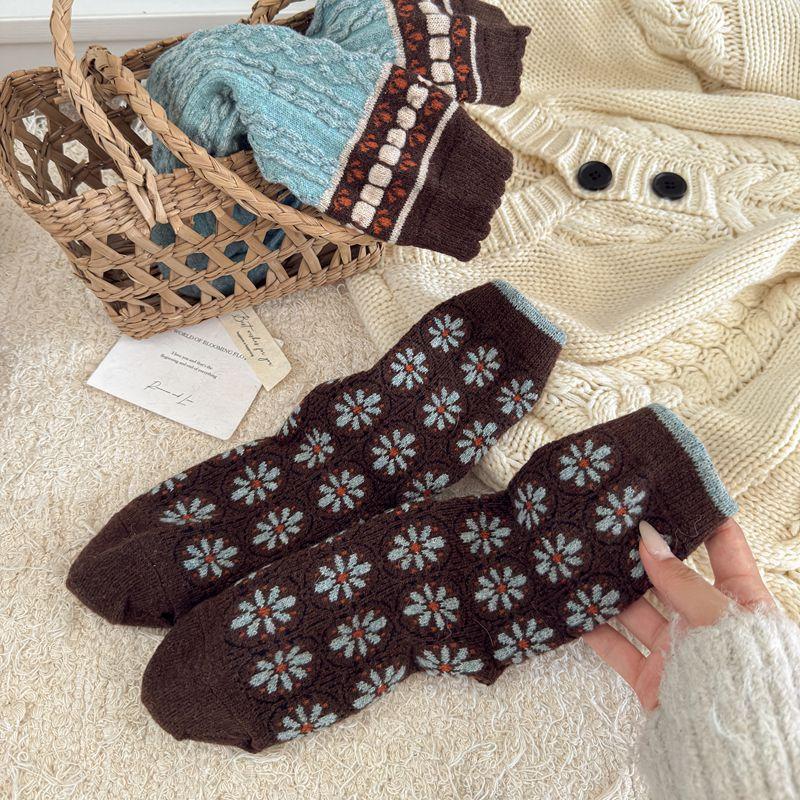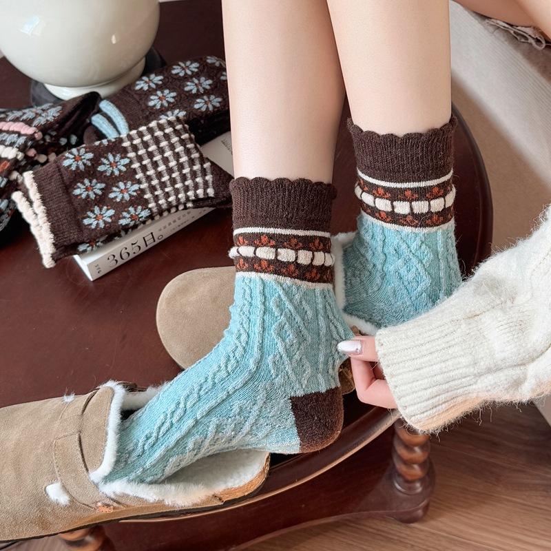 Calcetines cálidos de felpa otoño e invierno retro flor pequeña nuevos calcetines de rizo calcetines de encaje hasta media pantorrilla para mujer colegial japonés ins calcetines cálidos