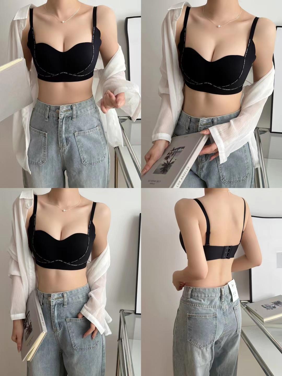 Nueva letra Soporte suave Ropa interior sin marcas Verano Mujer Grueso Cómodo Sin aros Pecho Anti-flacidez Sujetador