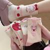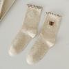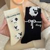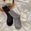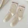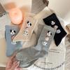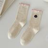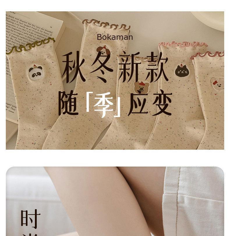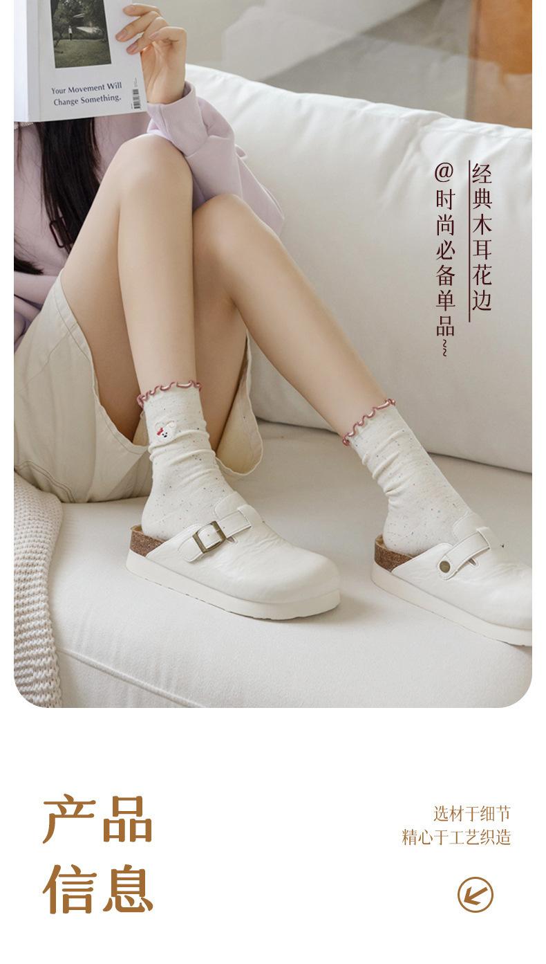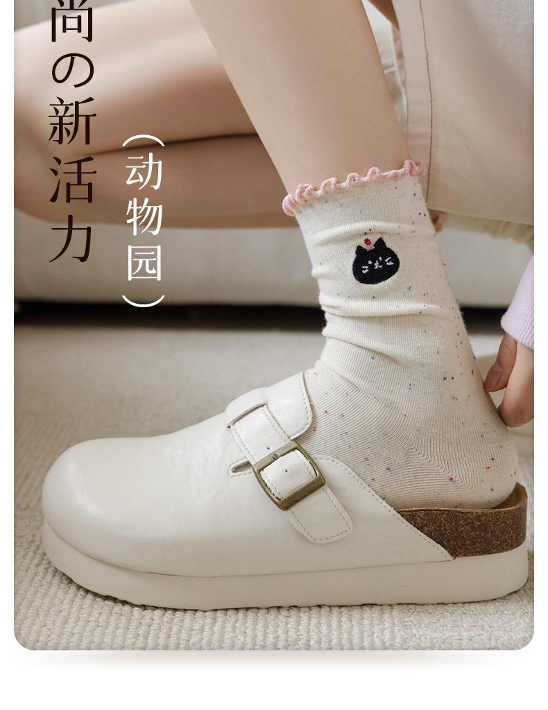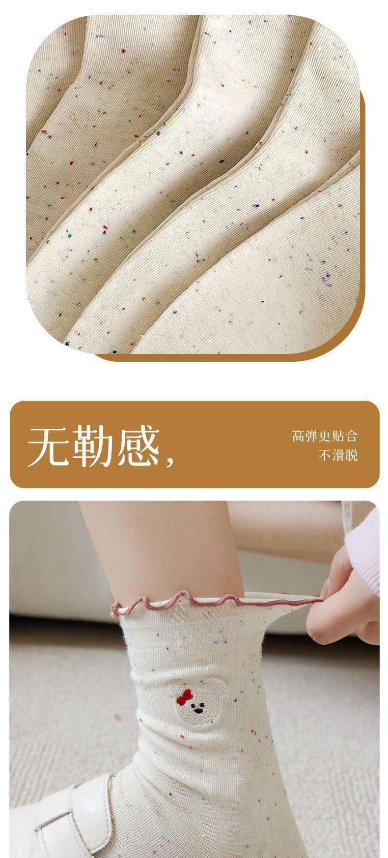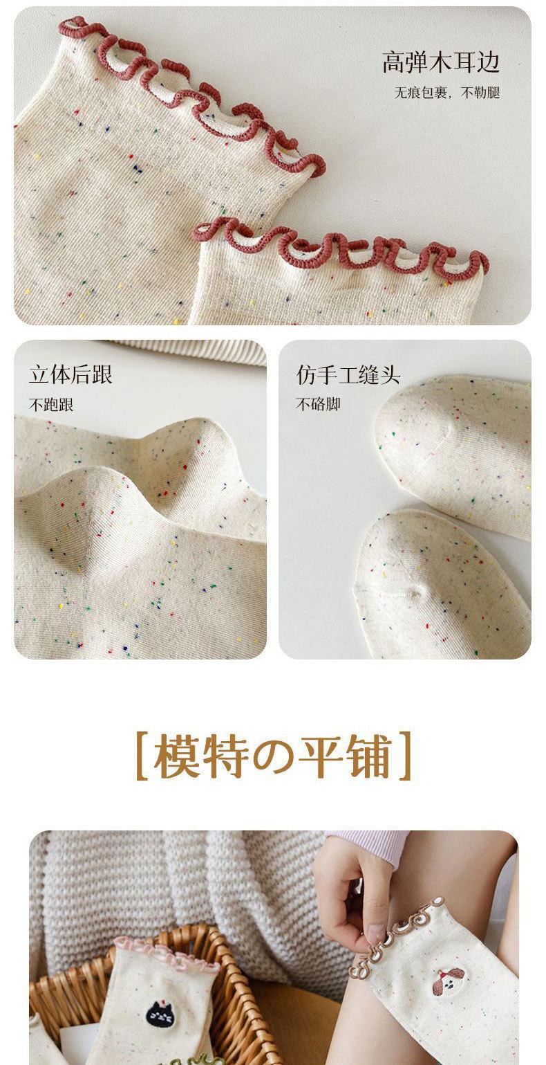 Calcetines de Mujer Algodón Puro Calcetines Arrugados Otoño e Invierno Hilo Jaspeado Japonés Lindo Bordado Dibujos Animados Borde con Volantes Todo Algodón Calcetines Media Caña
