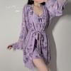 Lencería de Lujo y Dulce con Estampado de Mariposas y Atractivo Sexy, Conjunto de Camisón y Bata sin Espalda Acolchado para Mujeres 5727