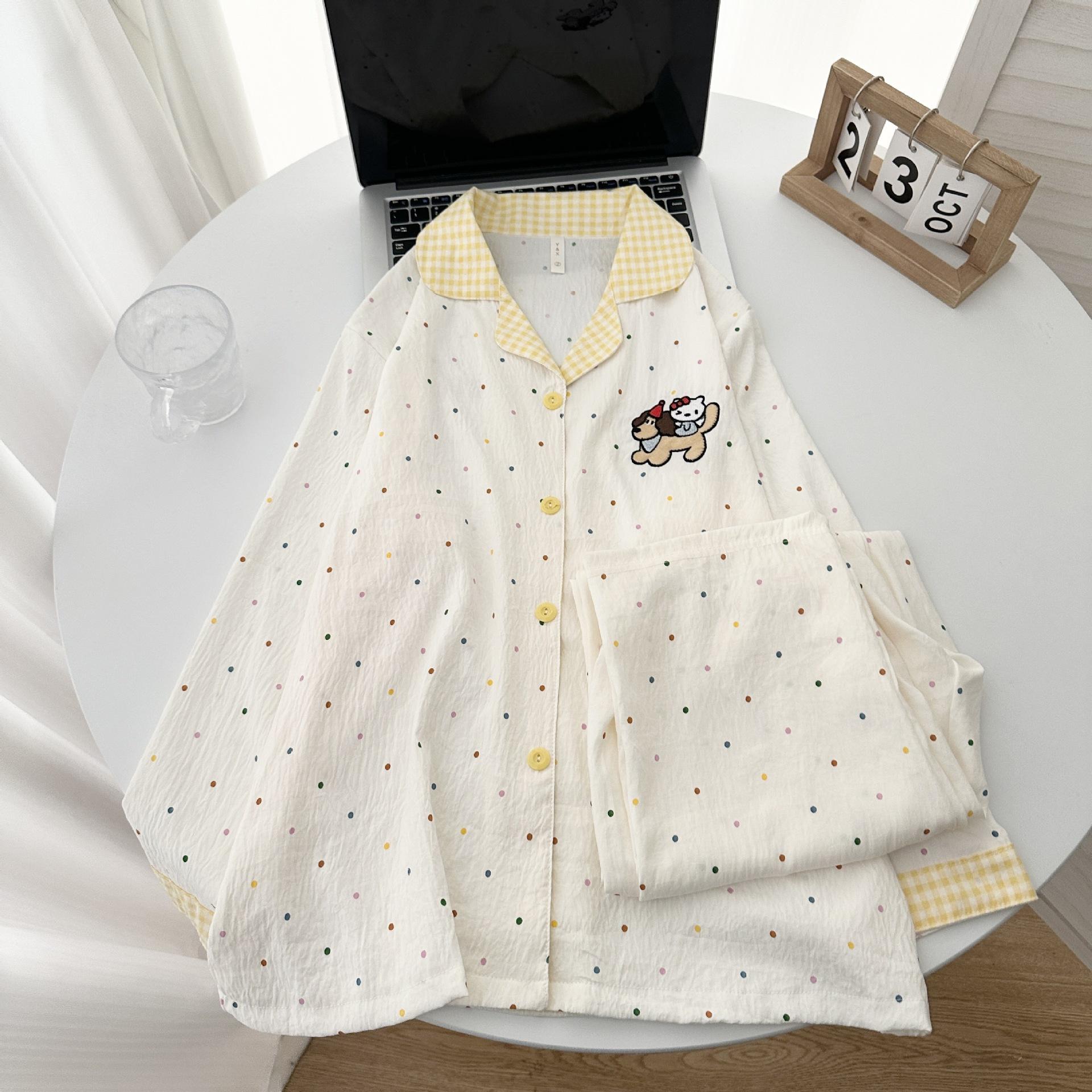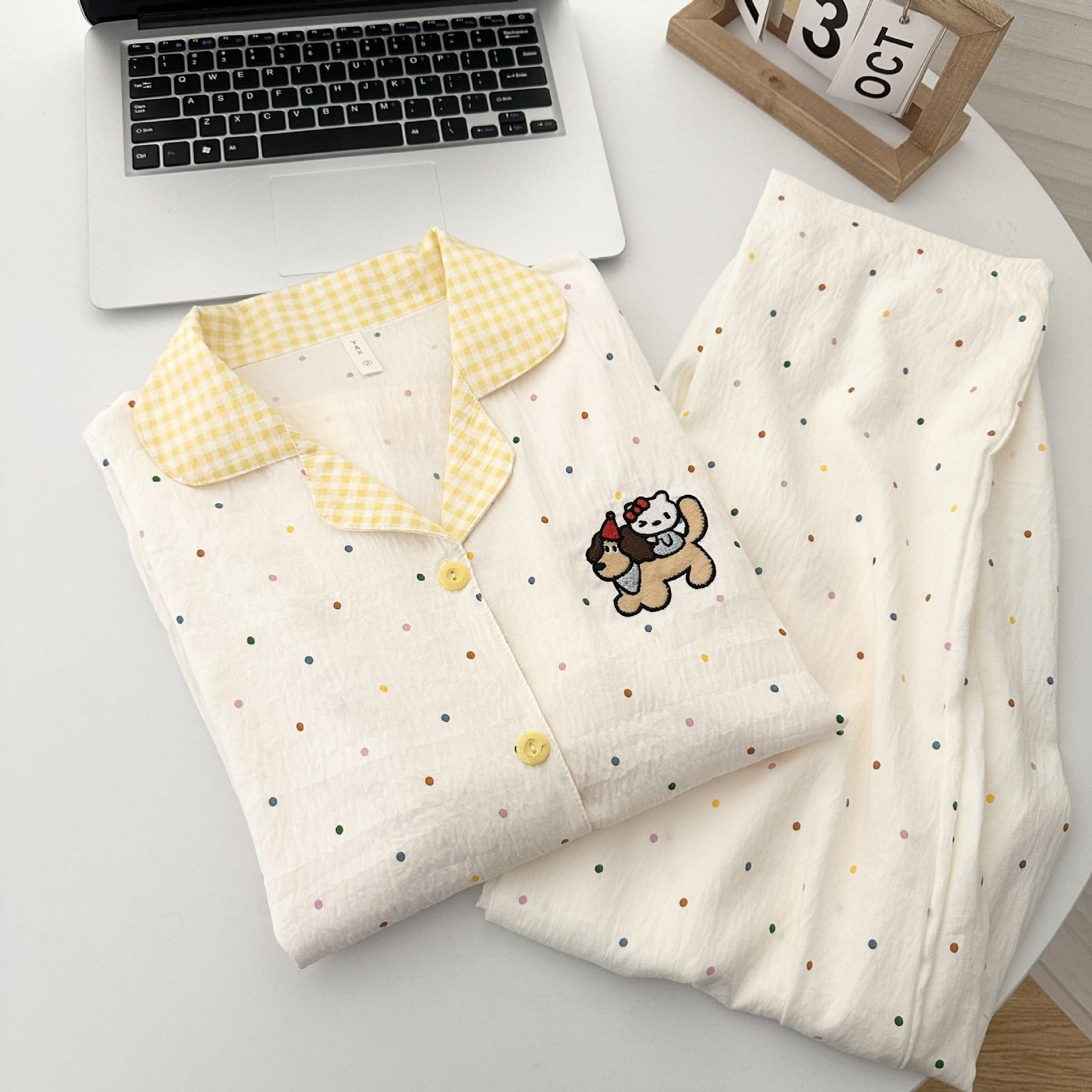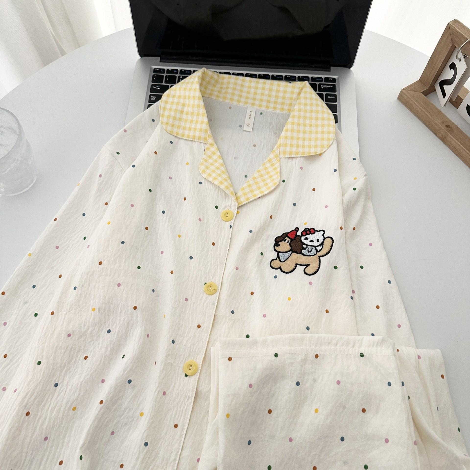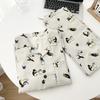 Pijama de Mujer Primavera Otoño Verano Algodón Nube Manga Larga Pantalón Largo Cárdigan Lindo Dibujo Animado Niña Puede Usar Fuera Ropa para el Hogar Set