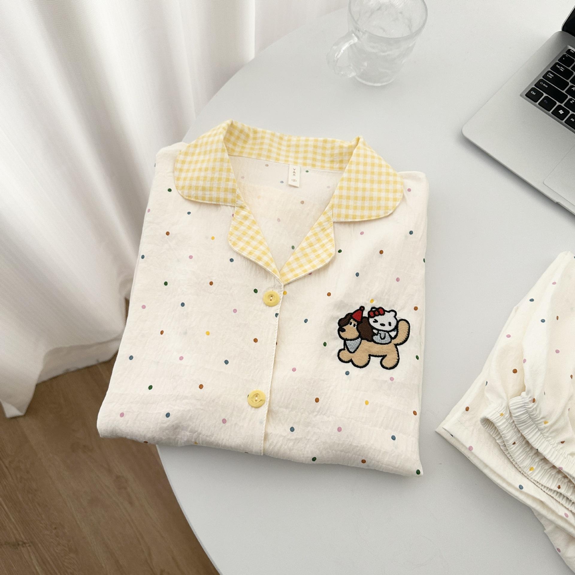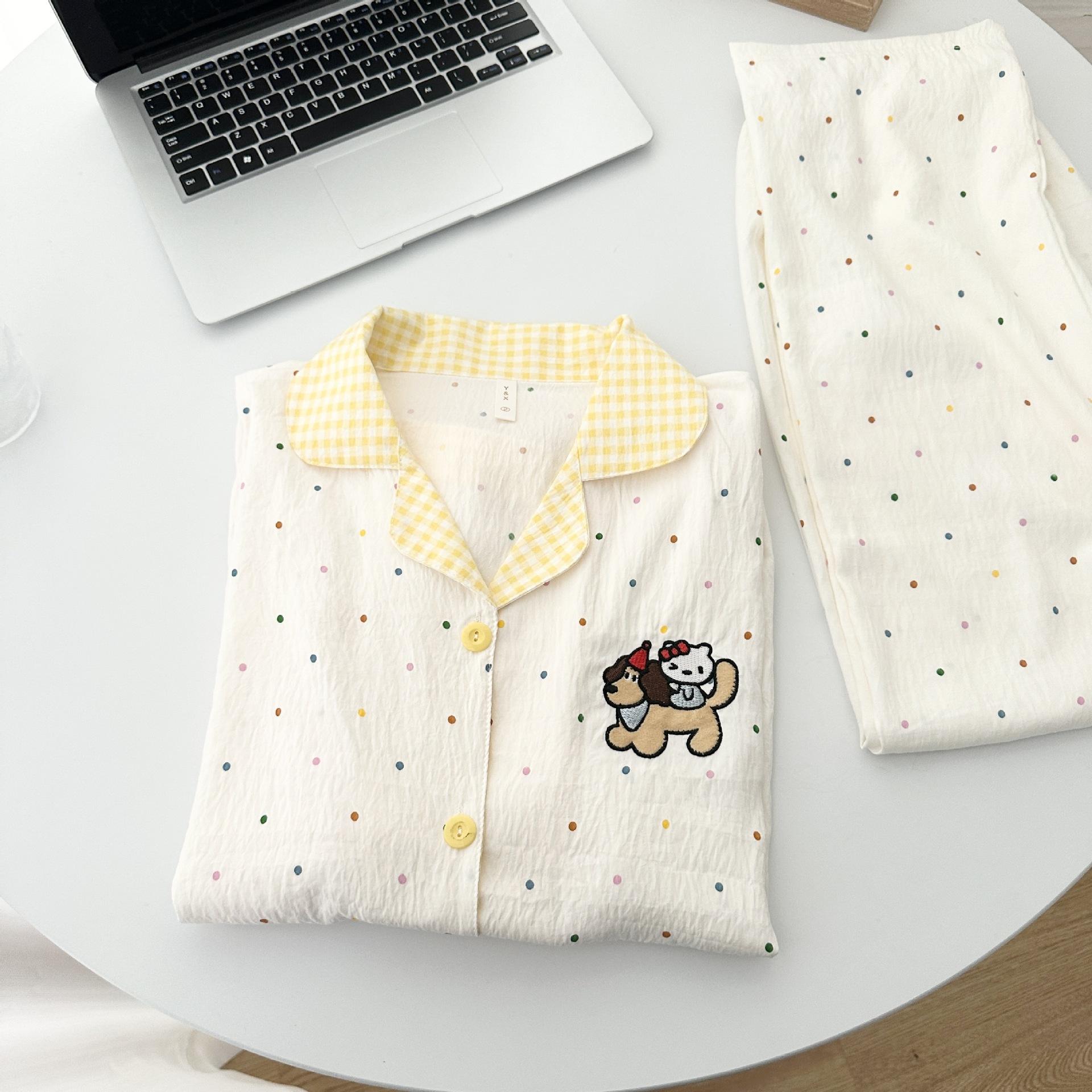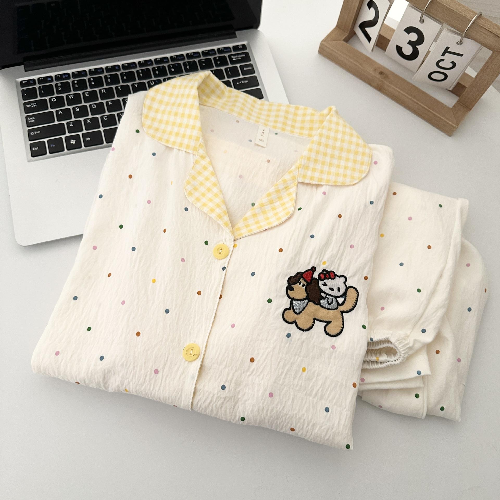 Pijama de Mujer Primavera Otoño Verano Algodón Nube Manga Larga Pantalón Largo Cárdigan Lindo Dibujo Animado Niña Puede Usar Fuera Ropa para el Hogar Set